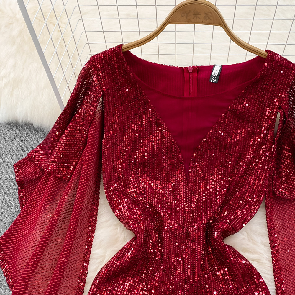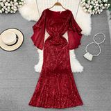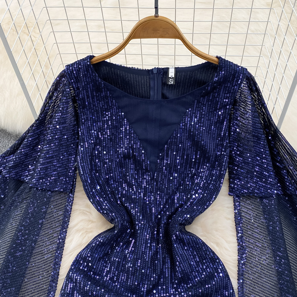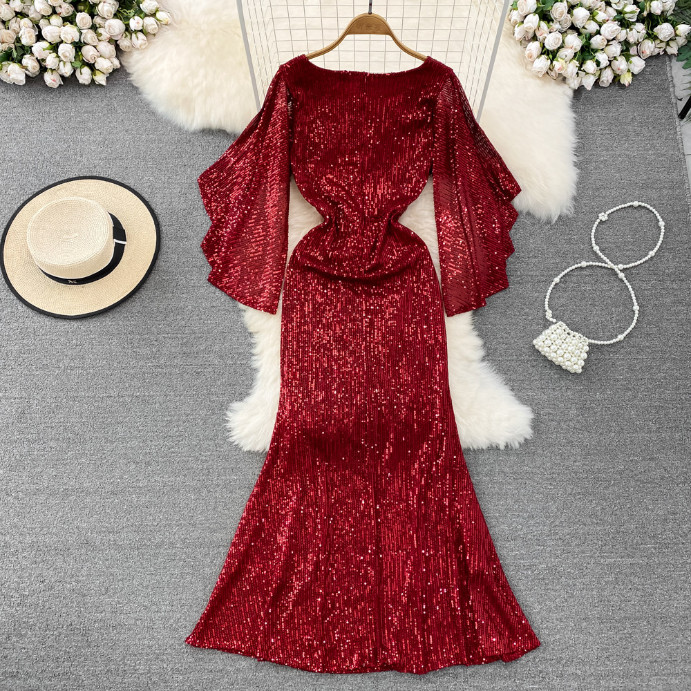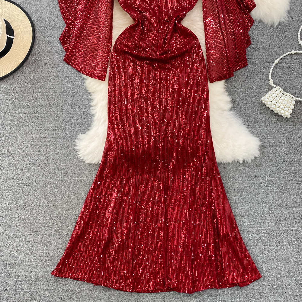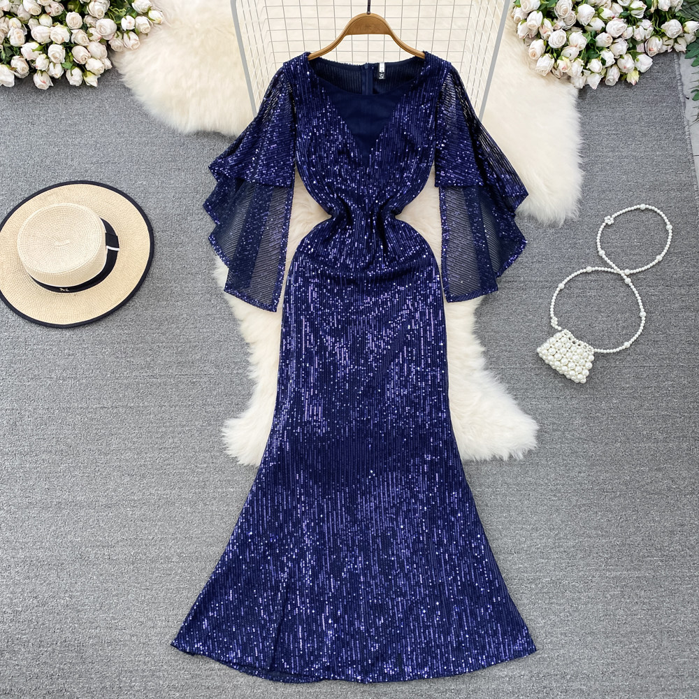 Элитное вечернее платье, длинная юбка, блестящие блестки для ногтей, приталенный корсет, А-силуэт, крой «рыбий хвост»