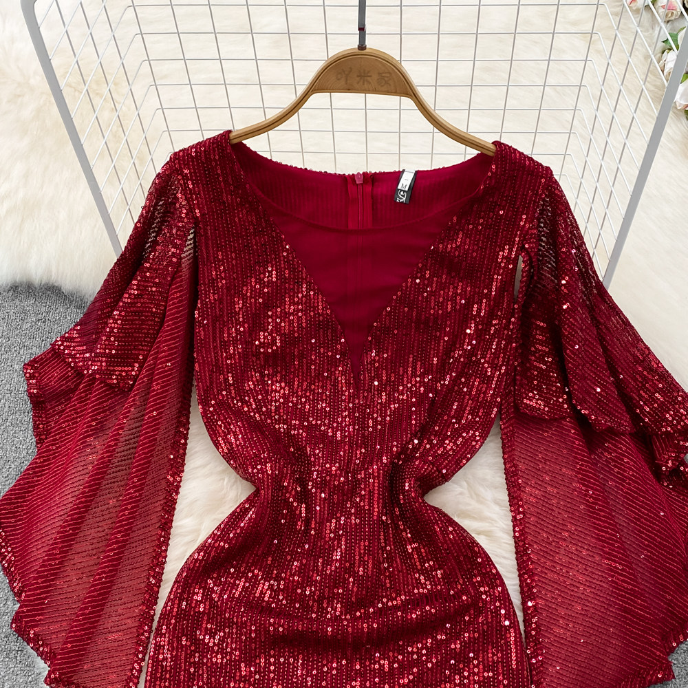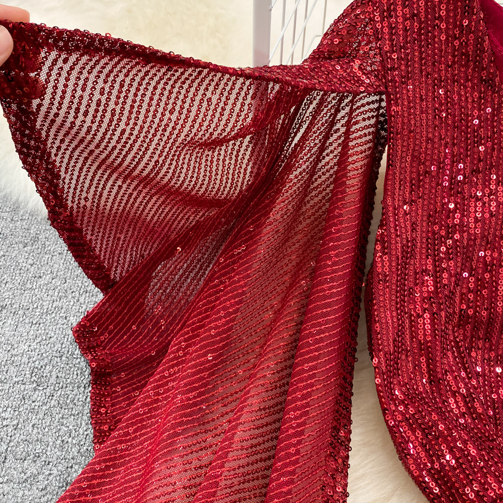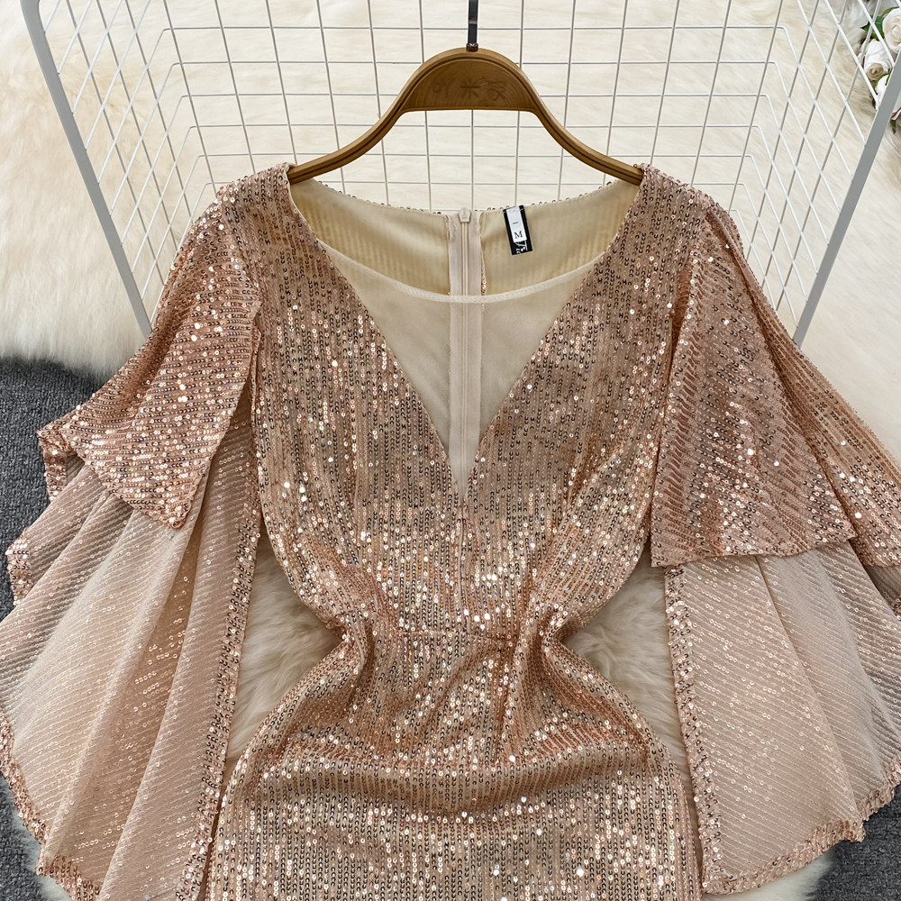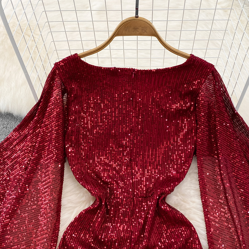 Элитное вечернее платье, длинная юбка, блестящие блестки для ногтей, приталенный корсет, А-силуэт, крой «рыбий хвост»