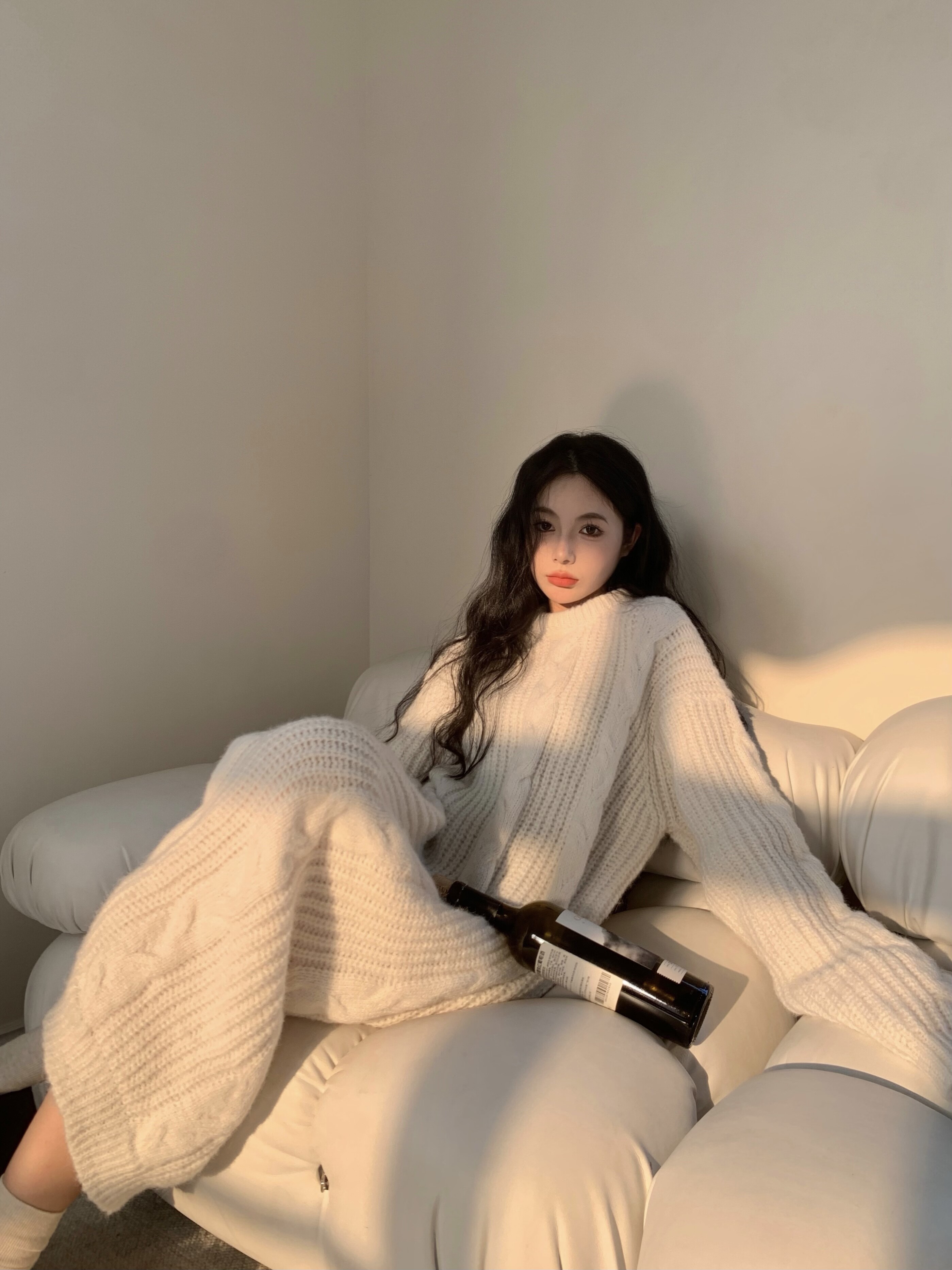 Белый свитер, демисезонная длинная юбка, длинное платье, в западном стиле, свободный крой