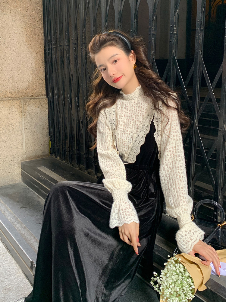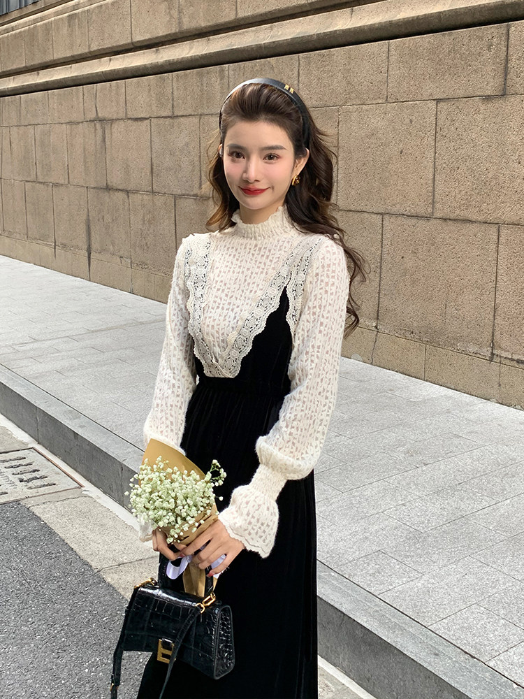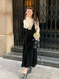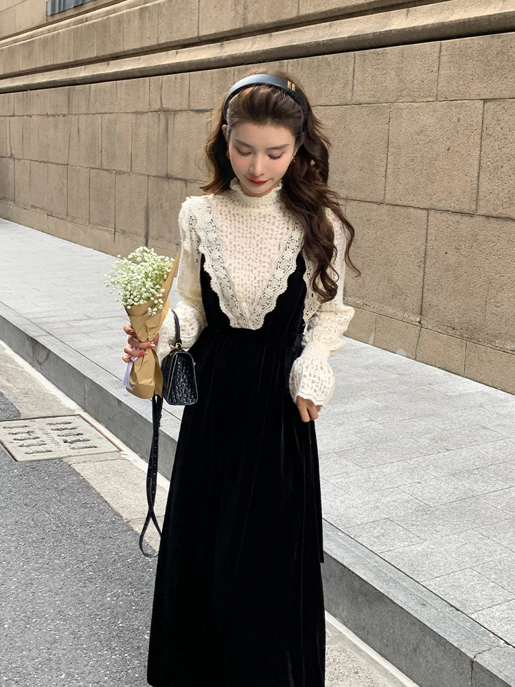 Зимнее ретро черное базовое платье, бархатная юбка, французский ретро стиль