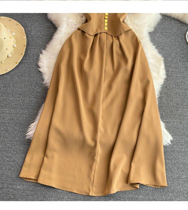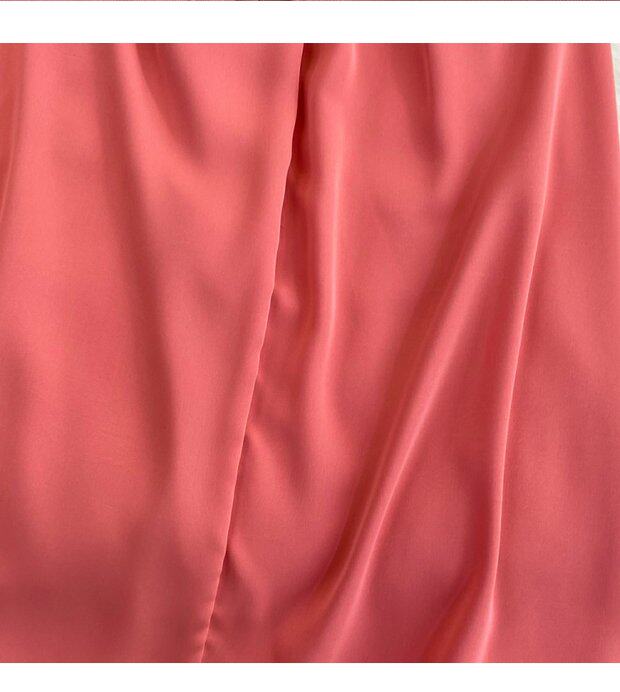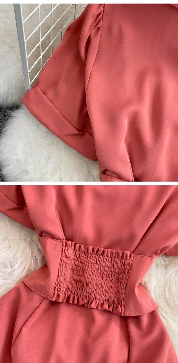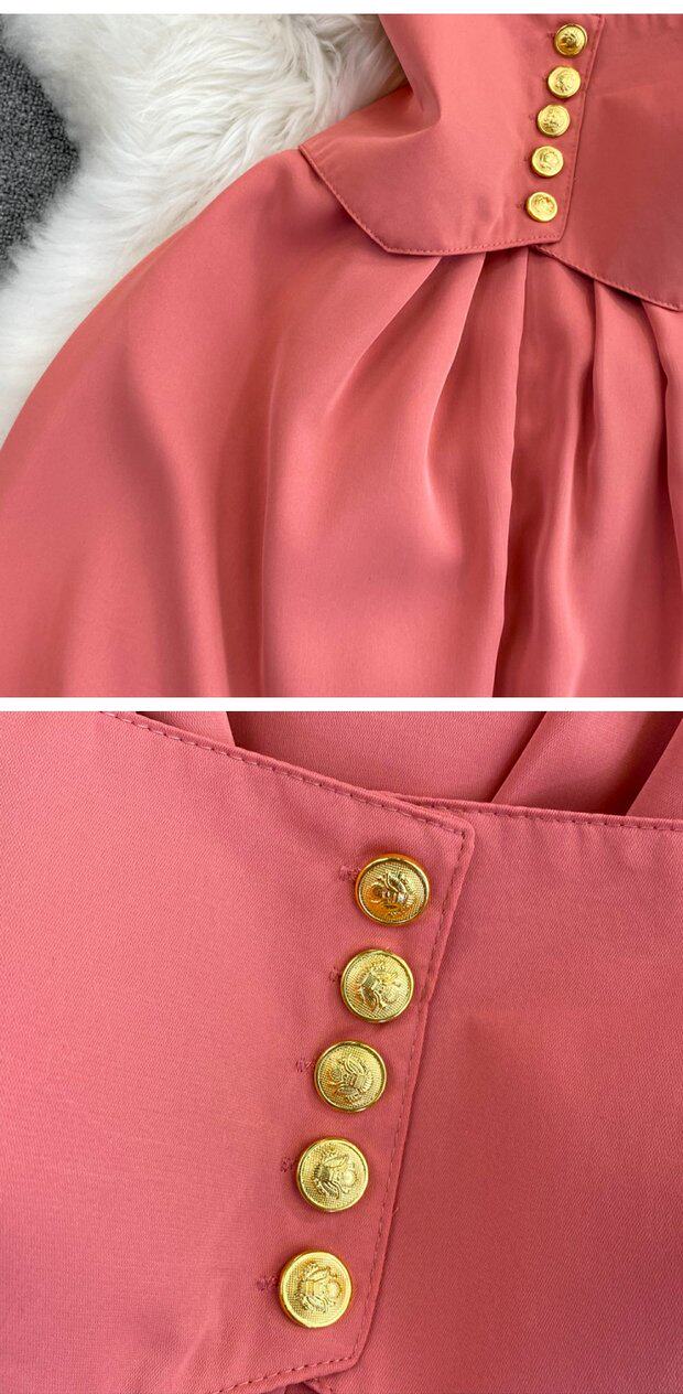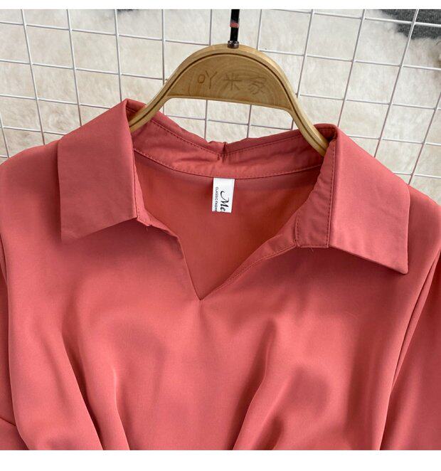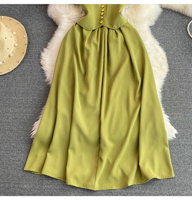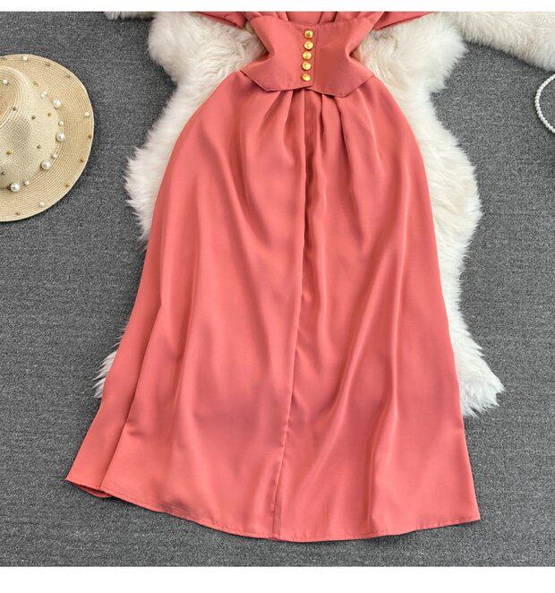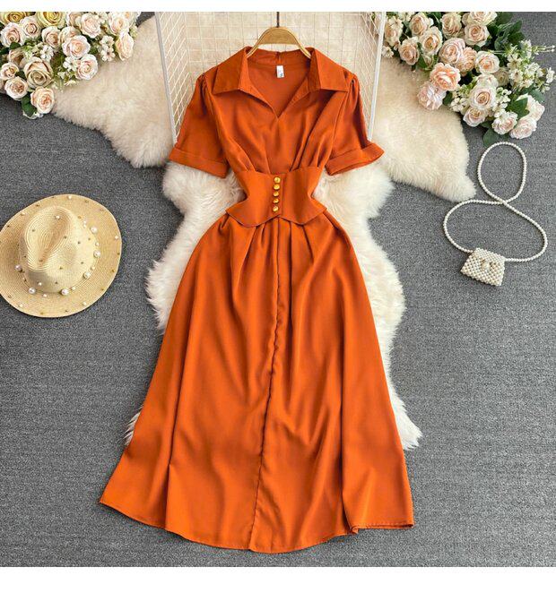 Рубашка, летняя модная юбка, приталенный корсет, платье, французский стиль, изысканный стиль, яркий броский стиль, воротник поло, короткий рукав, А-силуэт