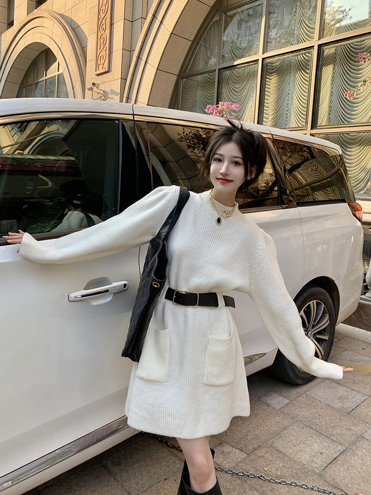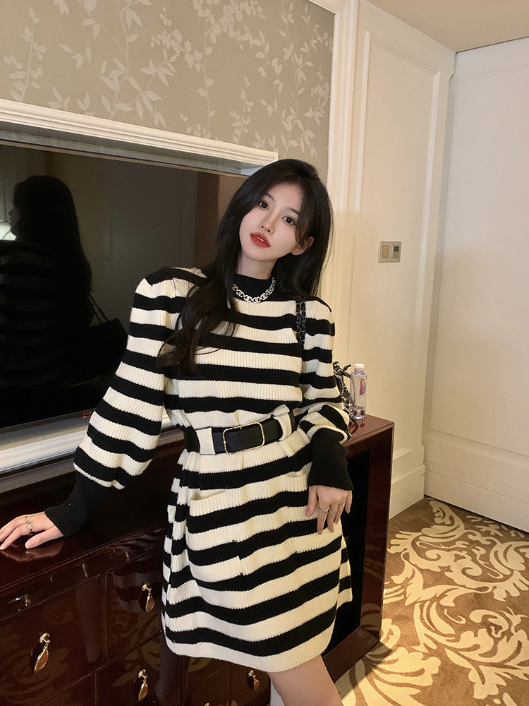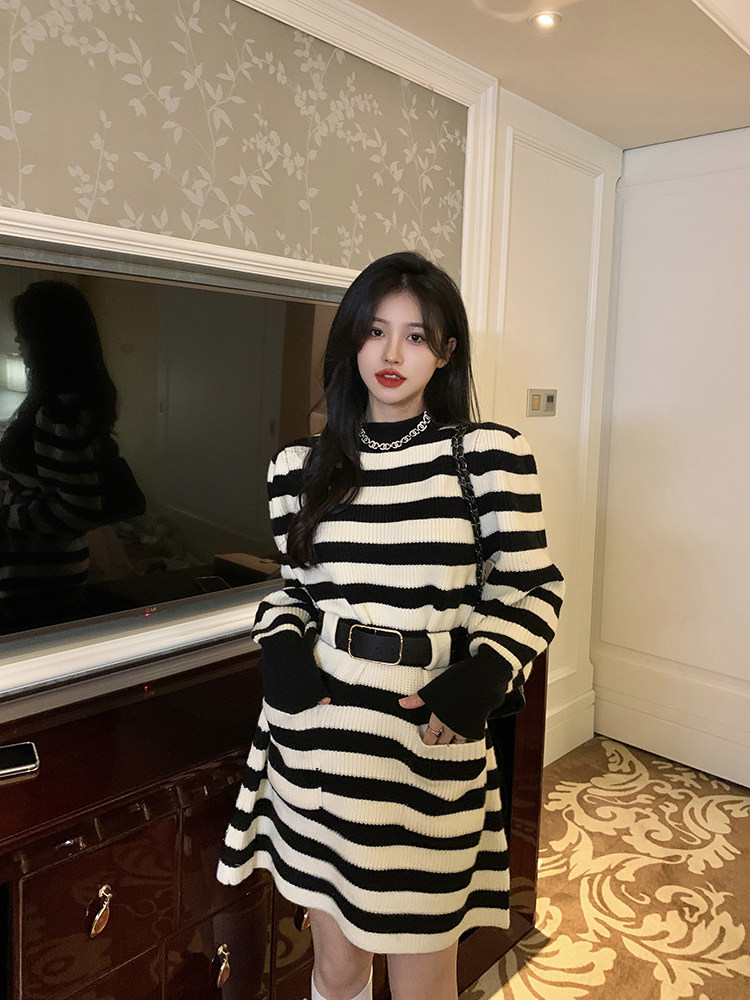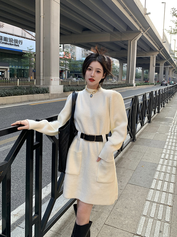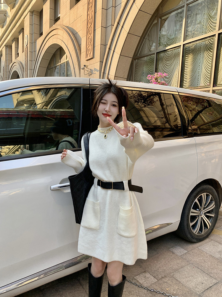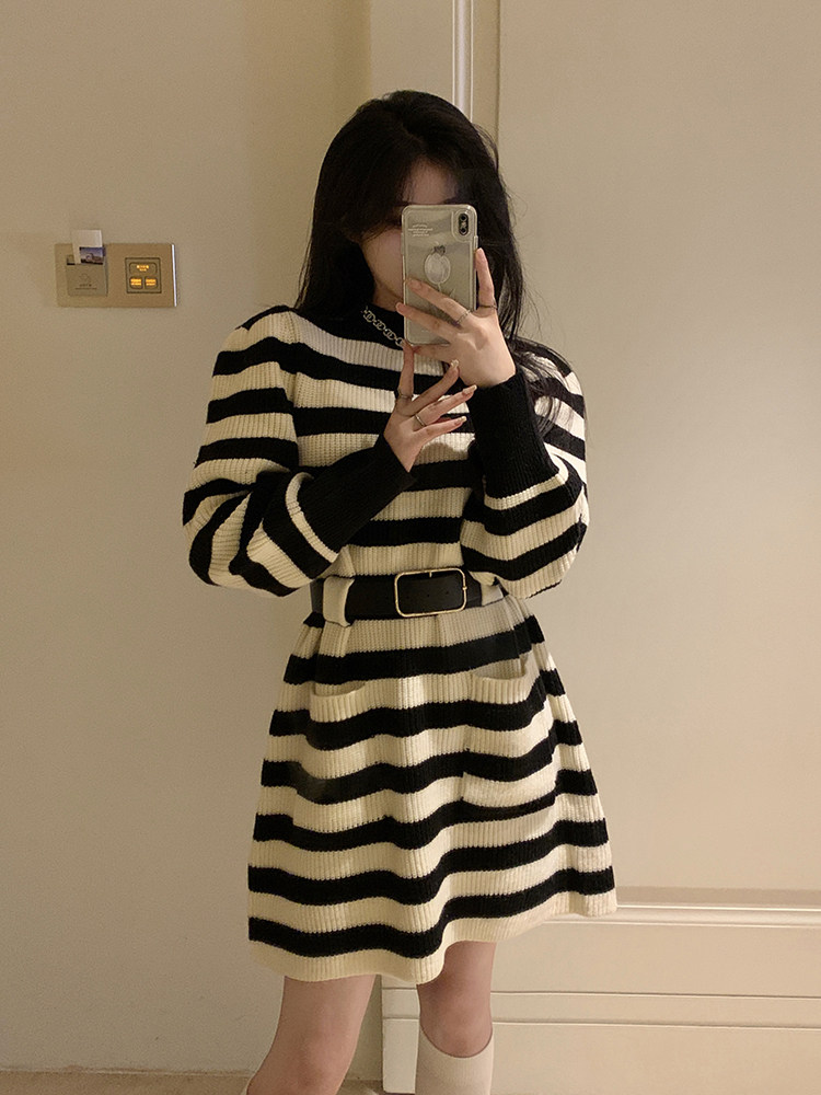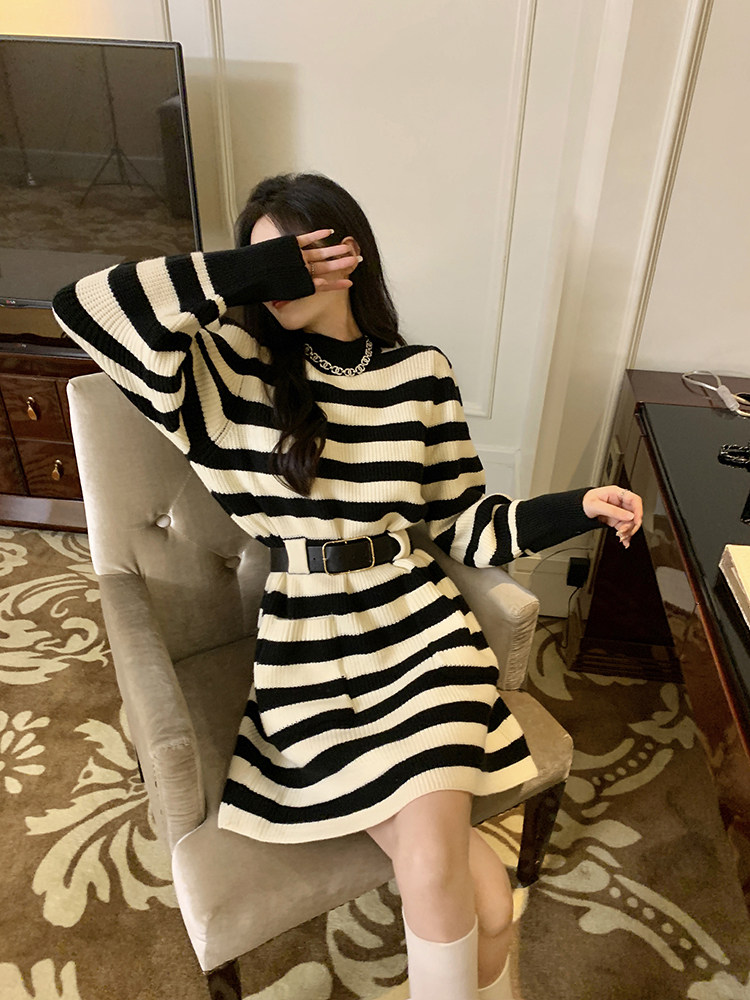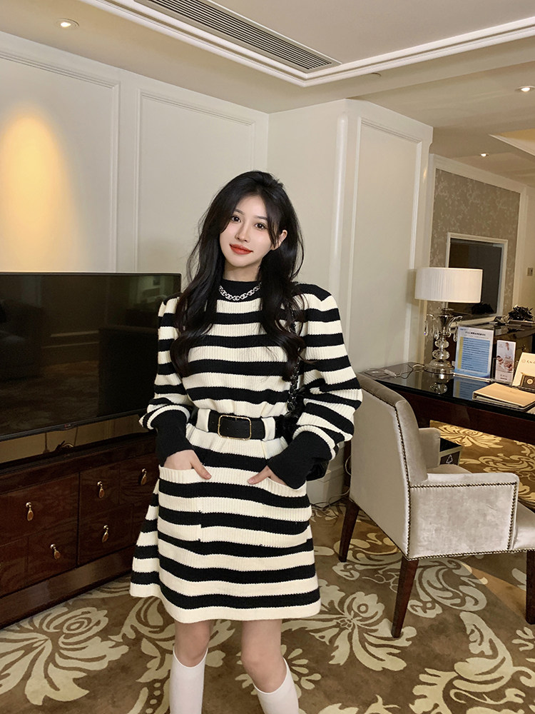 Демисезонное платье, ремень, трикотажная юбка, французский стиль, изысканный стиль