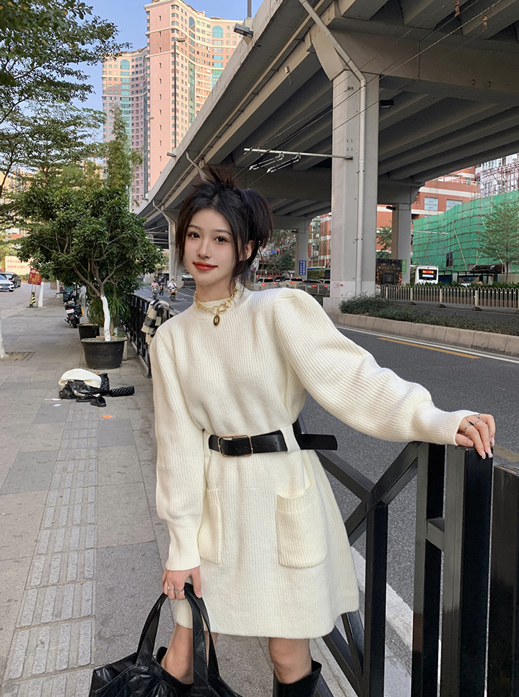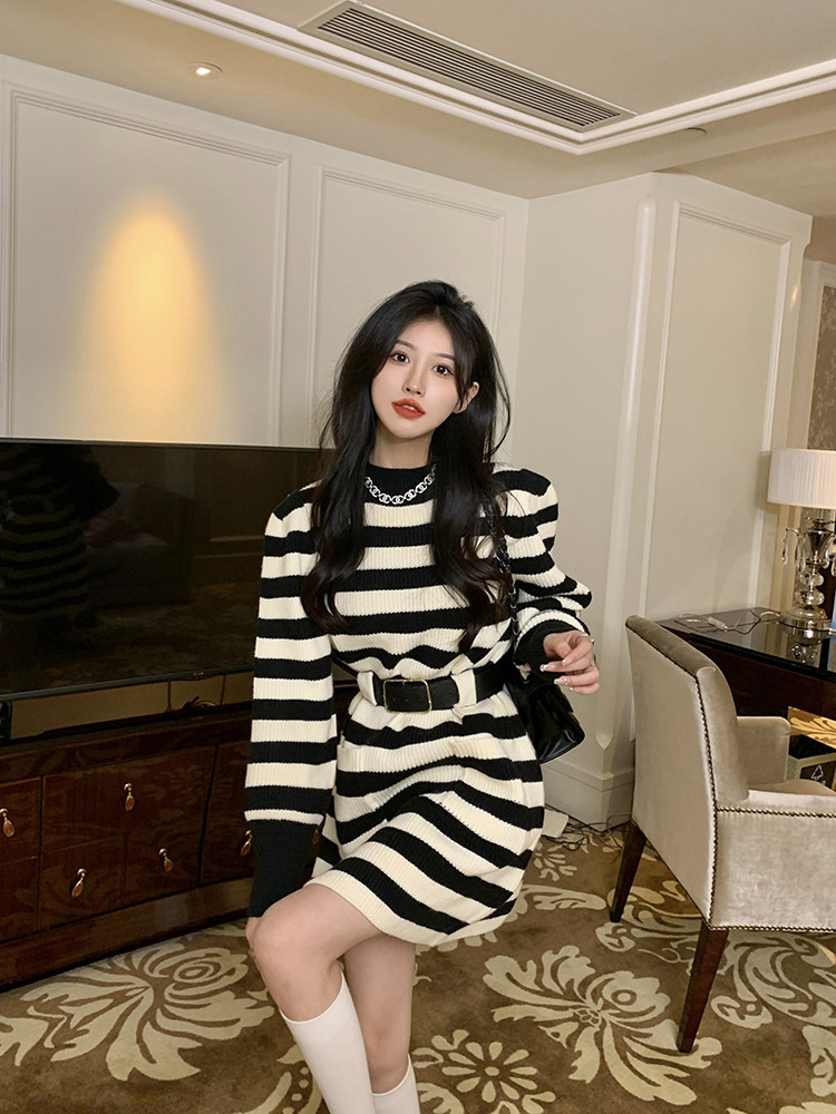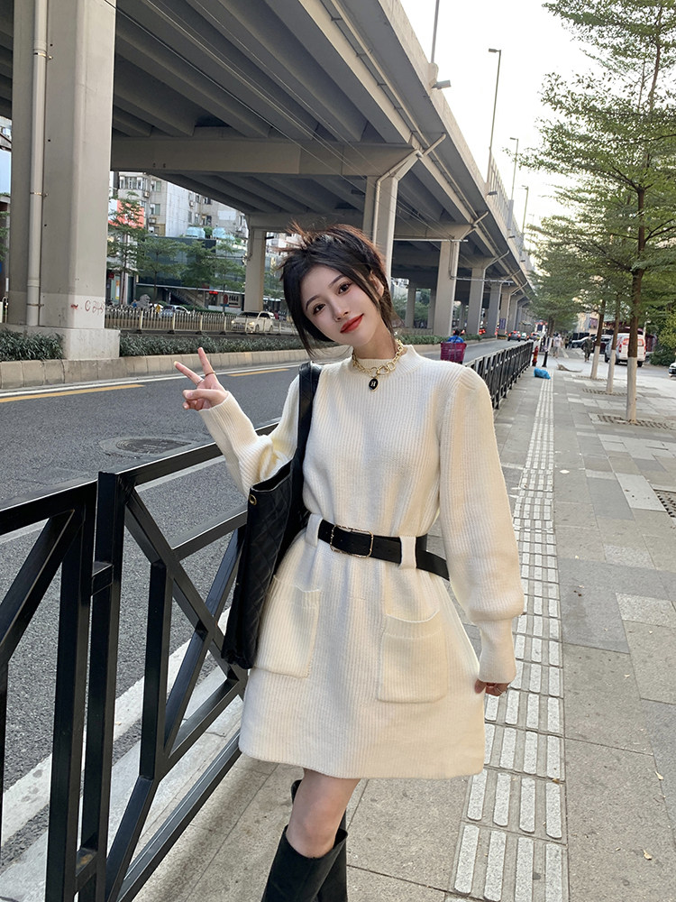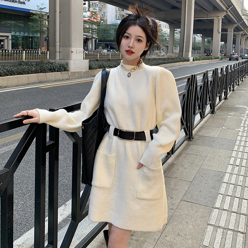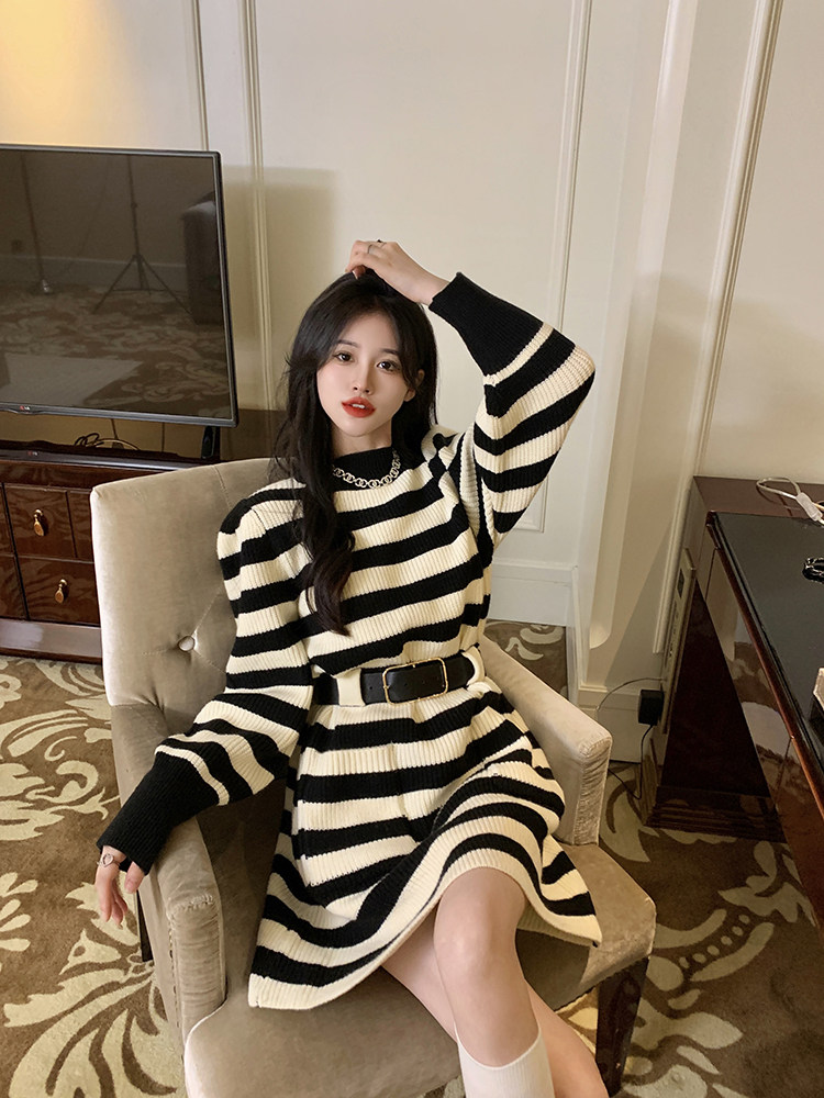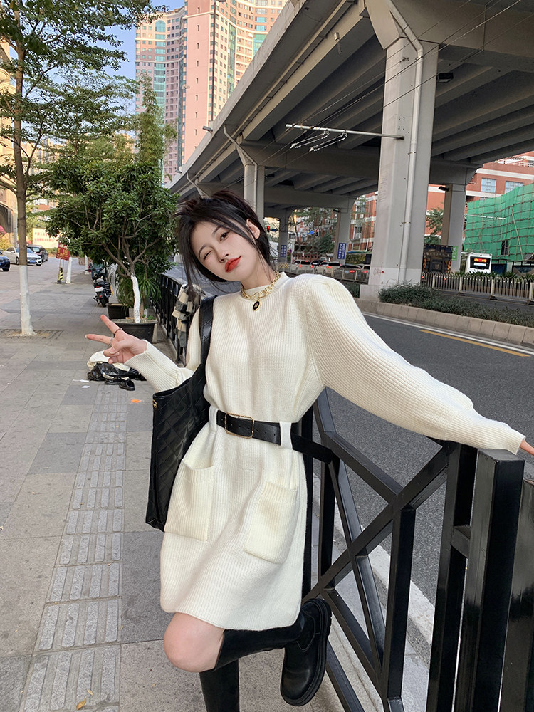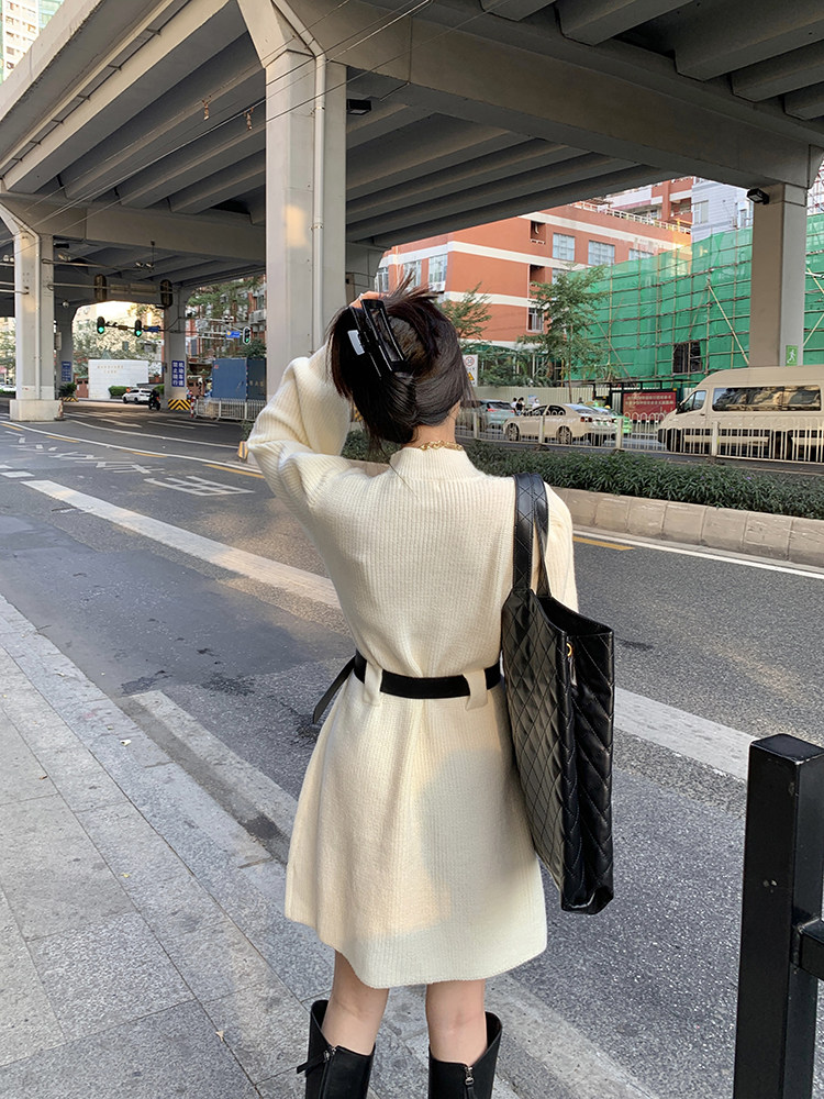 Демисезонное платье, ремень, трикотажная юбка, французский стиль, изысканный стиль