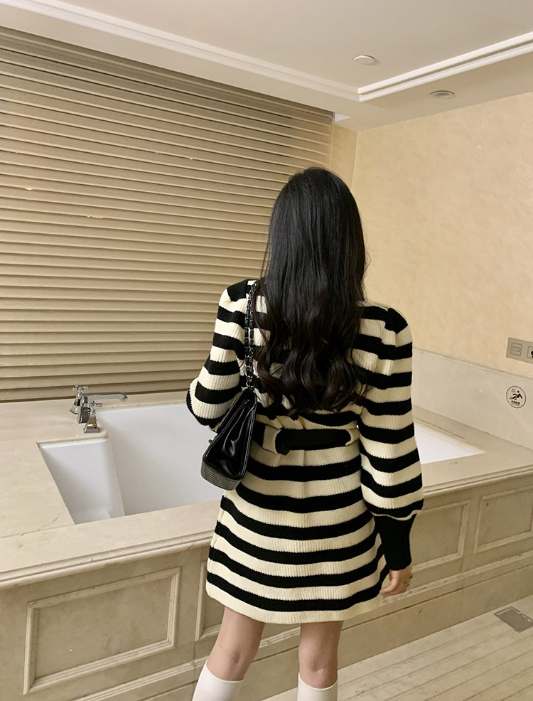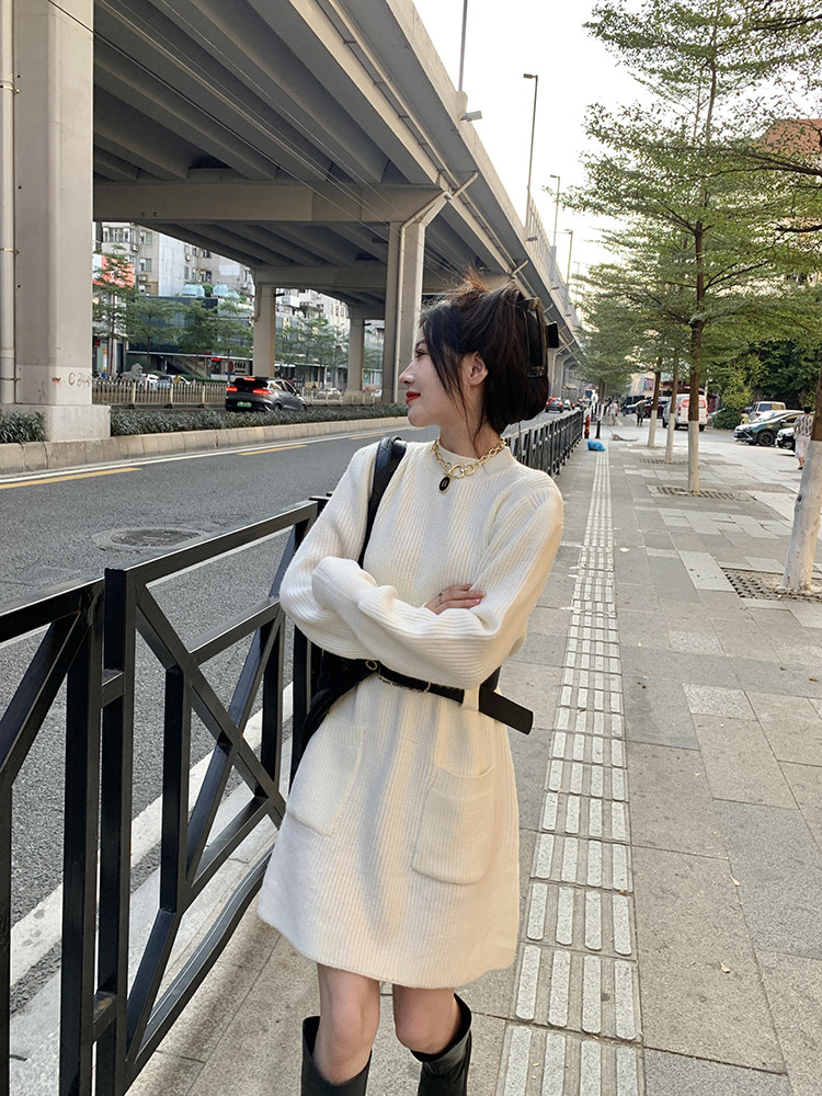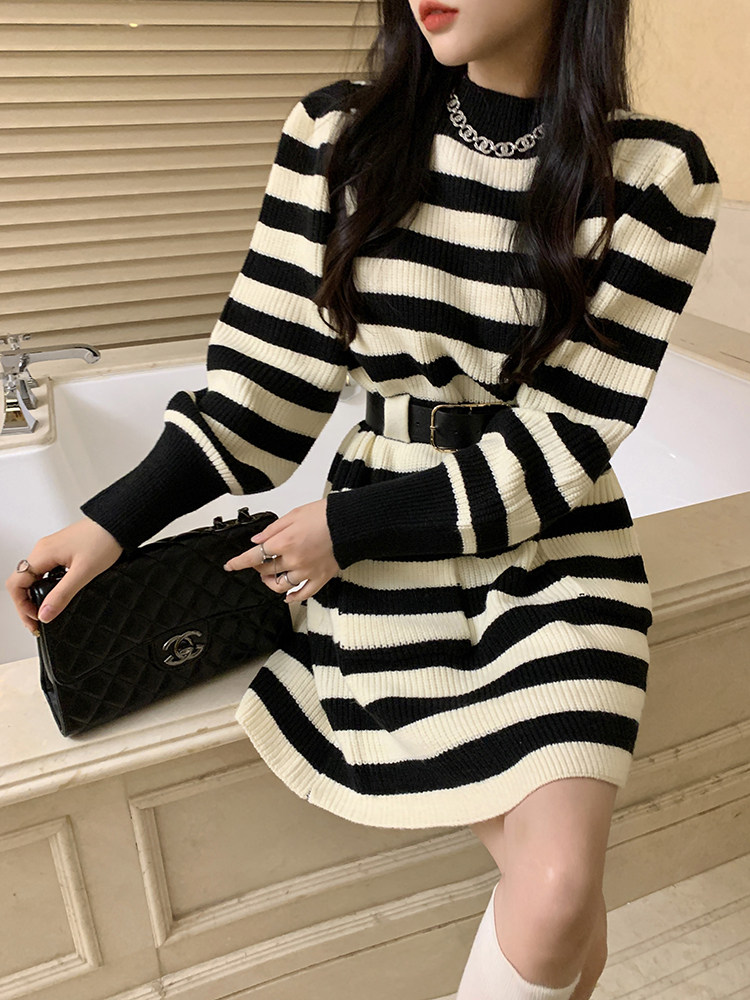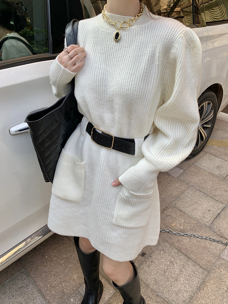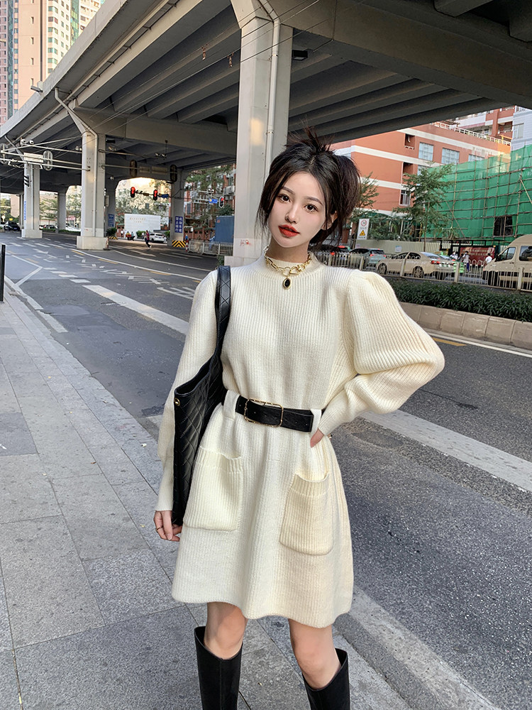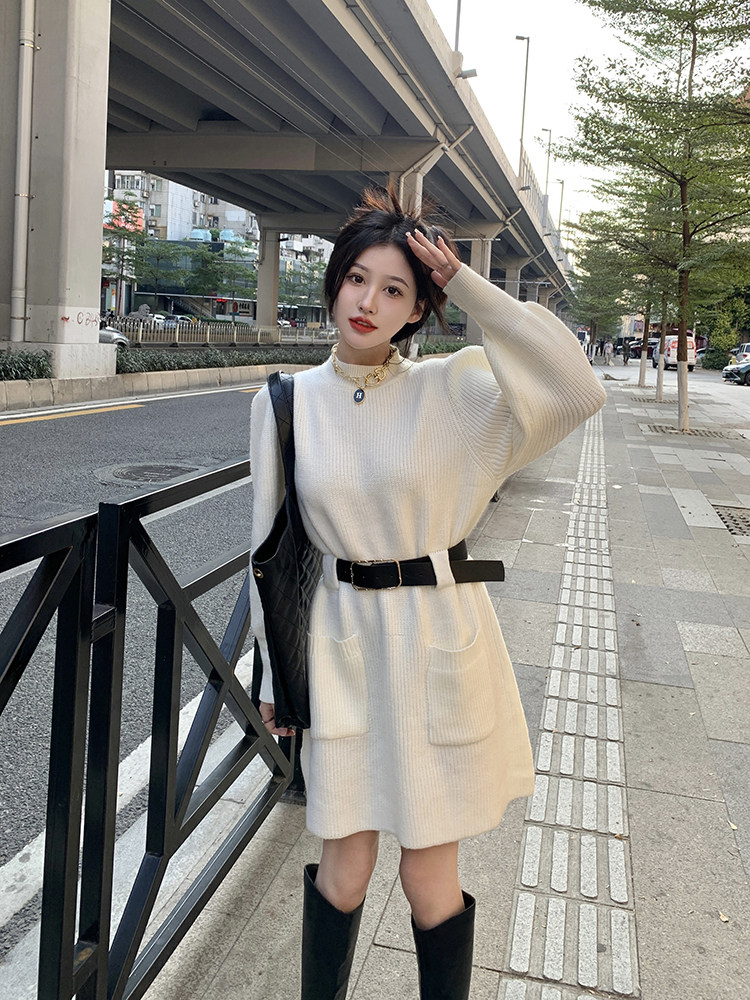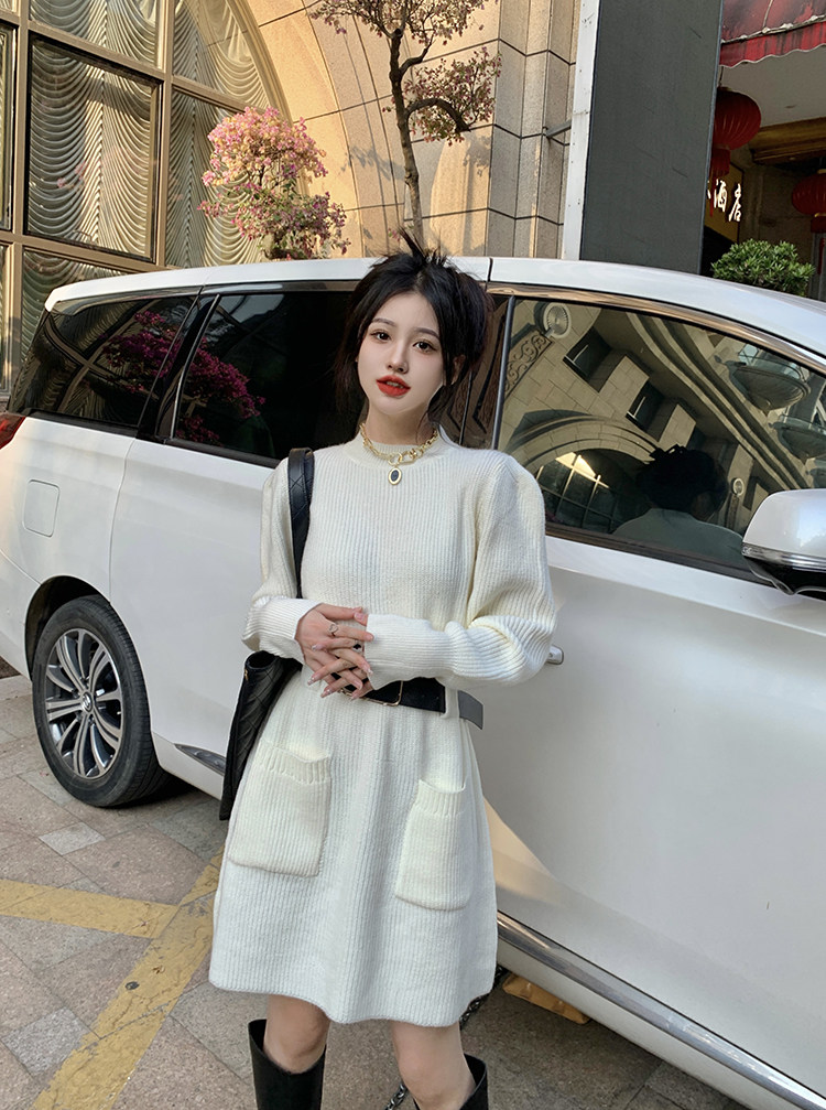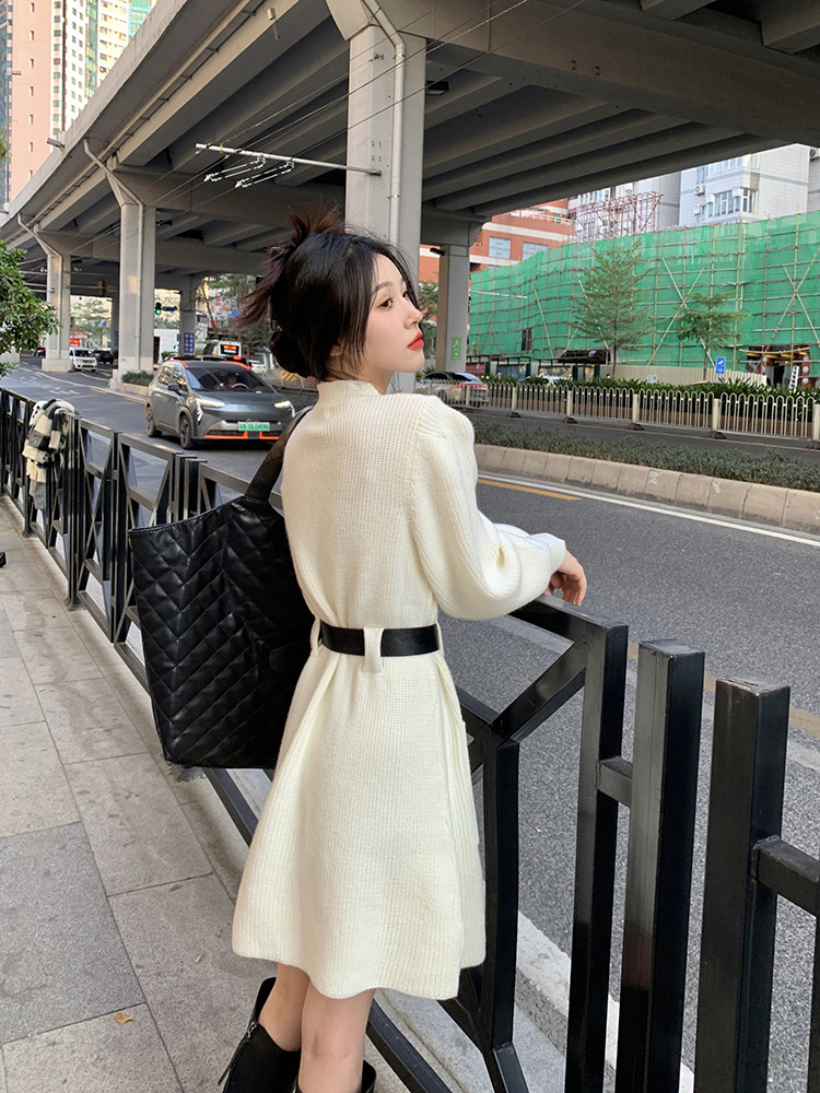 Демисезонное платье, ремень, трикотажная юбка, французский стиль, изысканный стиль