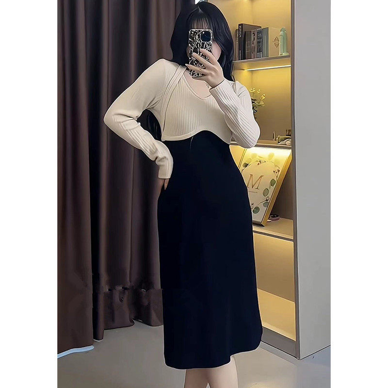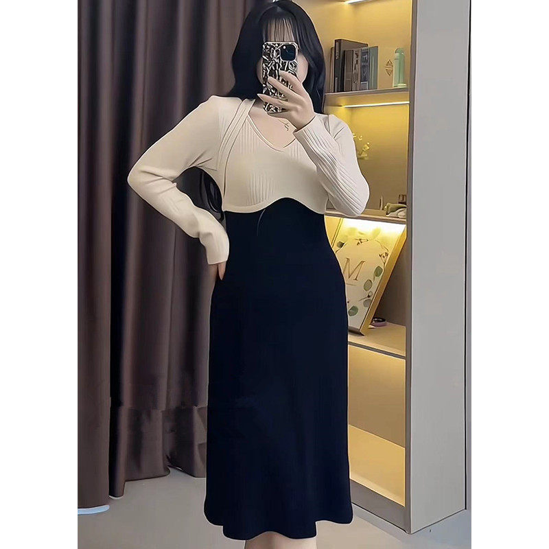 Трикотажное платье, дизайнерская юбка, большой размер, французский стиль, тренд сезона