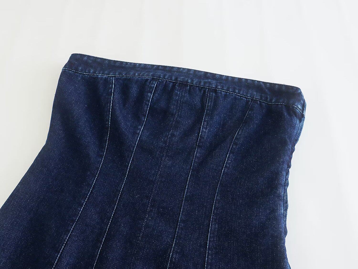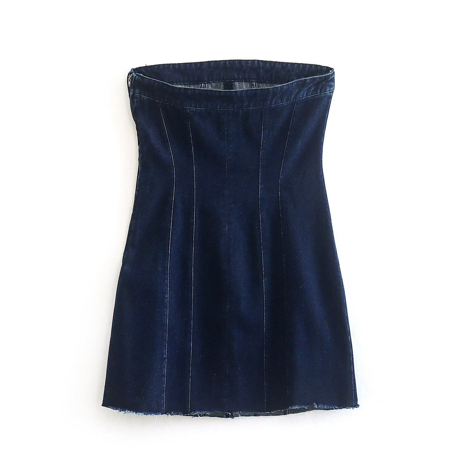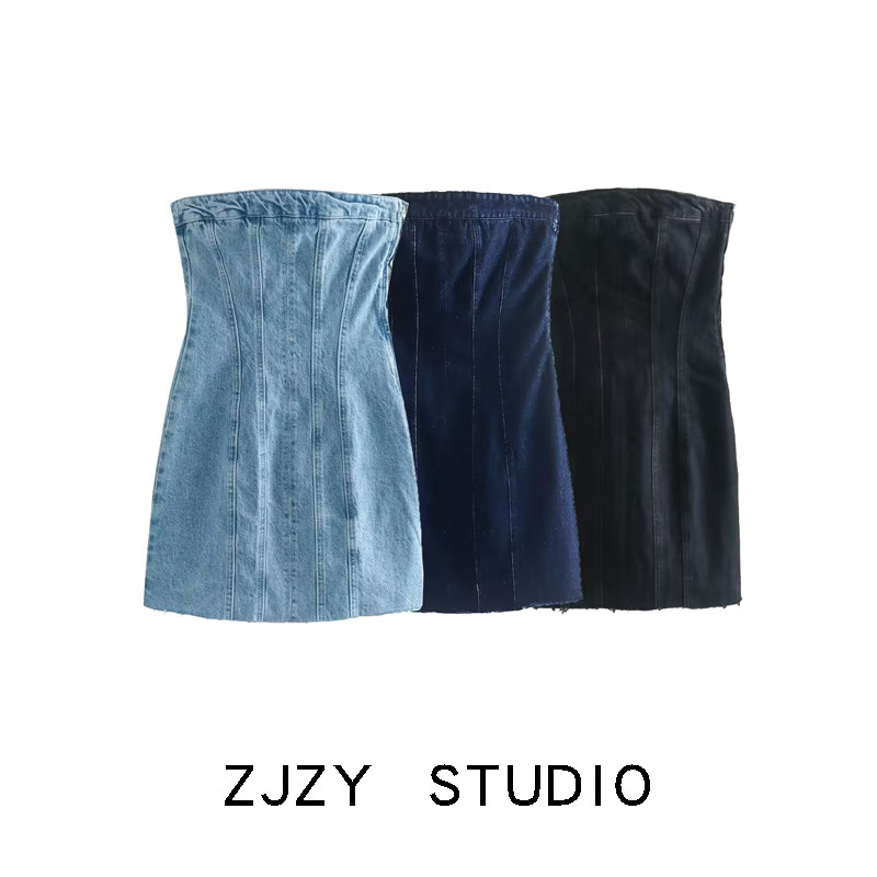 ZR Женская одежда в европейском и американском стиле ZA с открытыми плечами и прямым воротником, джинсовое короткое платье в корсетном стиле 7227281 443