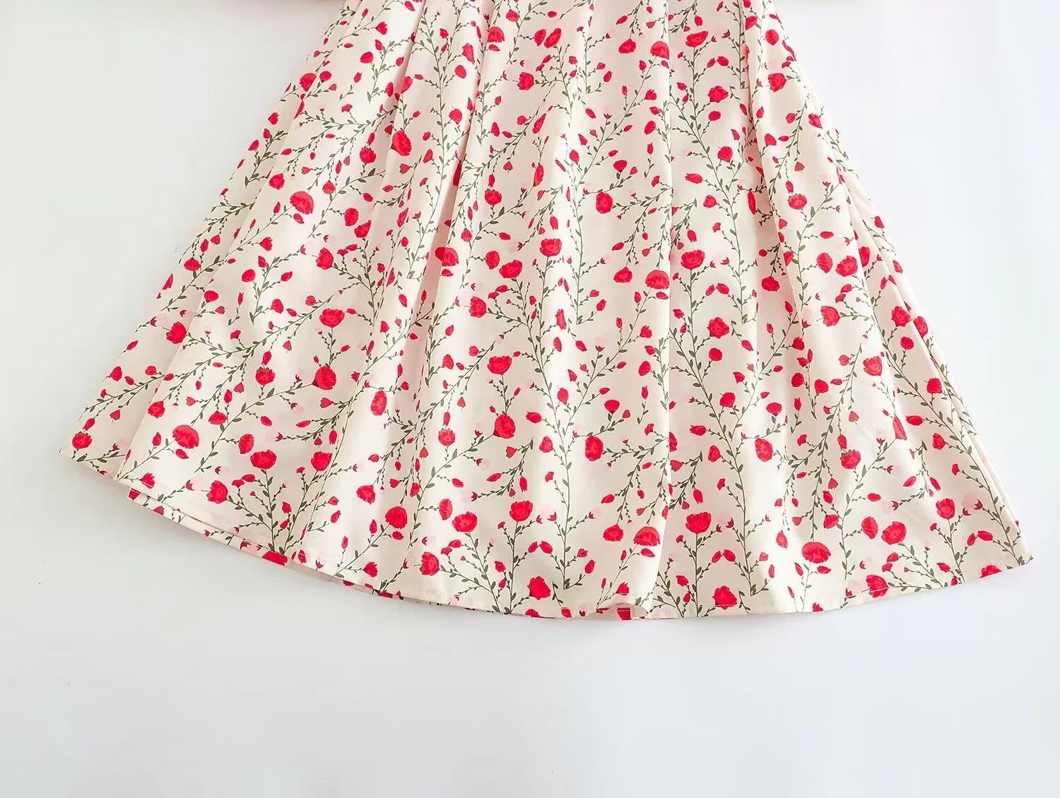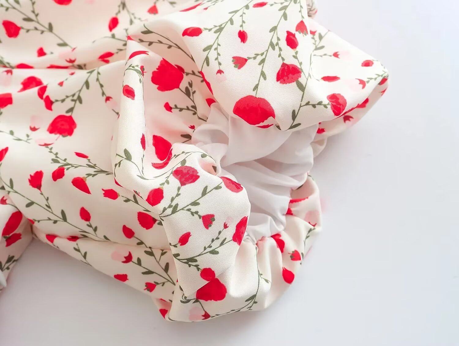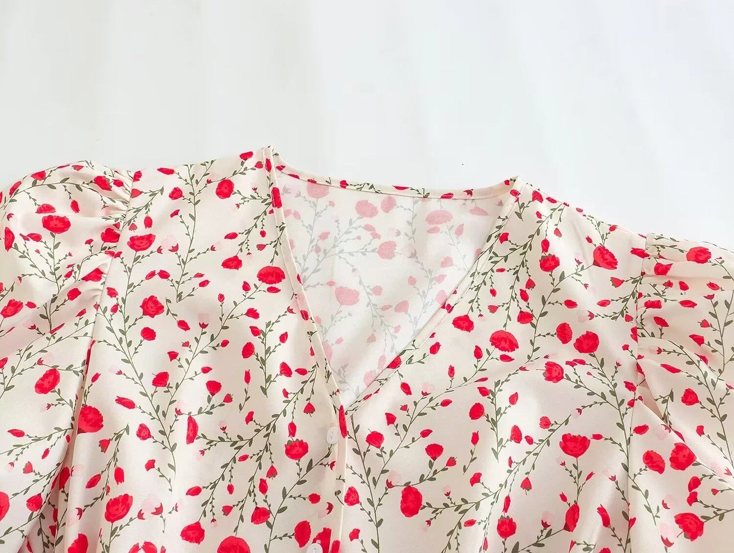 Платье, приталенный корсет, европейский стиль, французский стиль, V-образный вырез, рукава фонарики, в цветочек