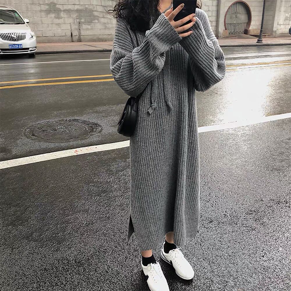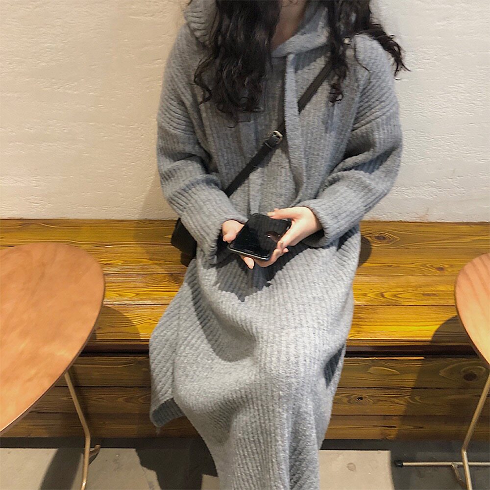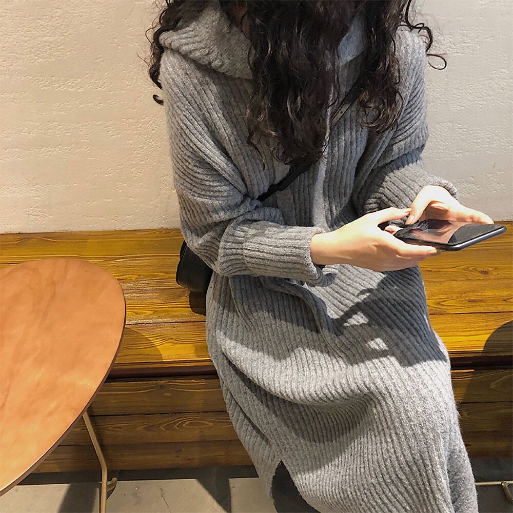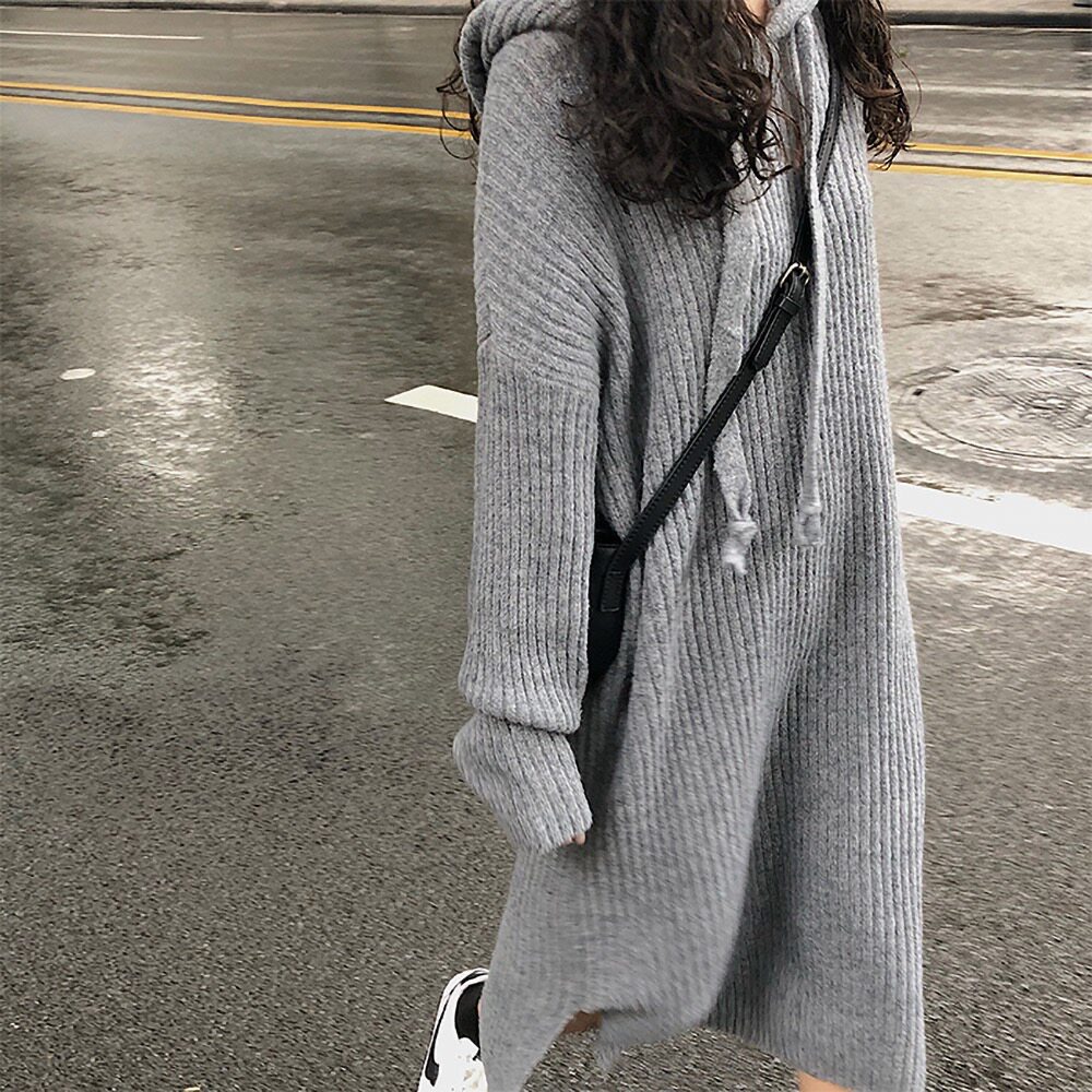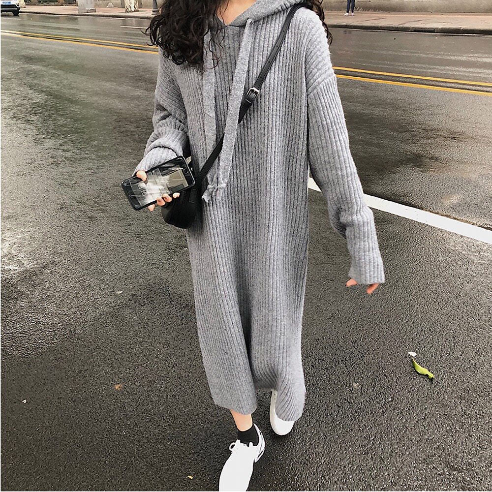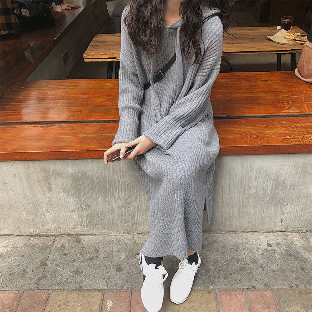 Толстовка с капюшоном, ретро трикотажное платье, длинное базовое шерстяное платье, свободный крой