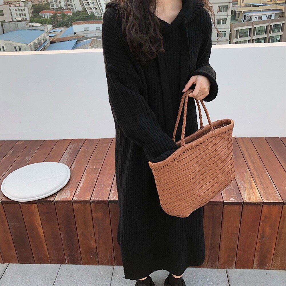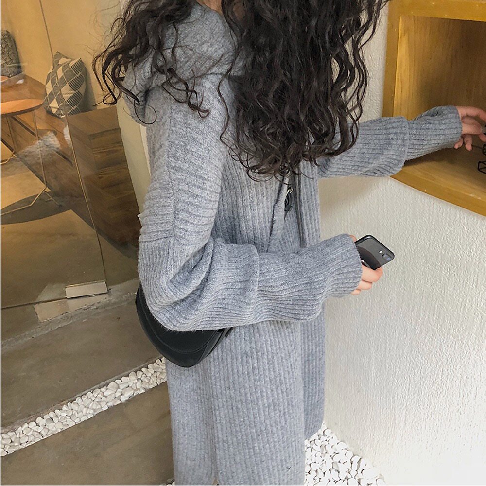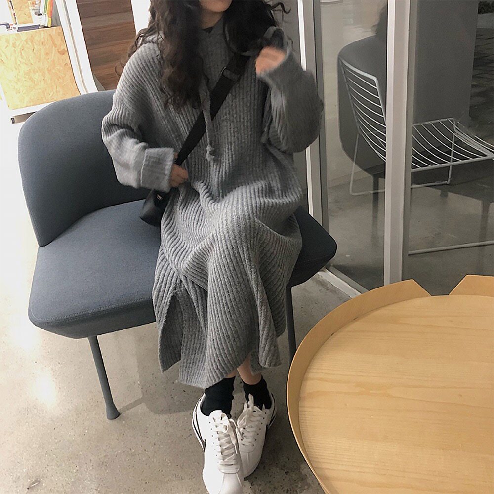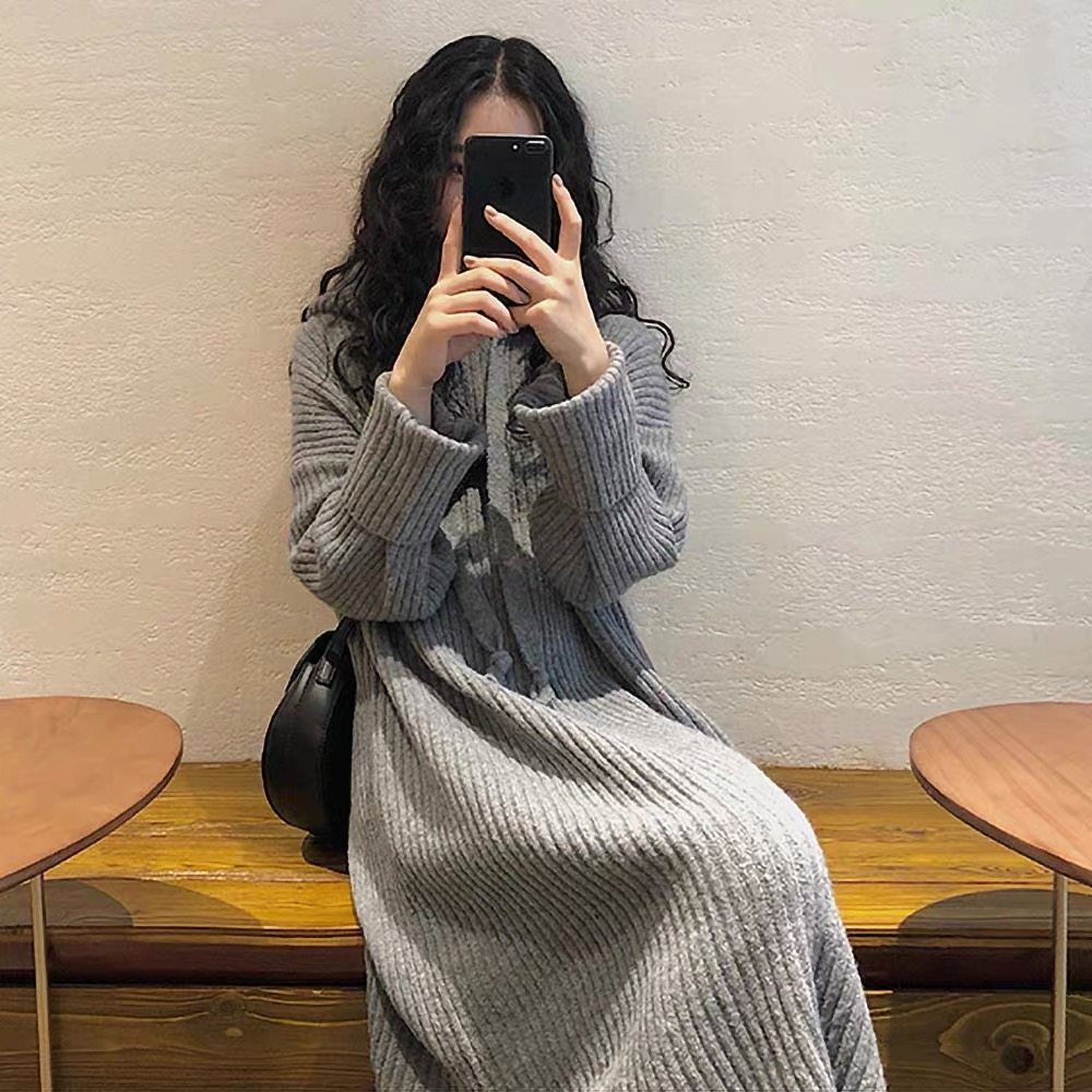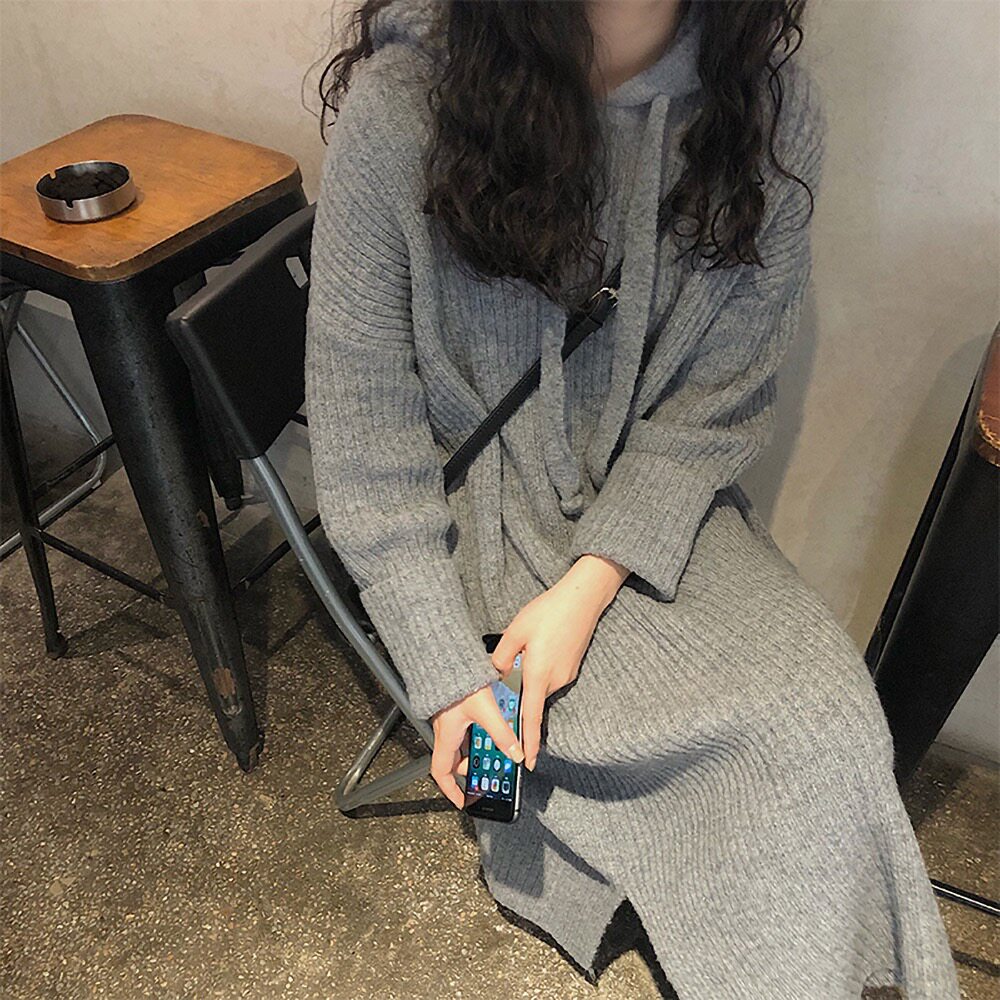 Толстовка с капюшоном, ретро трикотажное платье, длинное базовое шерстяное платье, свободный крой