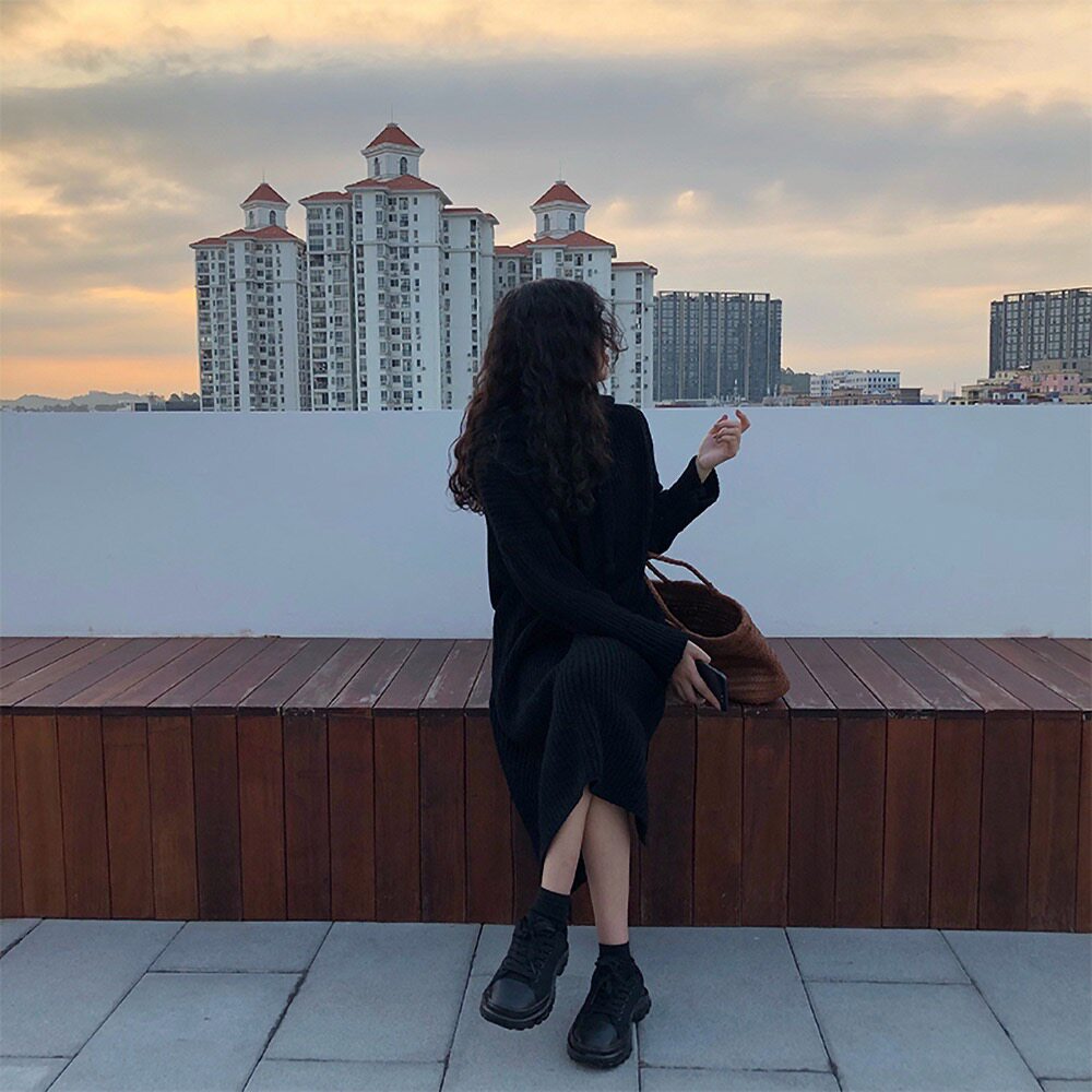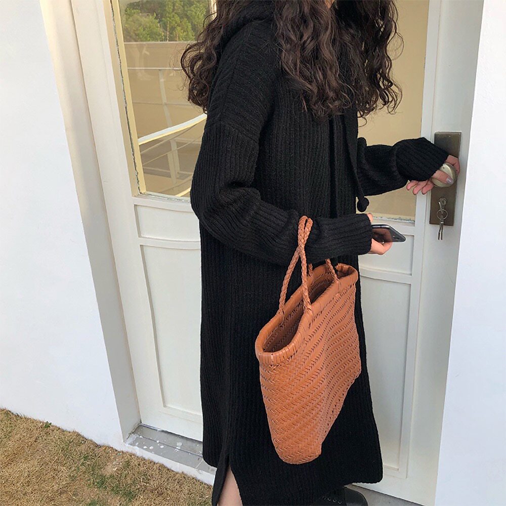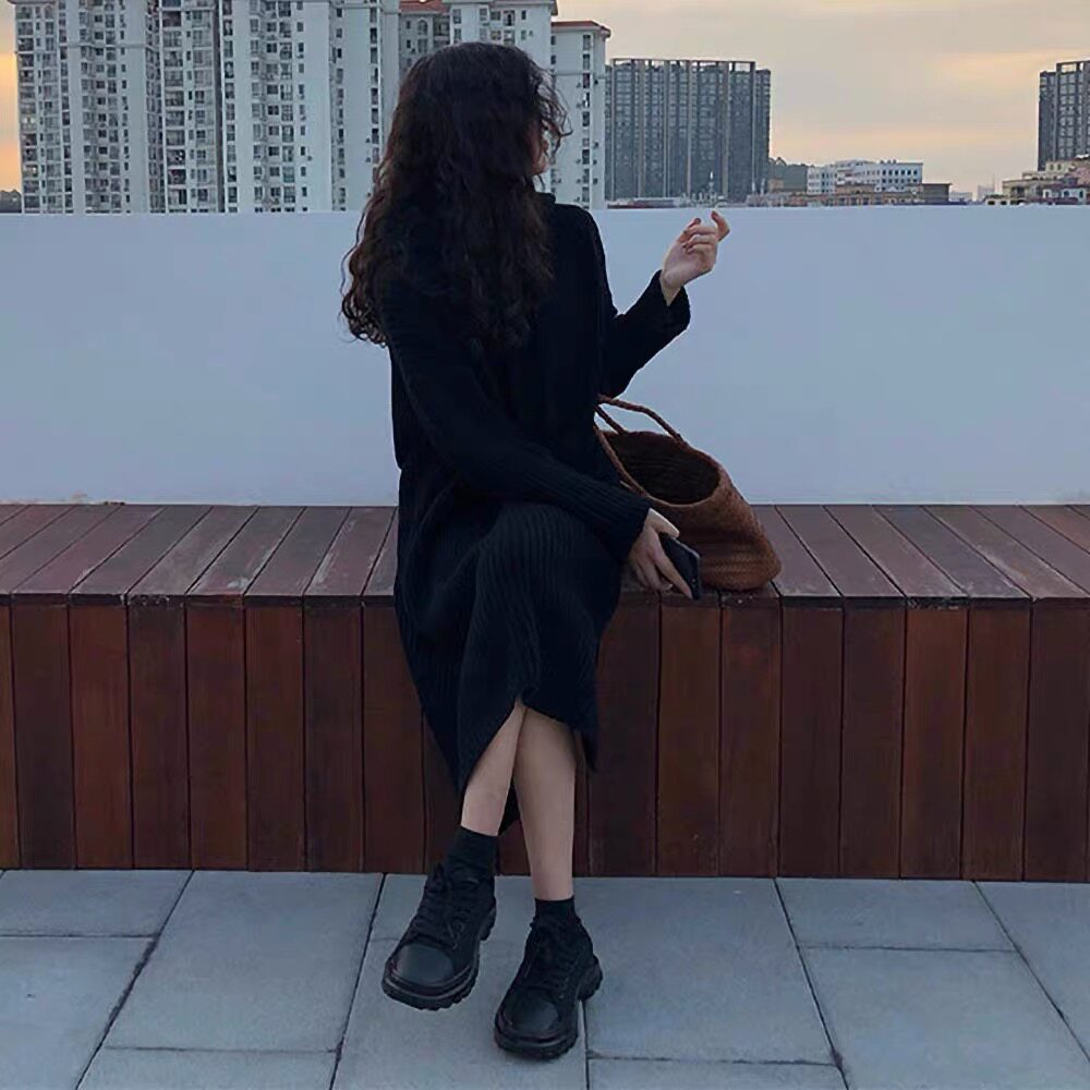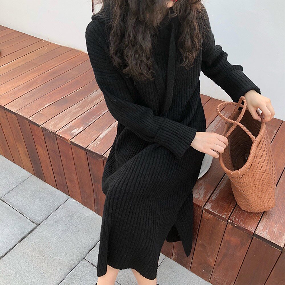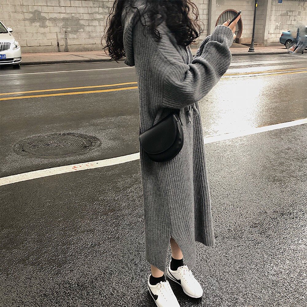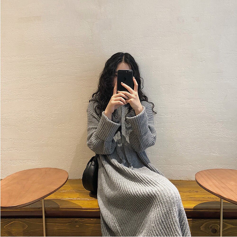 Толстовка с капюшоном, ретро трикотажное платье, длинное базовое шерстяное платье, свободный крой