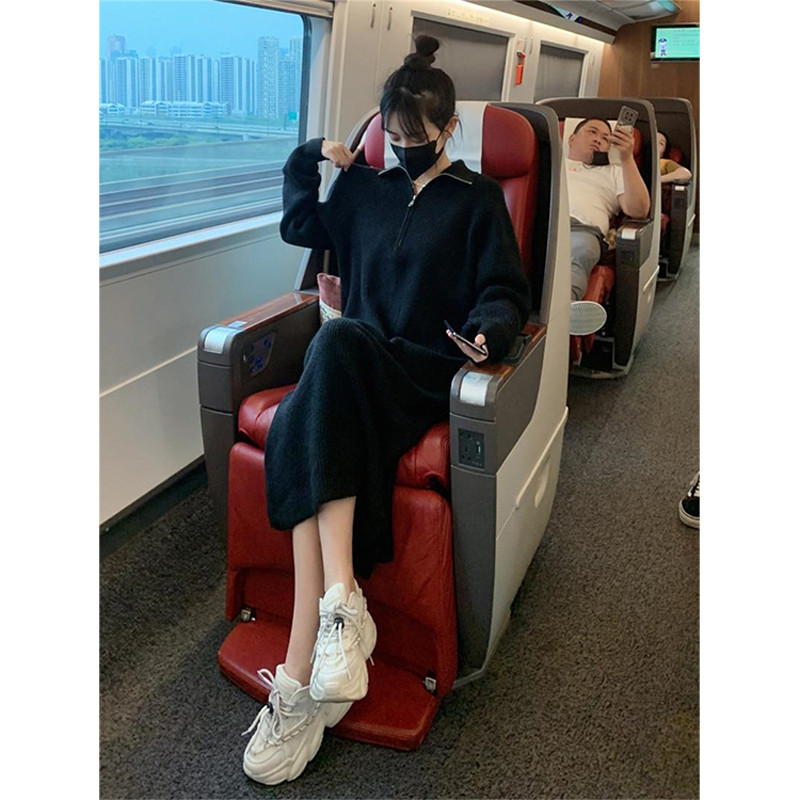 Весенняя трикотажная базовая толстовка, демисезонное шерстяное платье с молнией, коллекция 2023