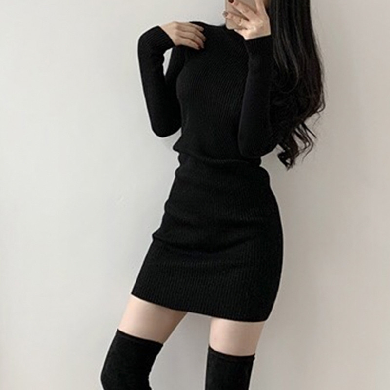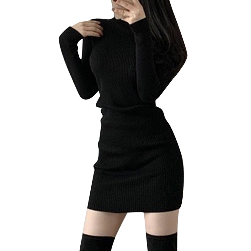 Трикотажный базовый свитер, платье, мини-юбка, с акцентом на бедрах