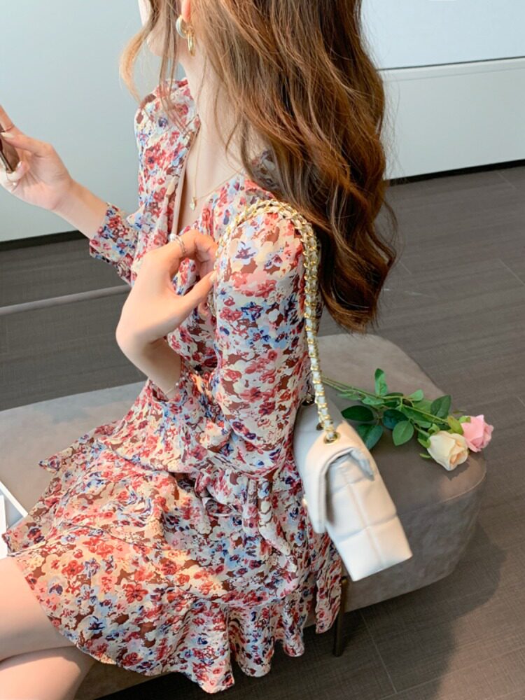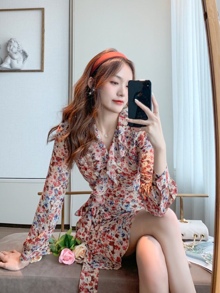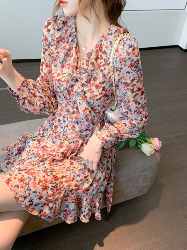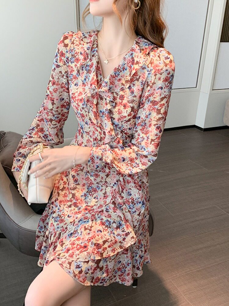Осеннее демисезонное шифоновое базовое платье, лонгслив, коллекция 2023, французский стиль, подходит для подростков