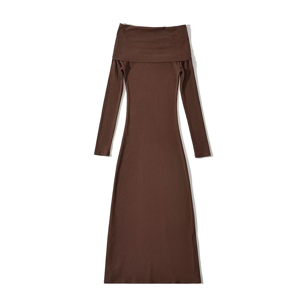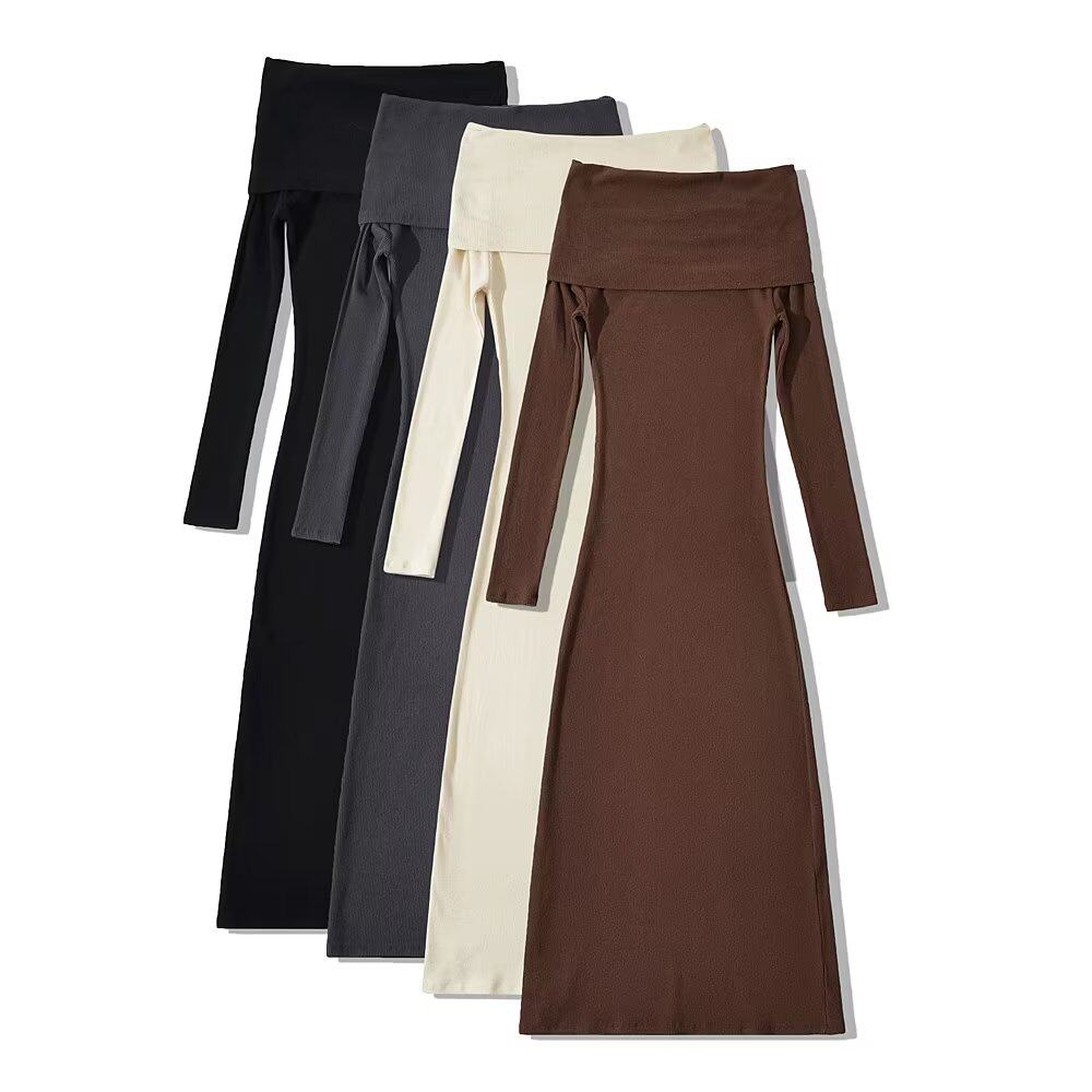 Фиолетовая трботтомия европейская и американская стиль Новое сексуальное сексуальное матовое одно плечо платье с длинными рукавами дно миди-юбка покрывает бедра