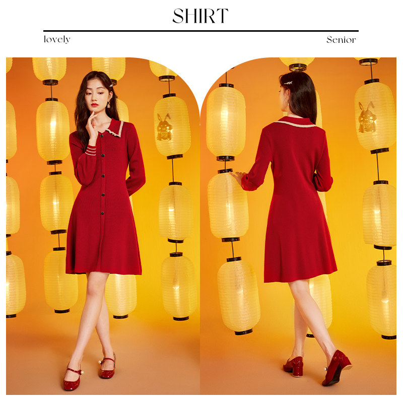 Летняя кукла, шерстяное платье, юбка, красное трикотажное платье, кукольный воротник, яркий броский стиль, по фигуре