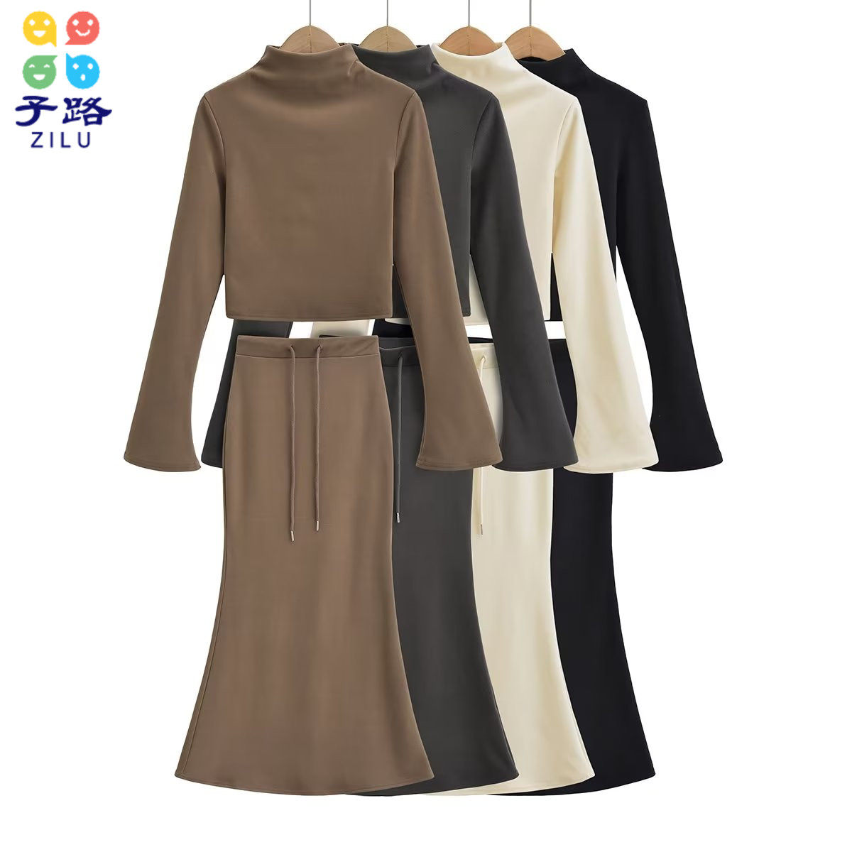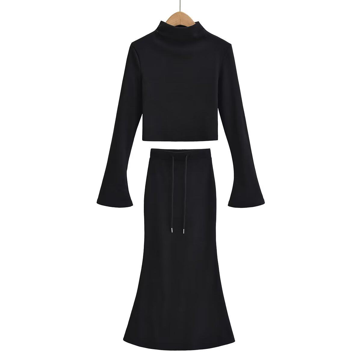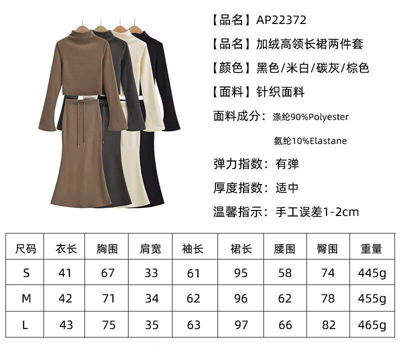 Демисезонная утепленная бархатная юбка, приятная телу футболка, комплект, европейский стиль, высокий воротник