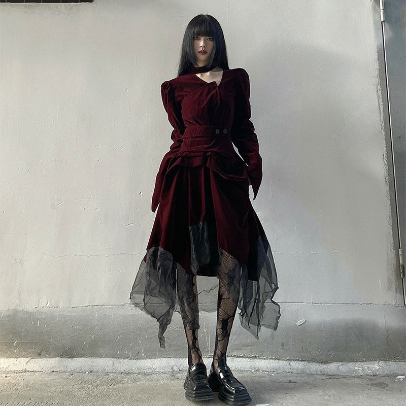 幽灵少女 Демисезонная красная замшевая длинная юбка, пуховик, вечернее платье, подарок на день рождения