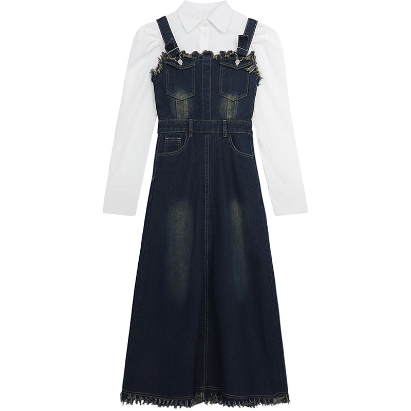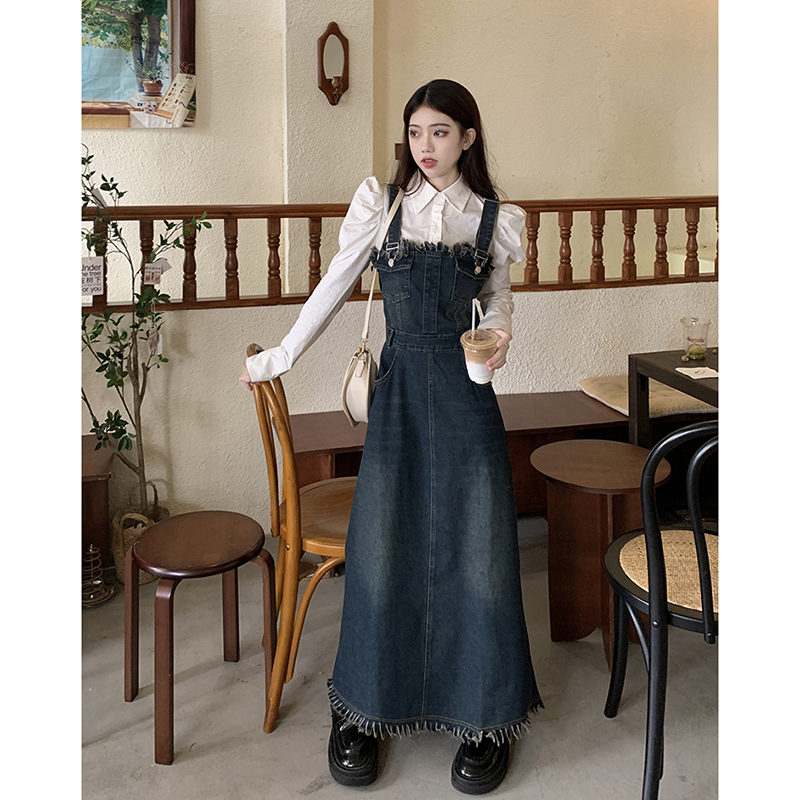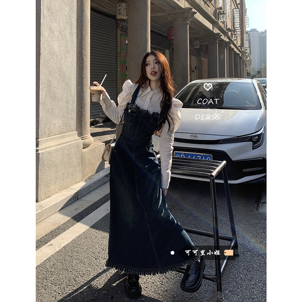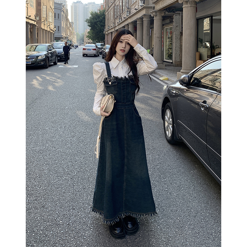 Джинсовые подтяжки, летнее дизайнерское платье, приталенный корсет, длинная юбка, тренд сезона, французский стиль