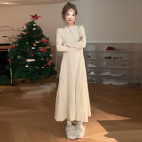 Трикотажное трикотажное платье, длинная юбка, большой размер, в корейском стиле, по фигуре, французский стиль