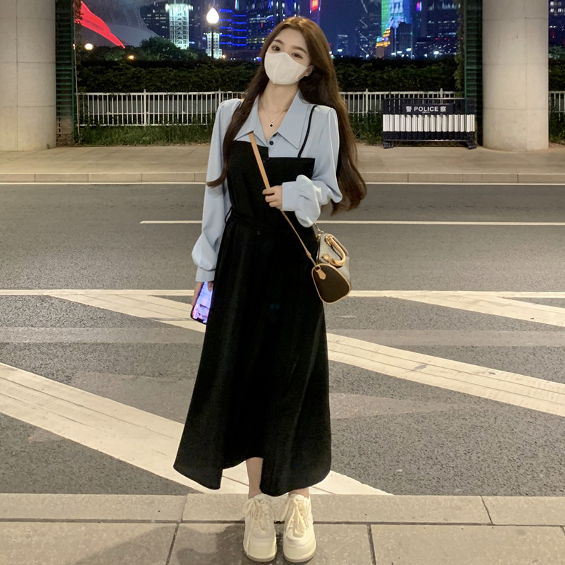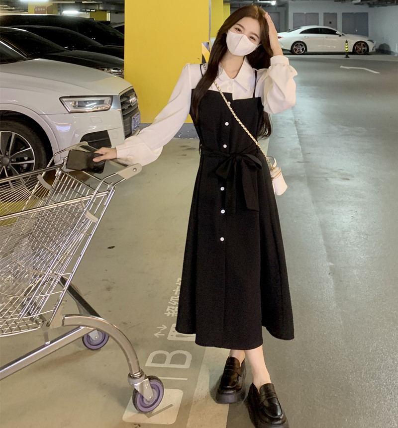 Лонгслив, дизайнерский корсет, платье, осенний, городской стиль, большой размер, французский стиль