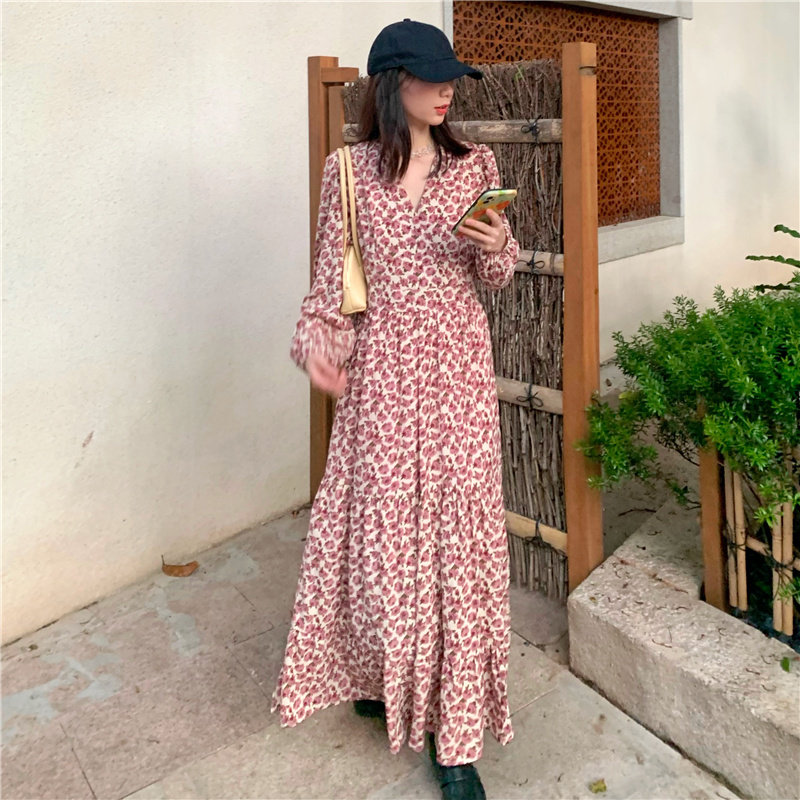 Свежее милое платье, длинная юбка, большой размер, французский стиль, в цветочек, 2023