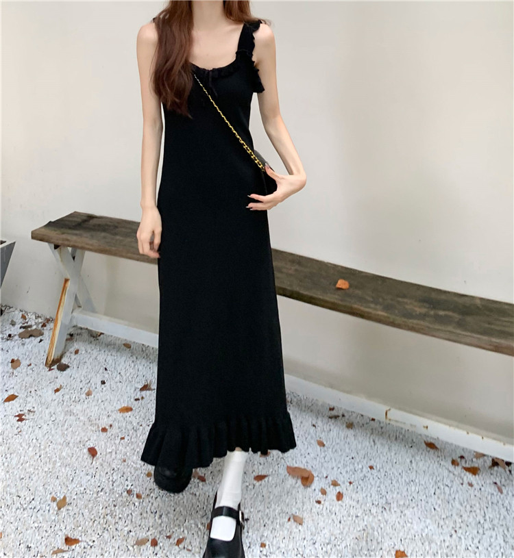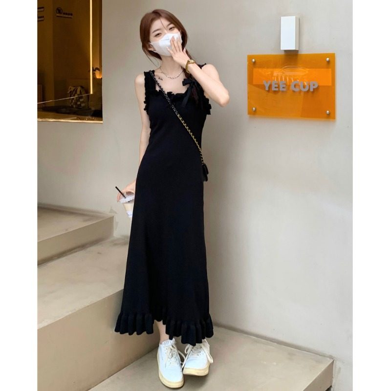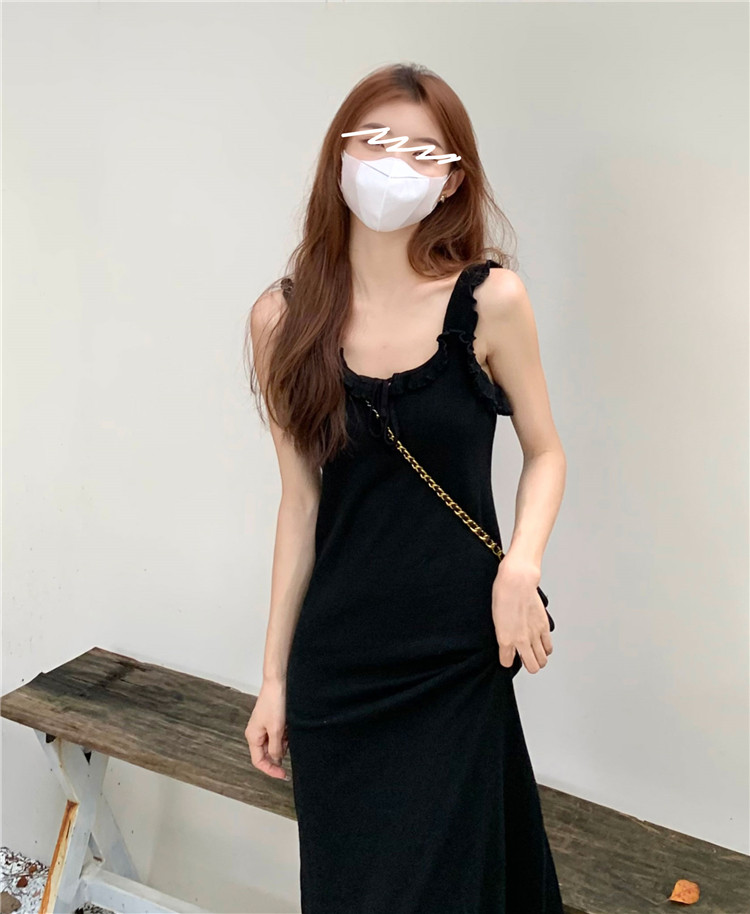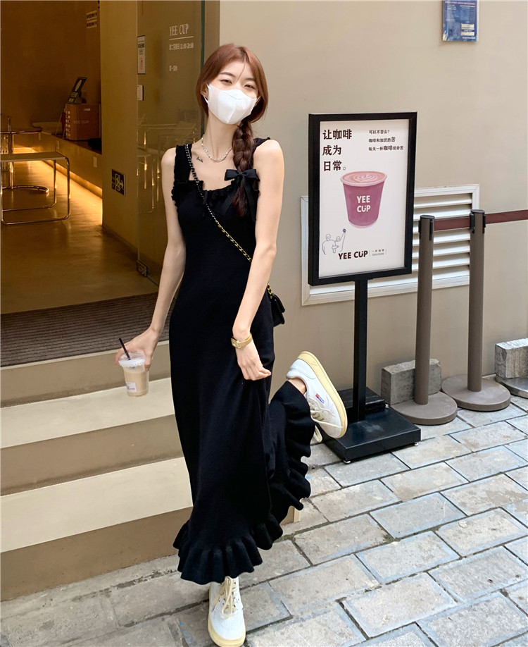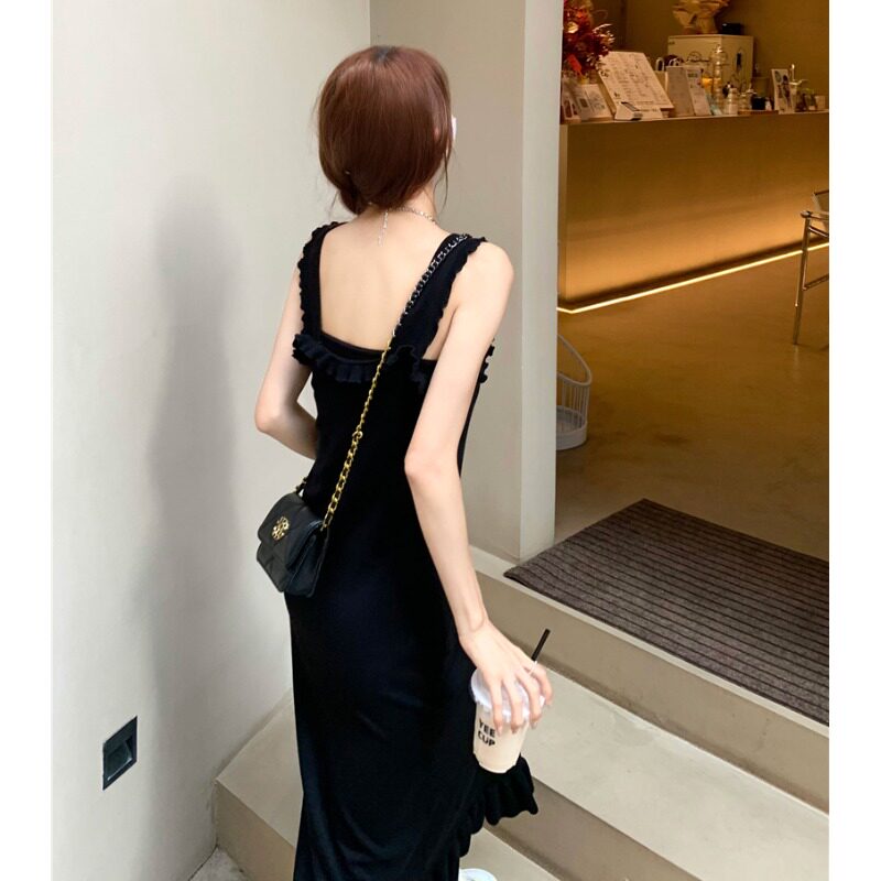 Черная небольшая дизайнерская майка, весеннее платье, приталенная базовая длинная юбка, тренд сезона