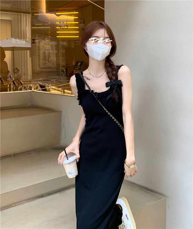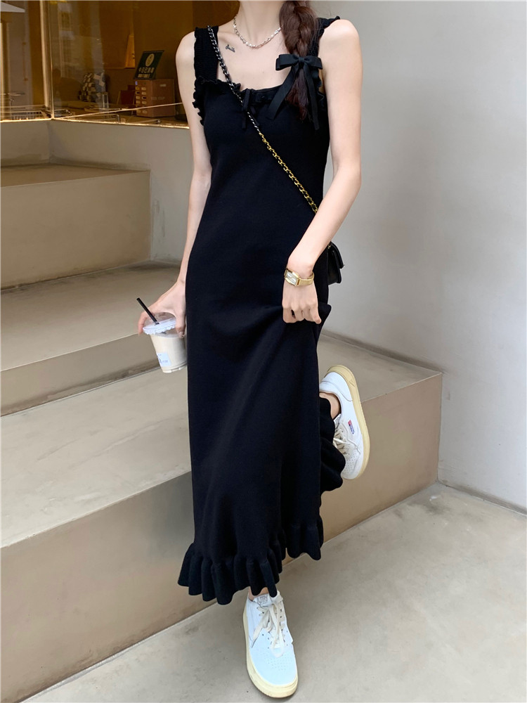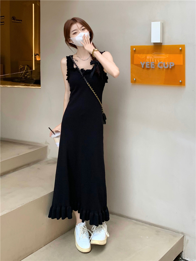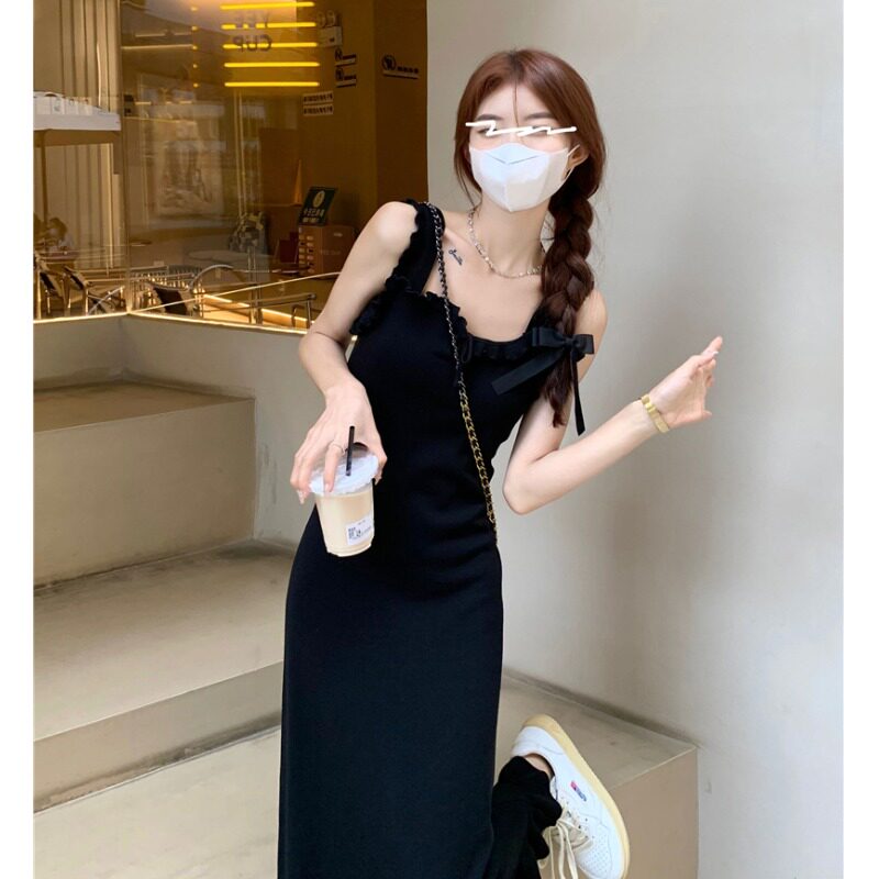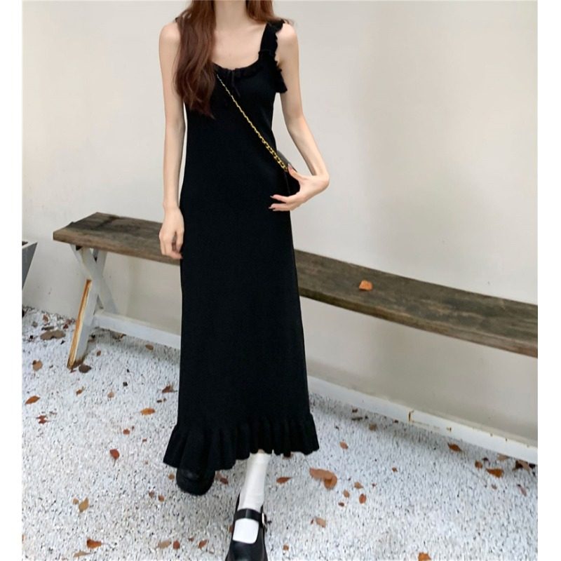Черная небольшая дизайнерская майка, весеннее платье, приталенная базовая длинная юбка, тренд сезона
