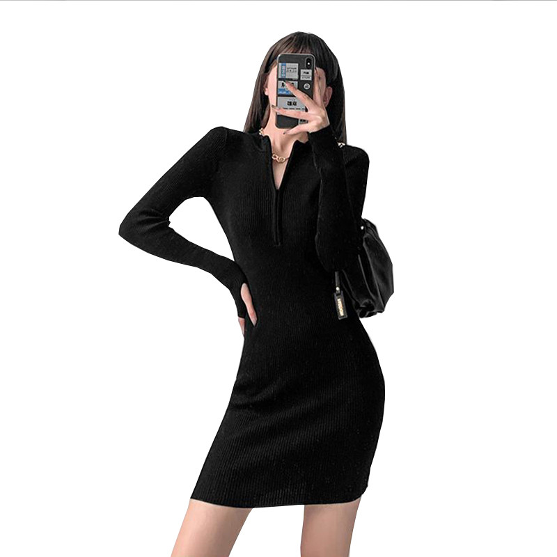 Сексуальное трикотажное демисезонное платье, свитер, с акцентом на бедрах