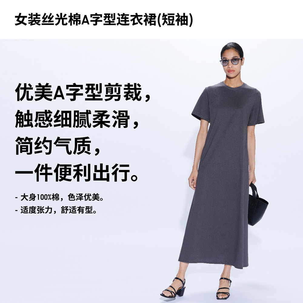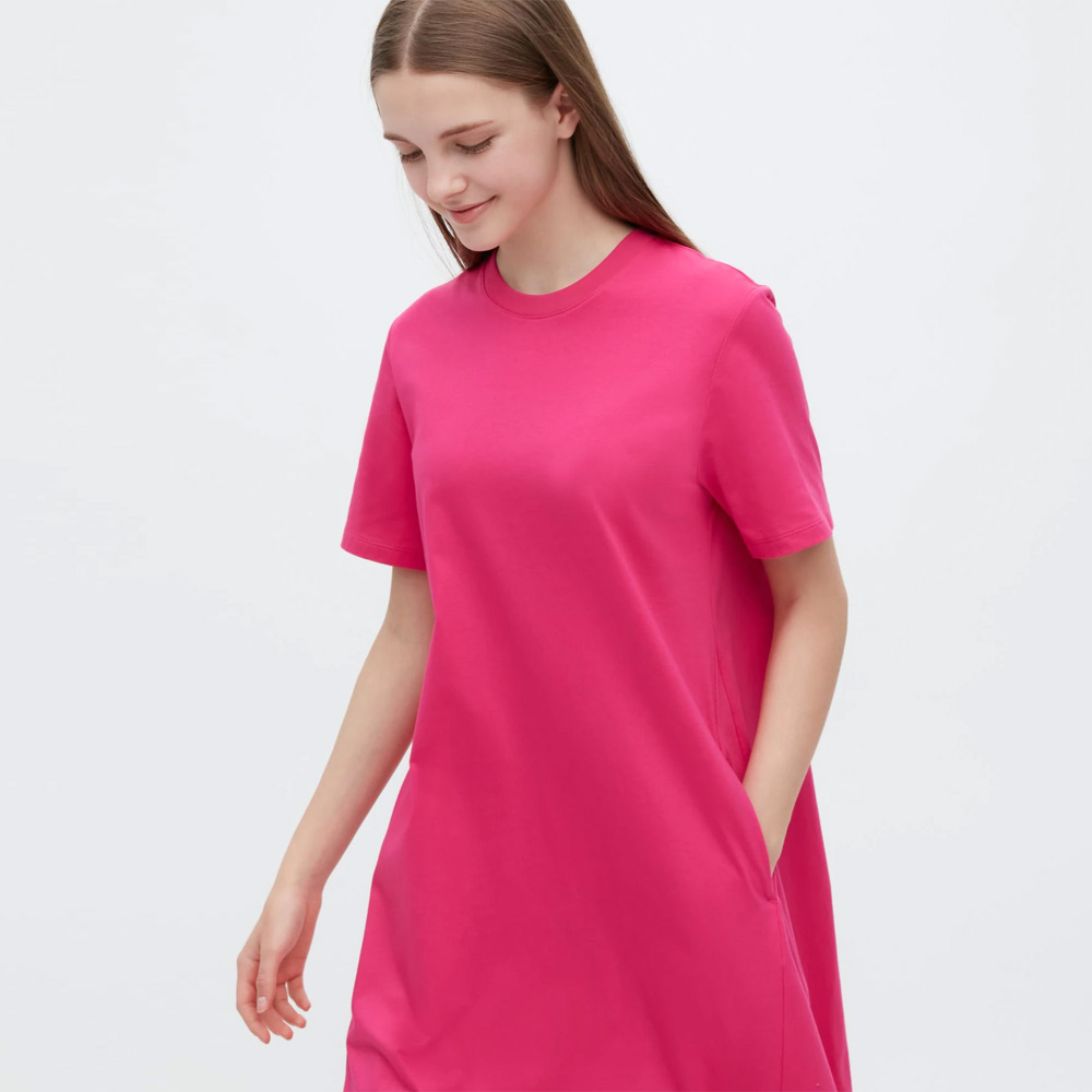 Uniqlo, хлопковое платье с карманами, А-силуэт, короткий рукав