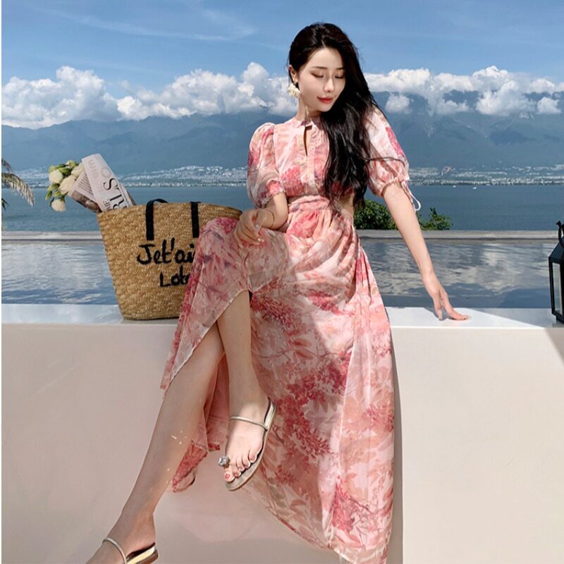 Милое летнее платье, сексуальный приталенный корсет, длинная юбка, французский стиль, цветочный принт