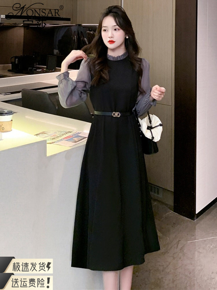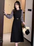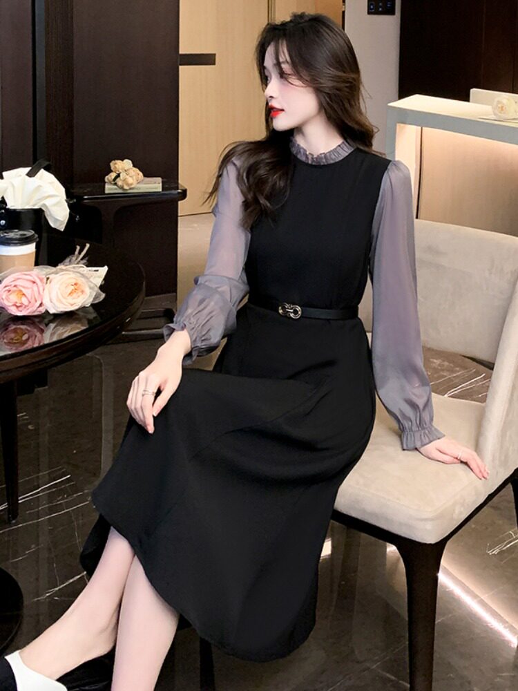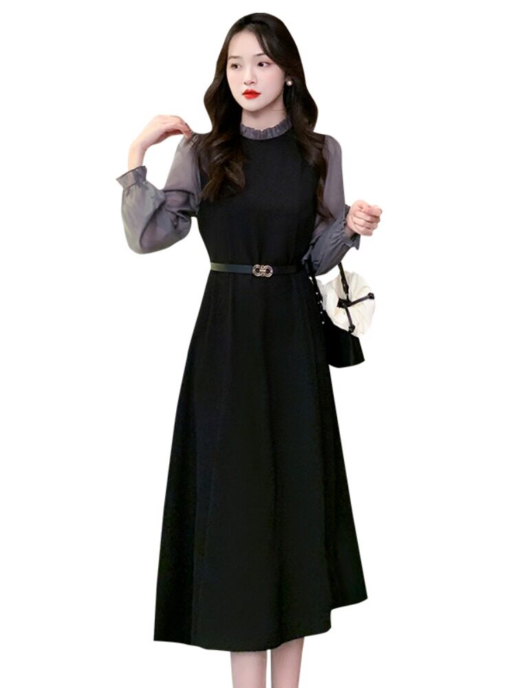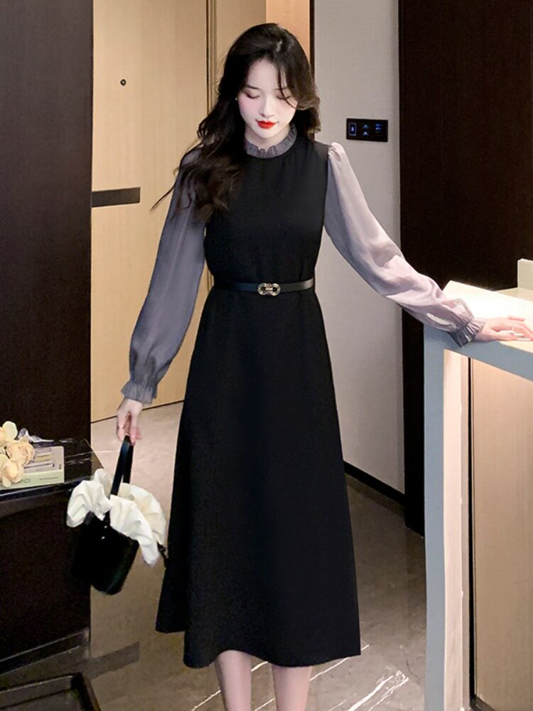 Осеннее демисезонное платье, длинная юбка, коллекция 2023, французский стиль