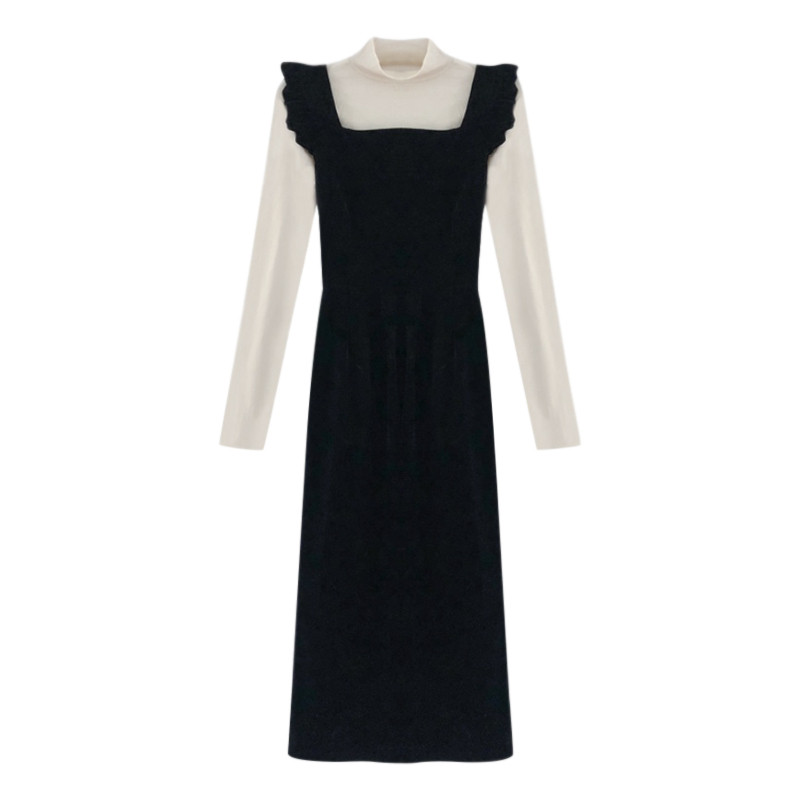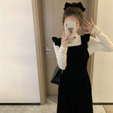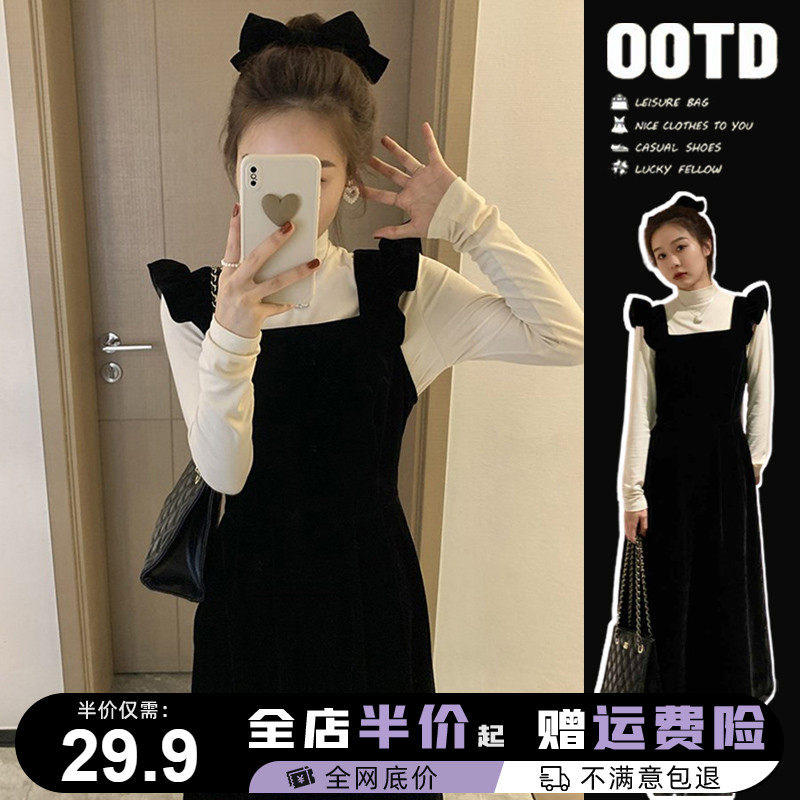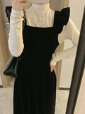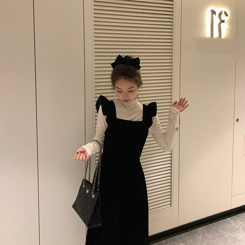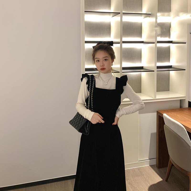 Демисезонные черные бархатные подтяжки, молодежное платье, коллекция 2023, изысканный стиль, подходит для подростков
