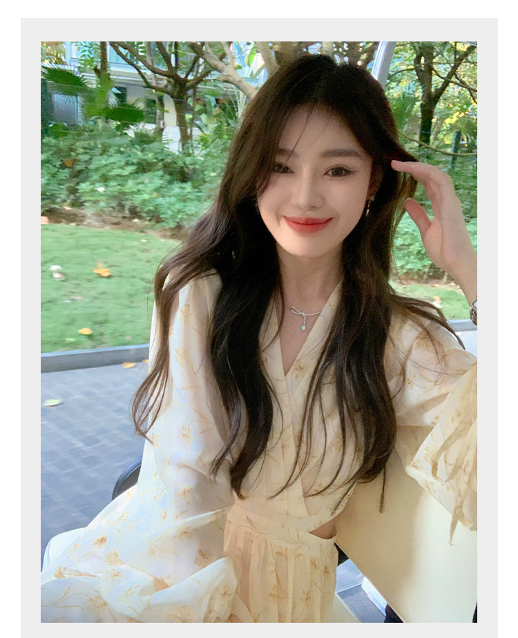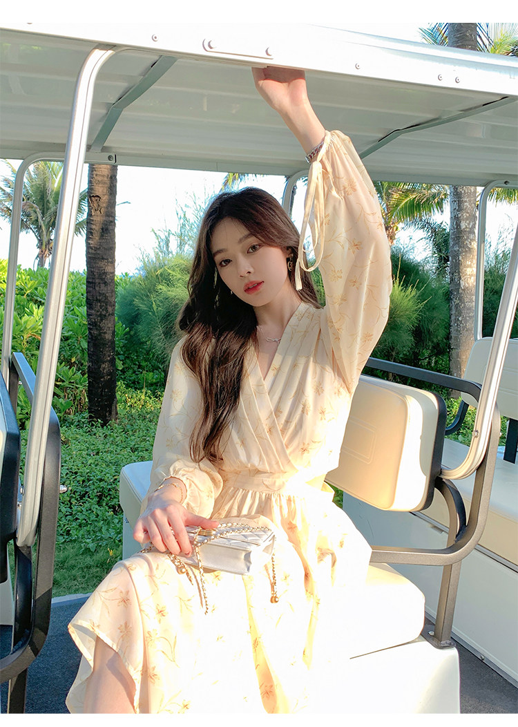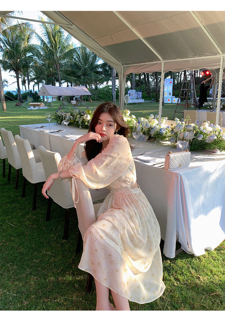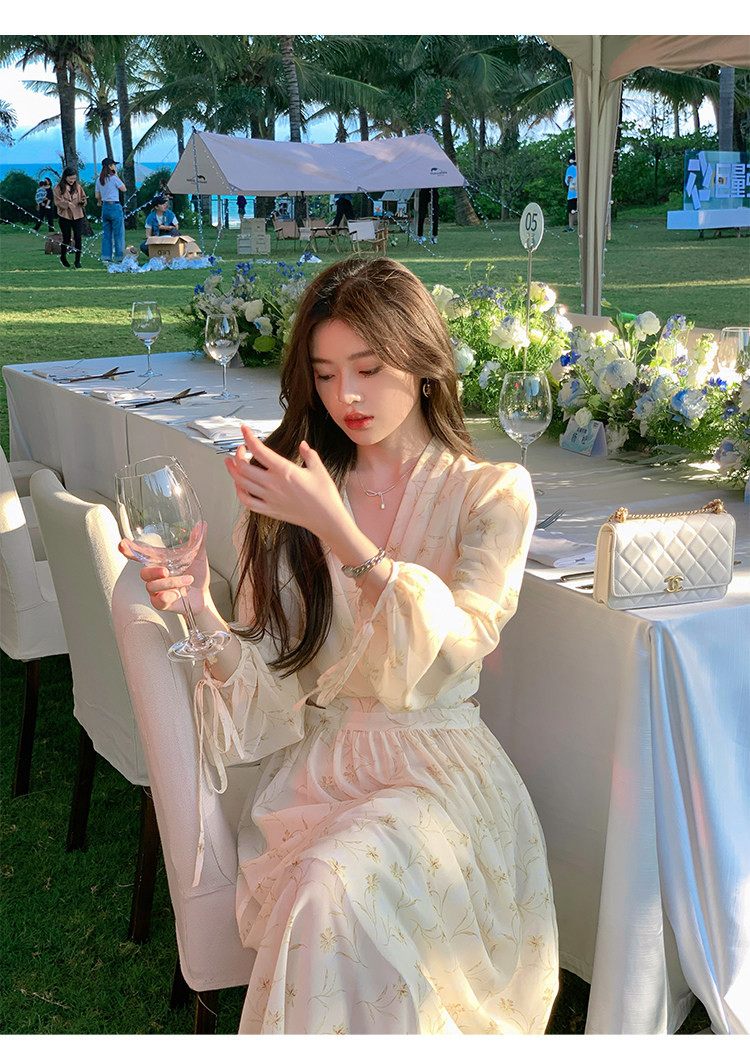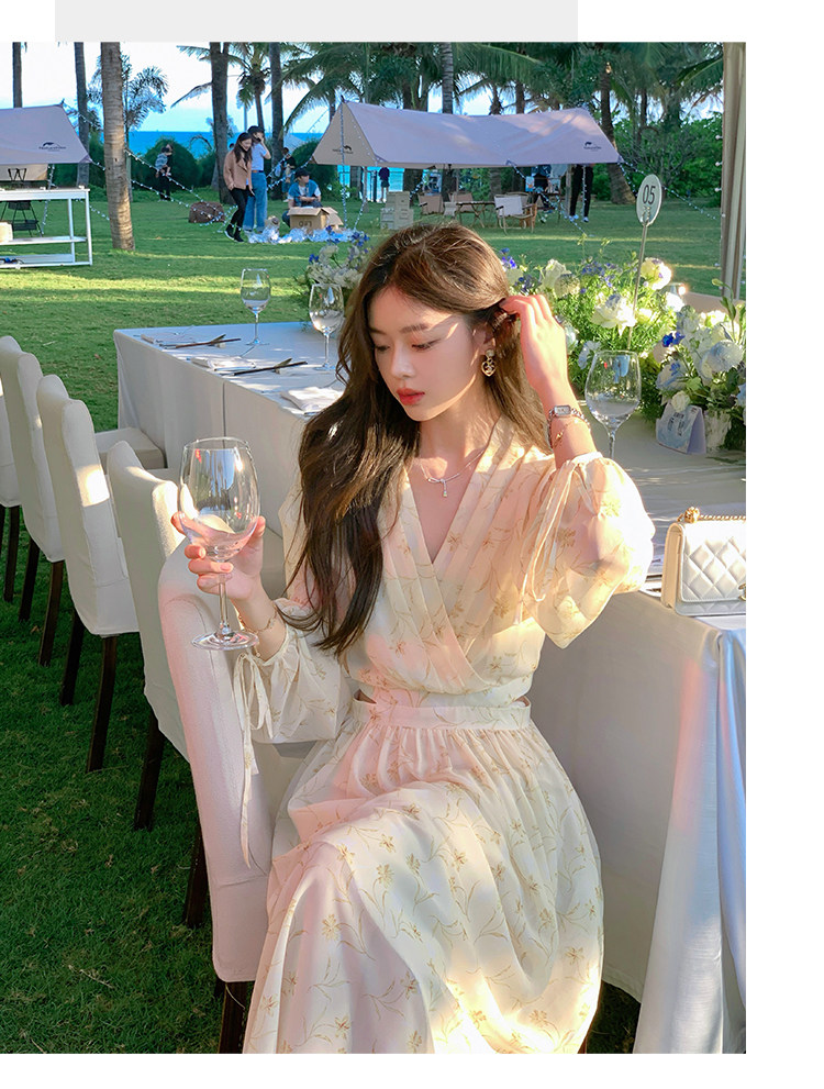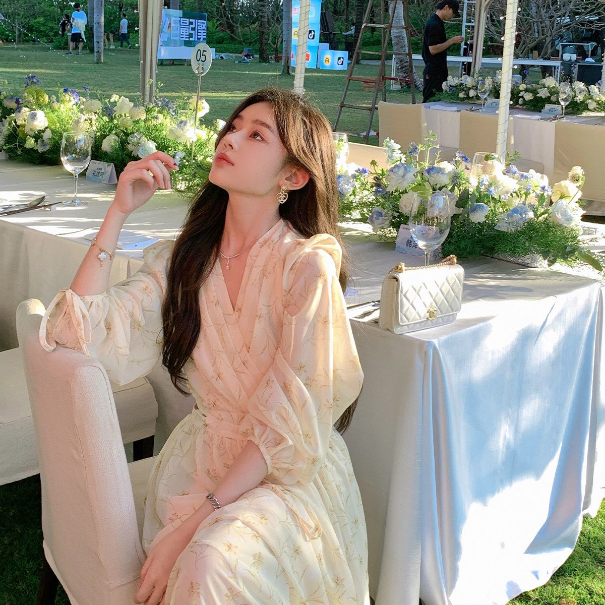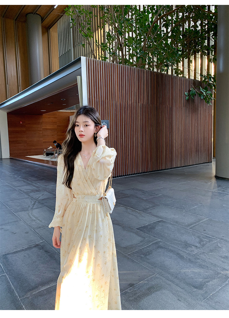 Летнее платье, длинная юбка, городской стиль, яркий броский стиль, изысканный стиль, V-образный вырез, в цветочек, рукава фонарики