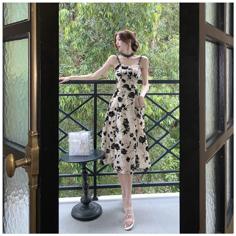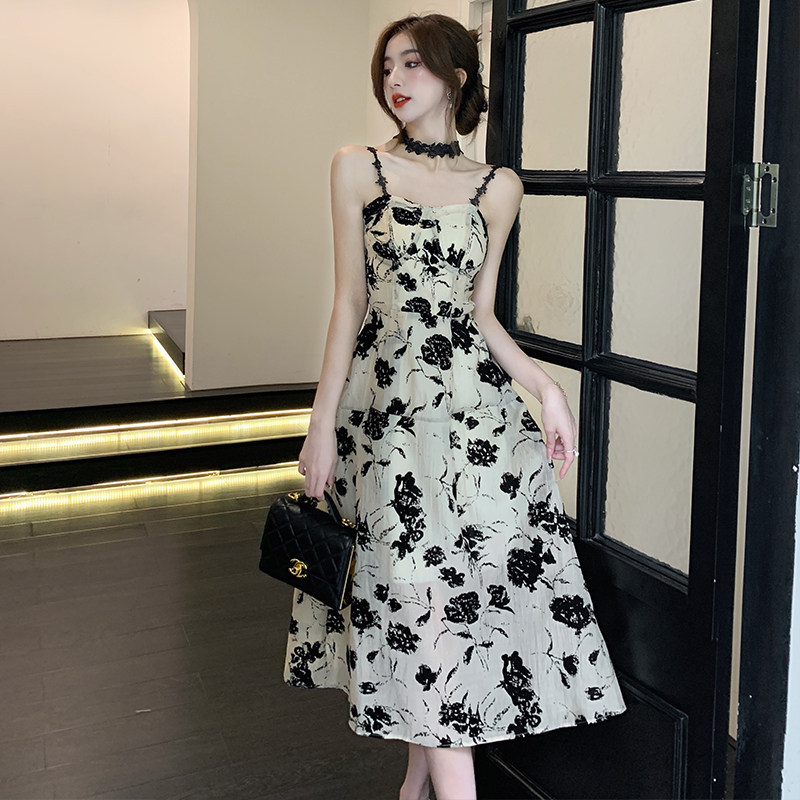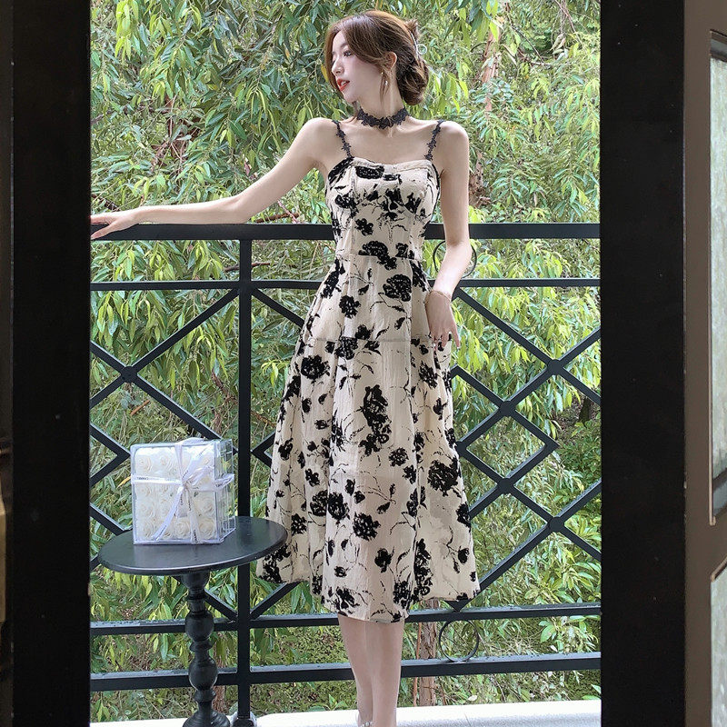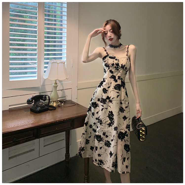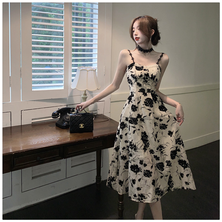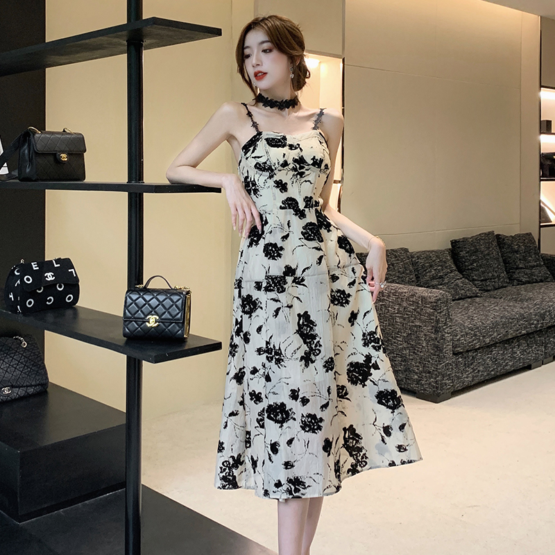 Ретро сексуальное небольшое платье, дизайнерский корсет, летняя длинная юбка, французский стиль, цветочный принт