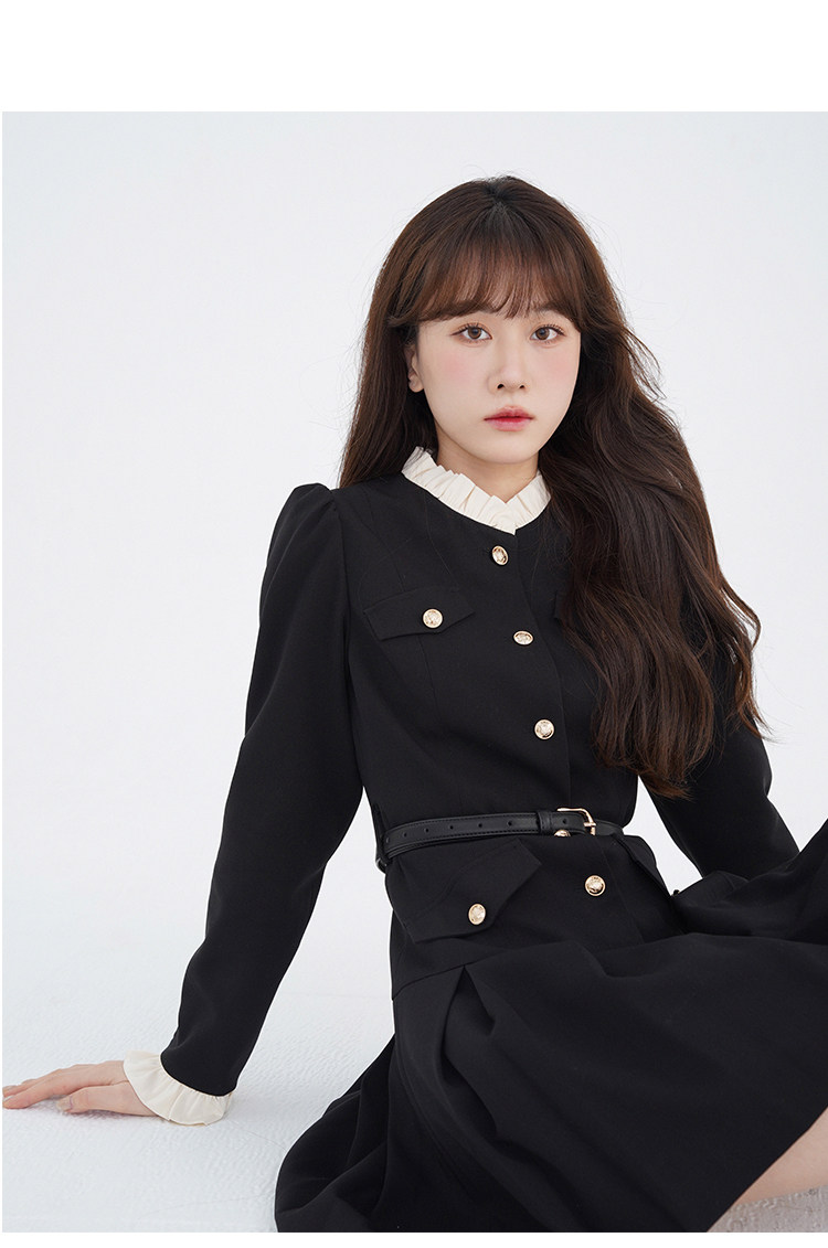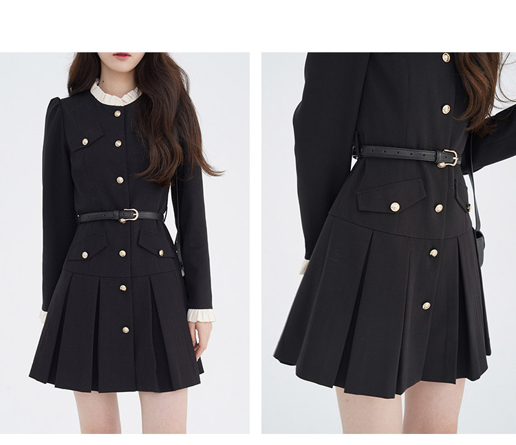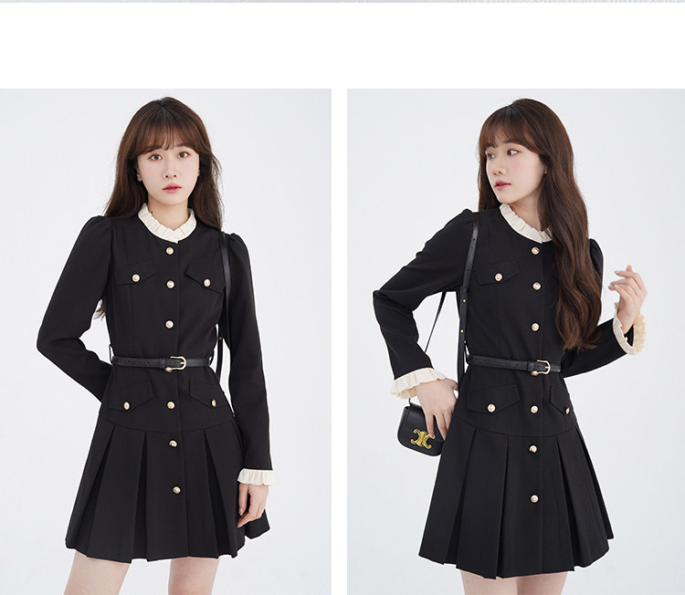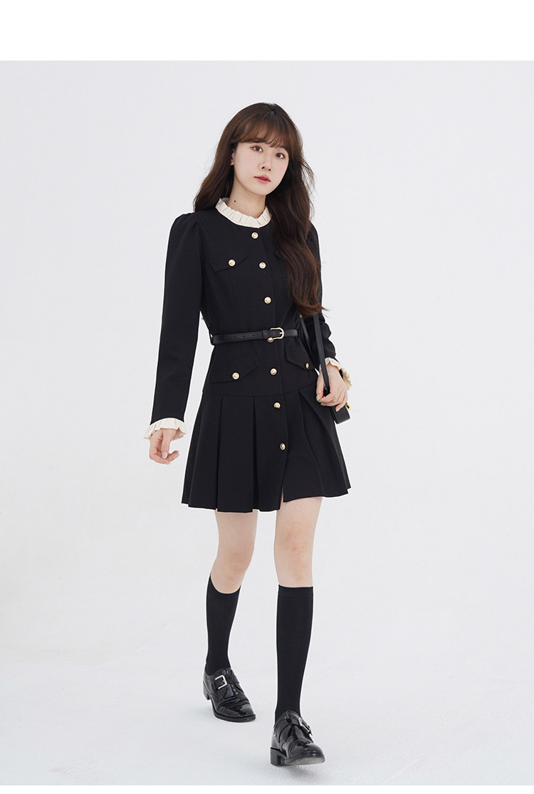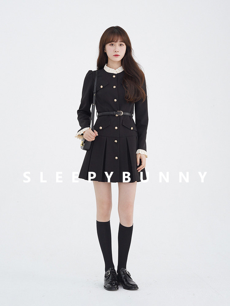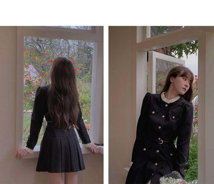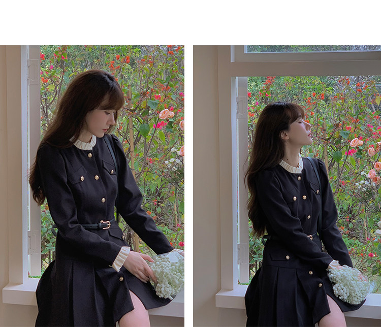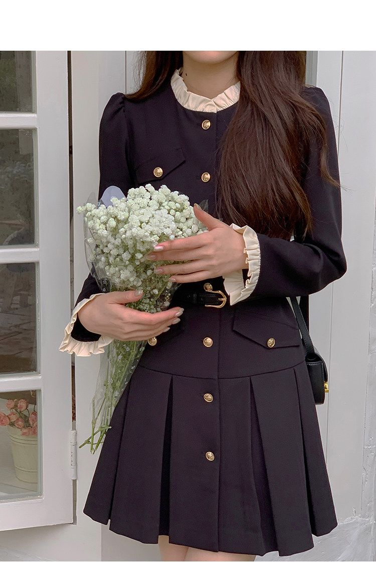 Комплект, осенний лонгслив, милое элегантное черное платье, высокая талия, А-силуэт