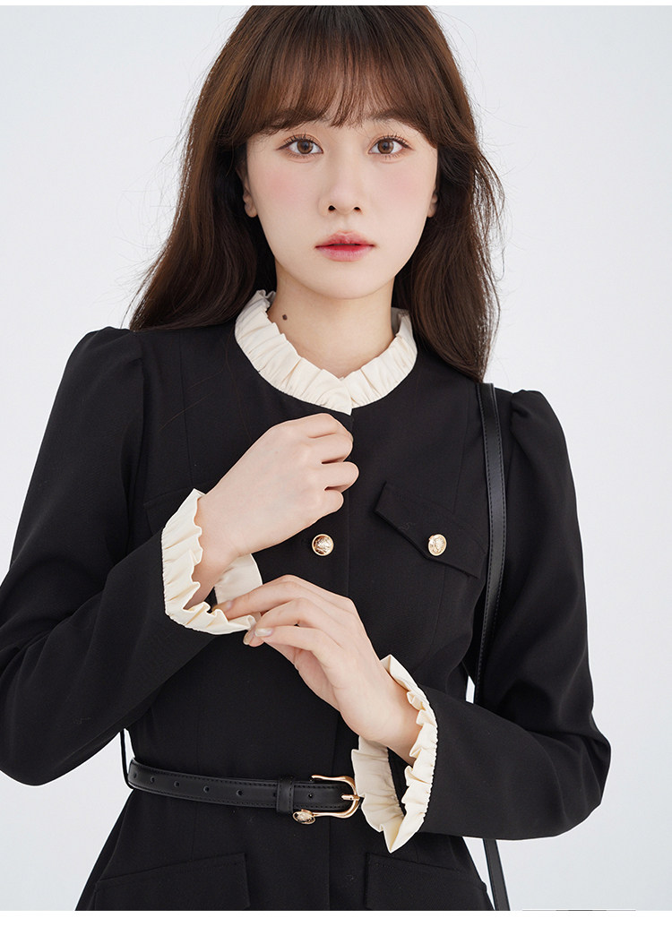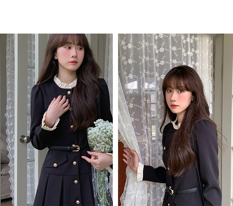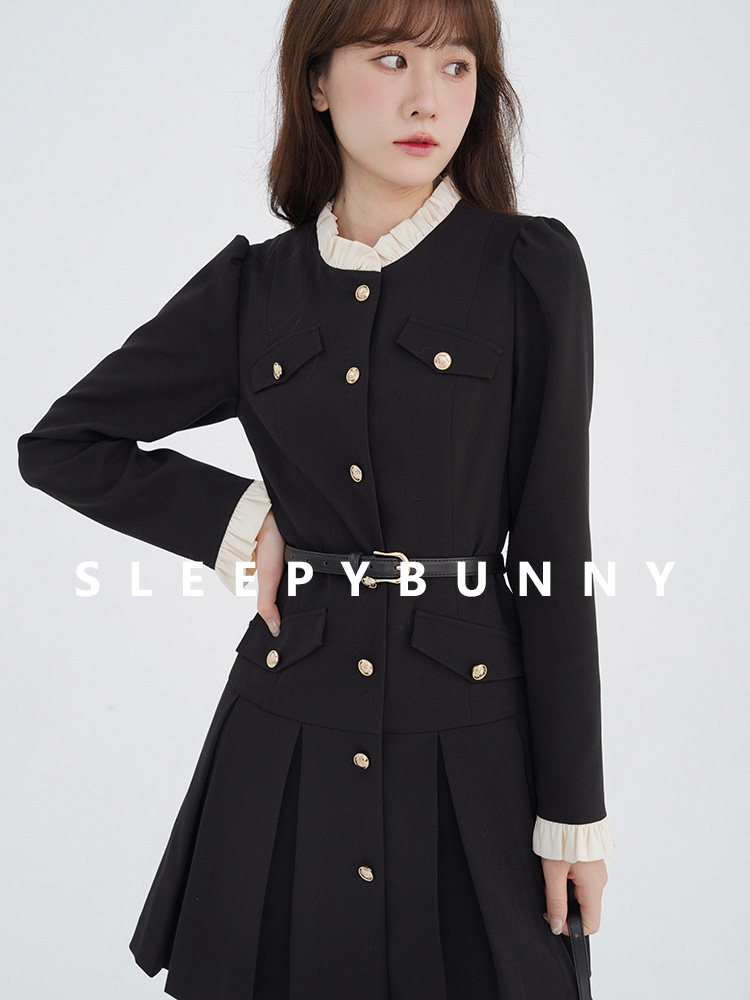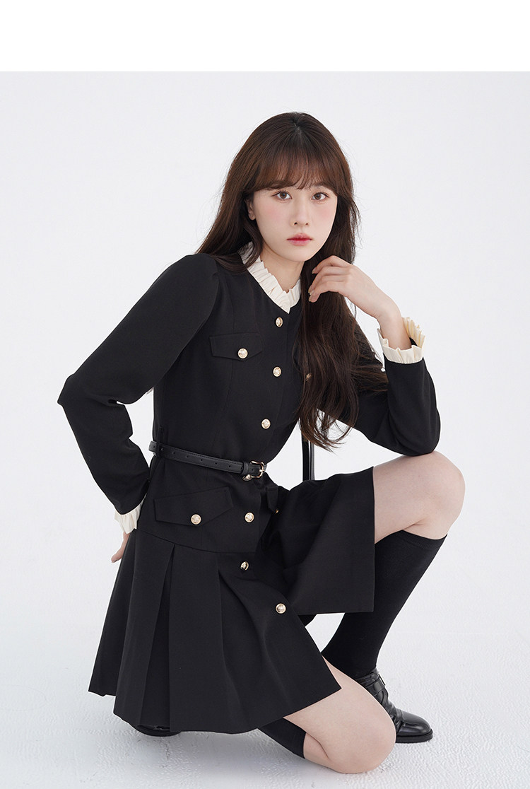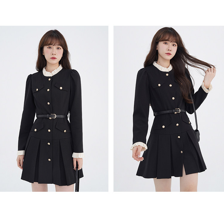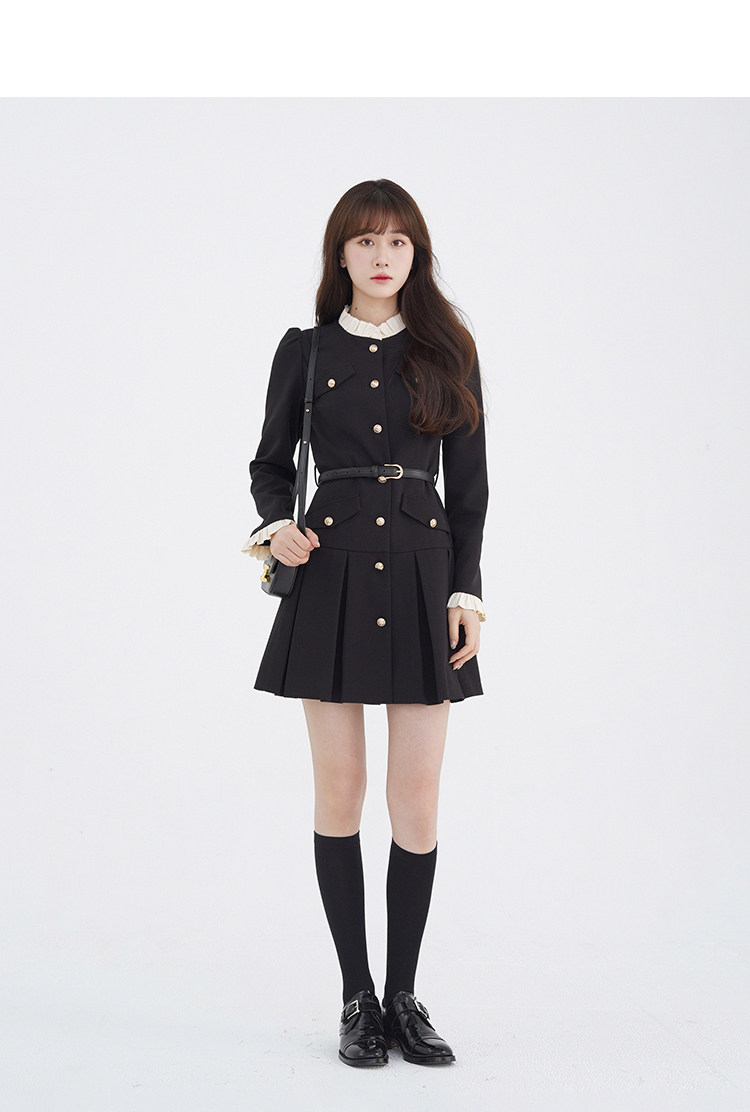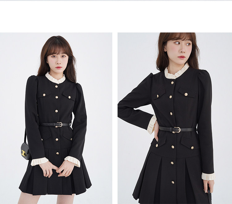 Комплект, осенний лонгслив, милое элегантное черное платье, высокая талия, А-силуэт
