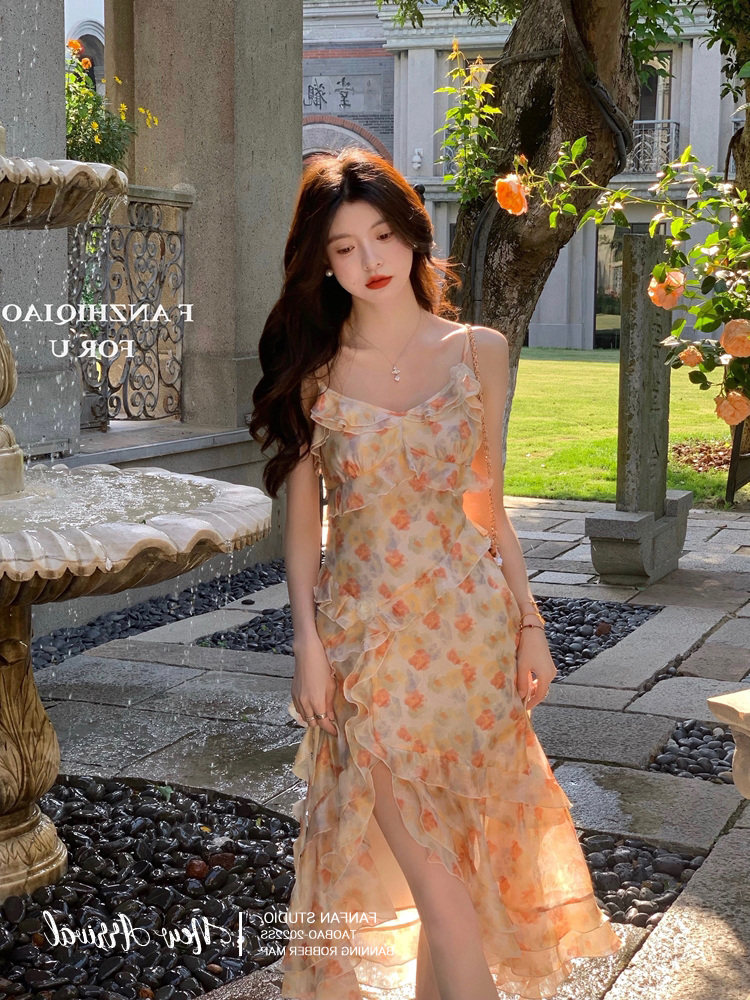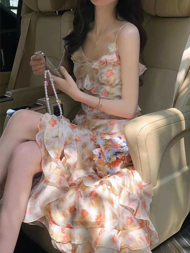 Шифоновое летнее милое пляжное платье, французский стиль, эффект подтяжки, изысканный стиль
