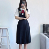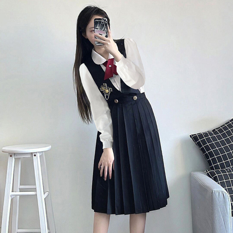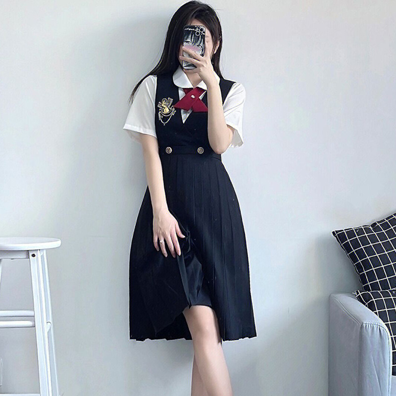 Платье, студенческая юбка в складку, комплект для школьников и студентов, японские подтяжки, летняя длинная юбка, 3 предмета
