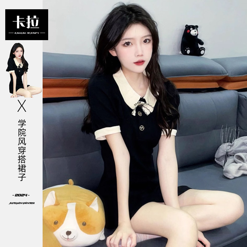 2025 новое высококачественное маленькое темпераментное маленькое ароматное черное платье с воротником поло в студенческом стиле для детей, летнее