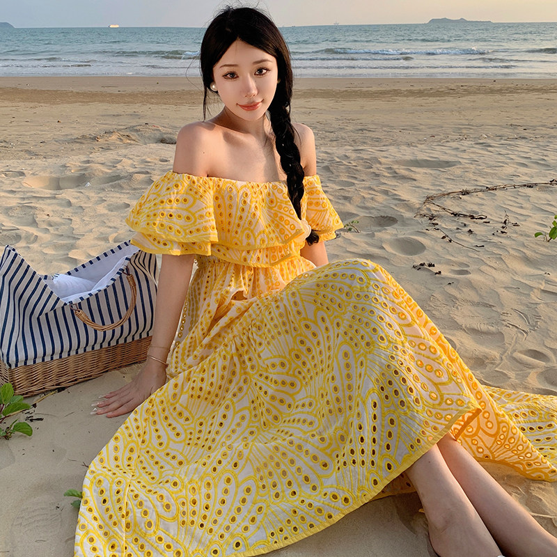 Топ без лямок, платье, длинная юбка, французский стиль, с вышивкой