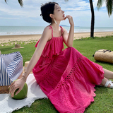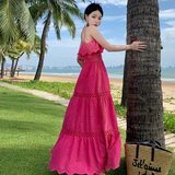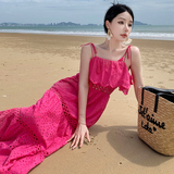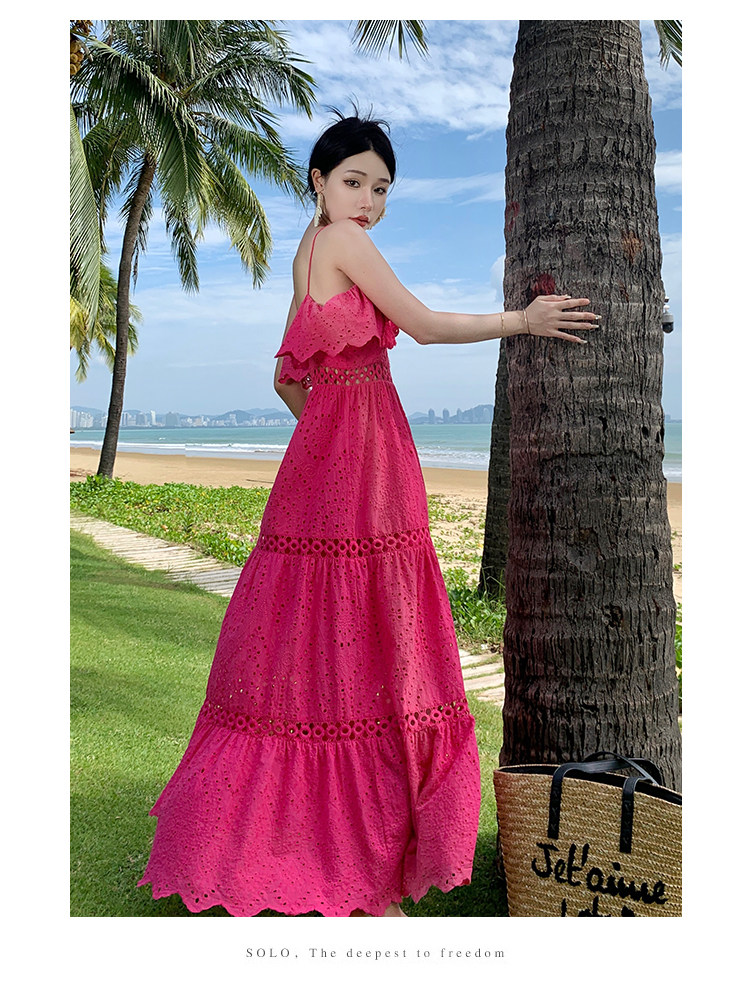 Кружевная длинная юбка, платье, французский стиль, с вышивкой, высокая талия, с открытой спиной