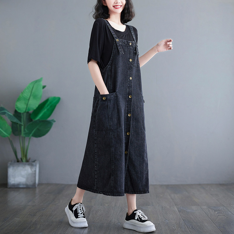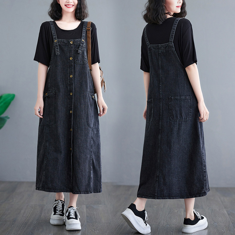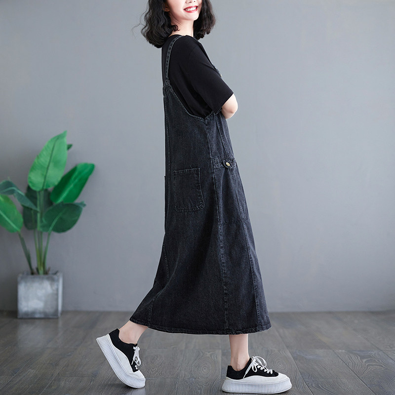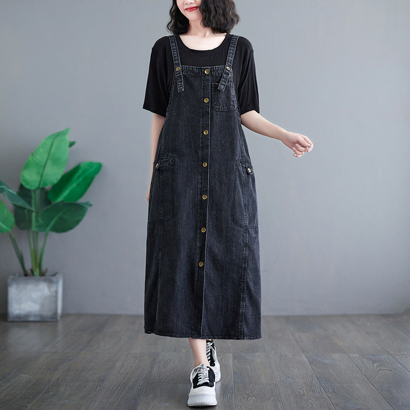 Осенняя ретро длинная юбка, джинсовое платье, свободный крой, средней длины