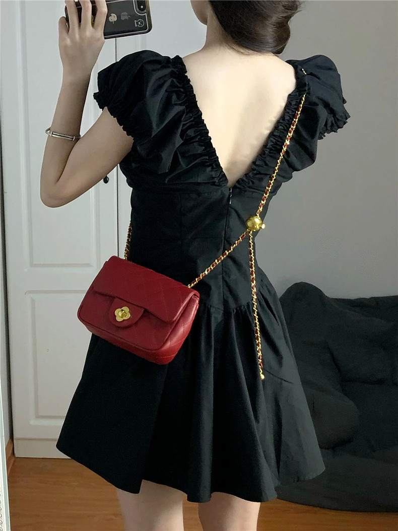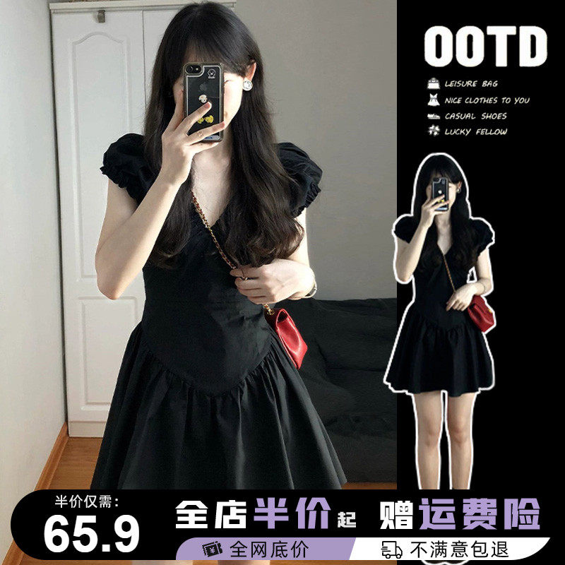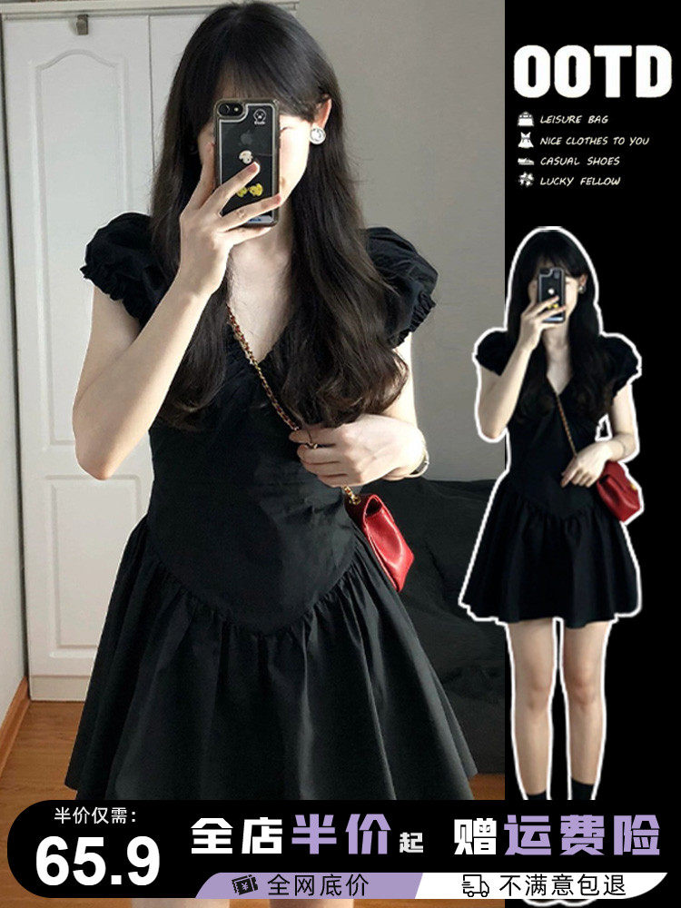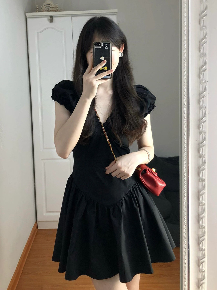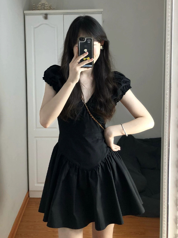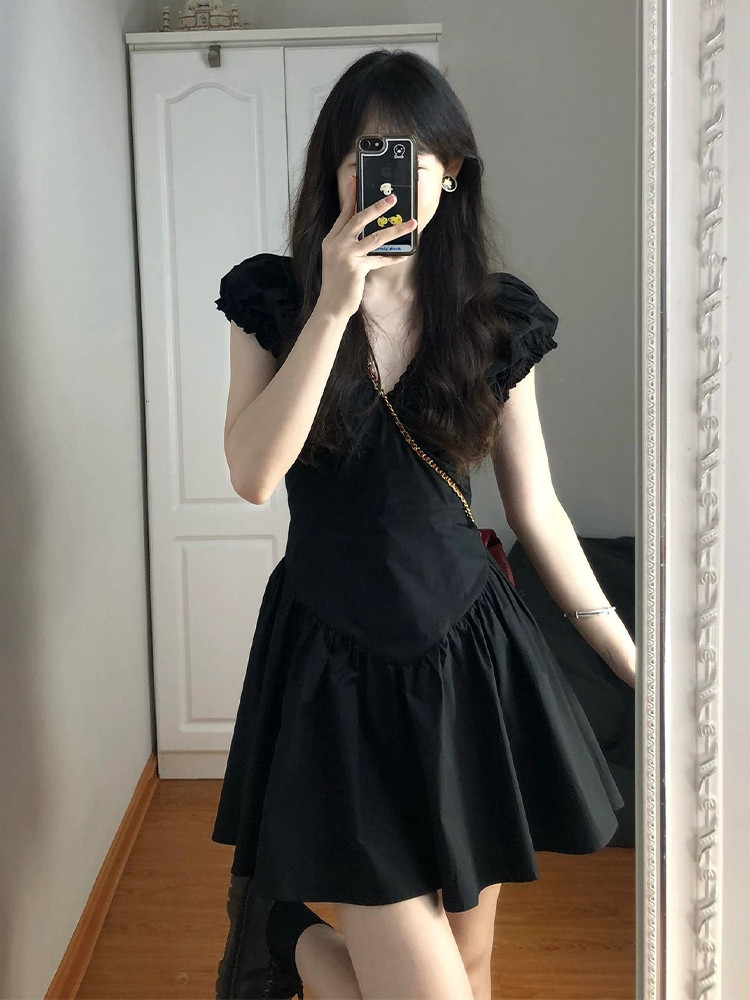 Летняя юбка, приталенное черное молодежное платье, корсет, французский стиль, V-образный вырез, юбка-пачка