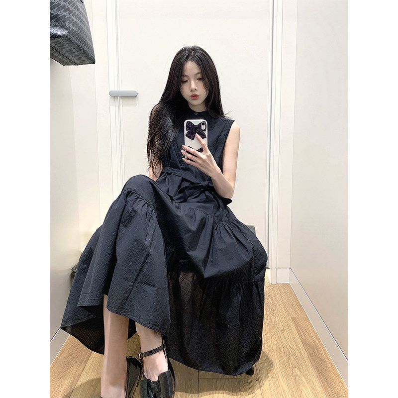 Tide, дизайнерское черное летнее платье без рукавов без рукавов, летняя приталенная юбка, тренд сезона, городской стиль