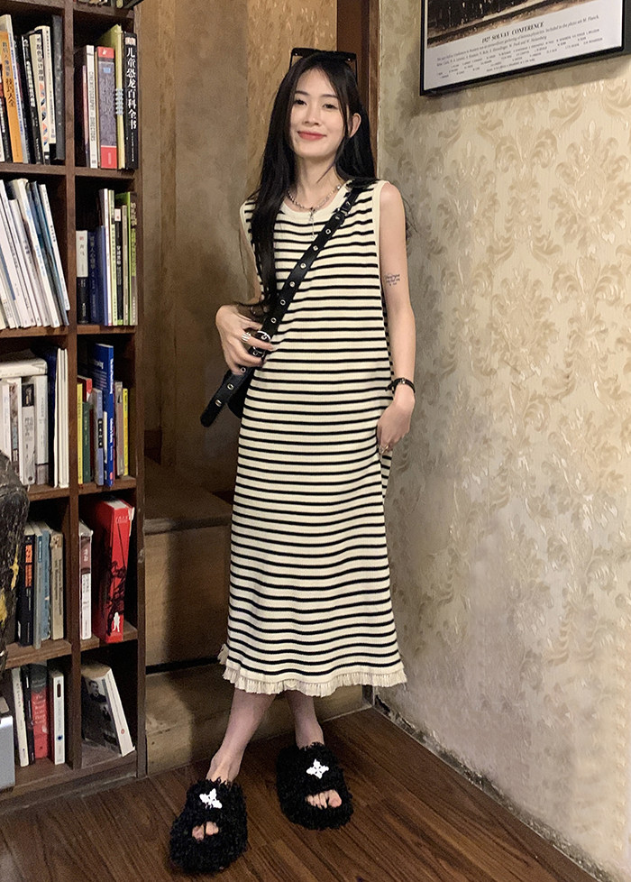Базовый трикотажный жилет без рукавов, платье без рукавов, длинная юбка, большой размер, осенний, свободный крой