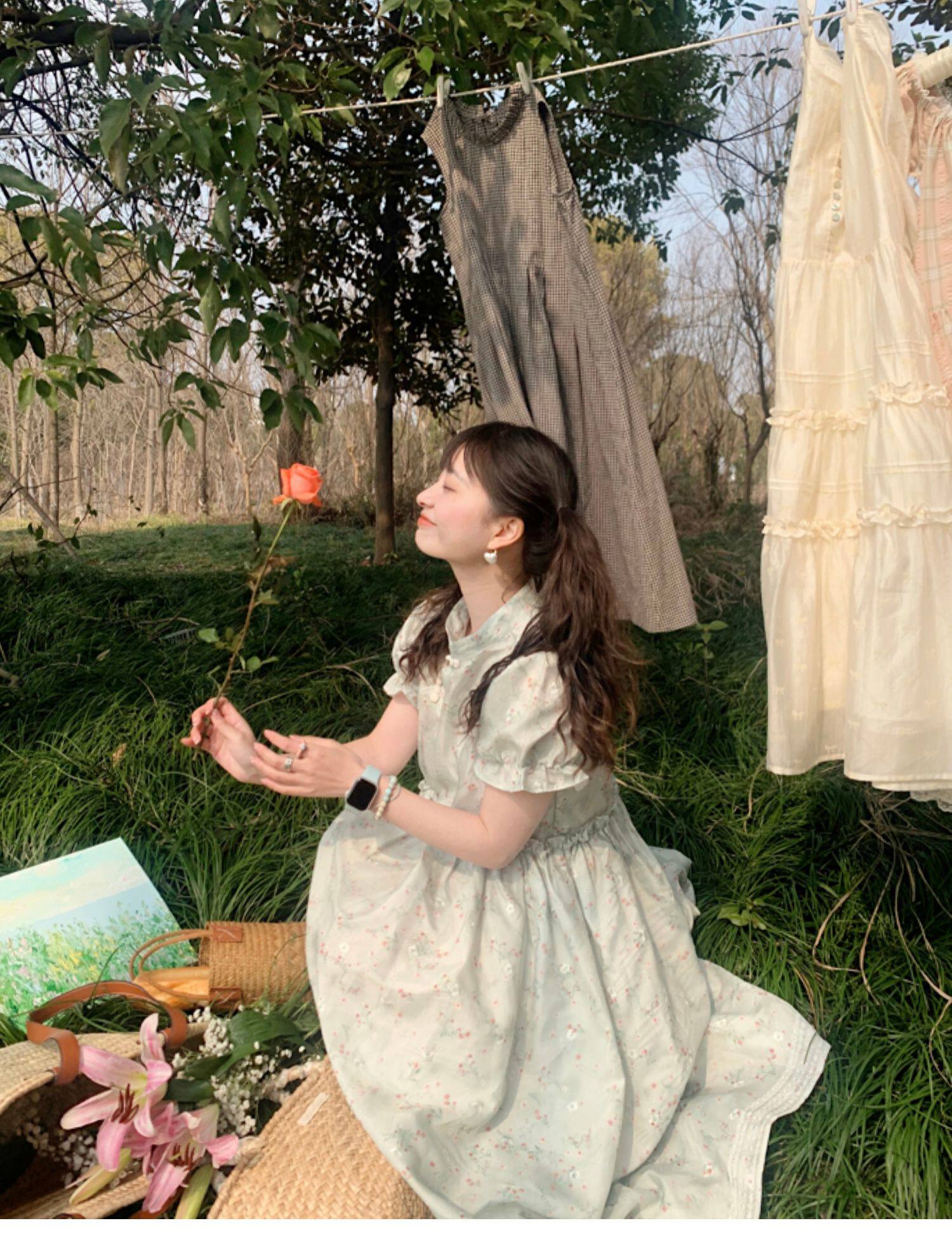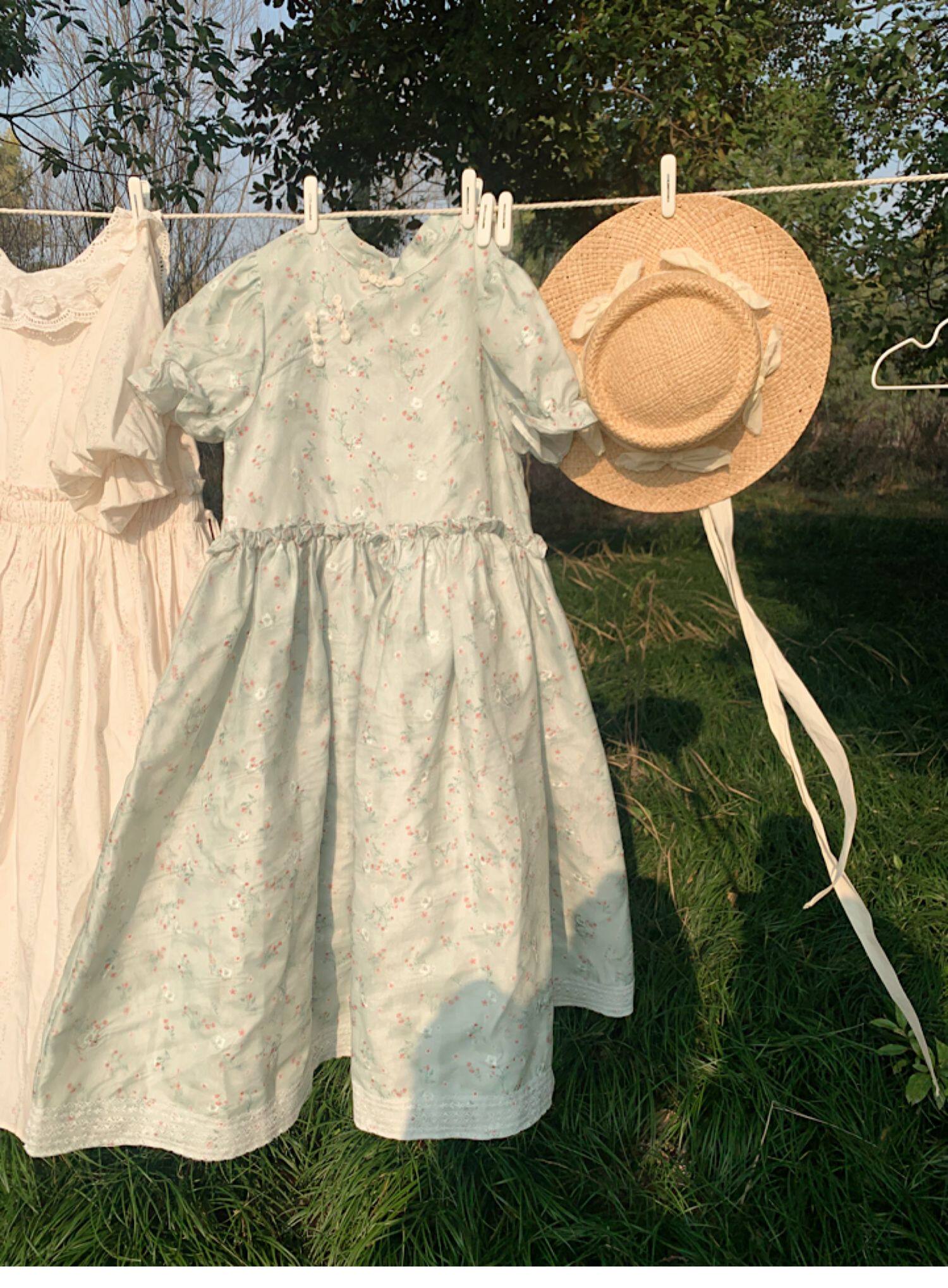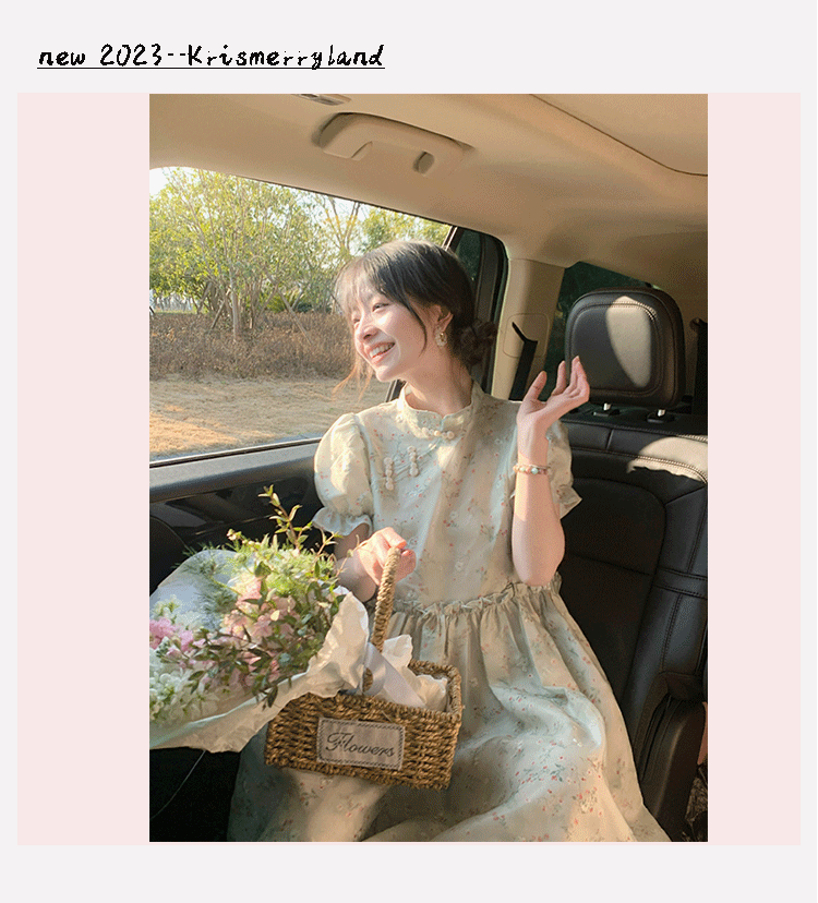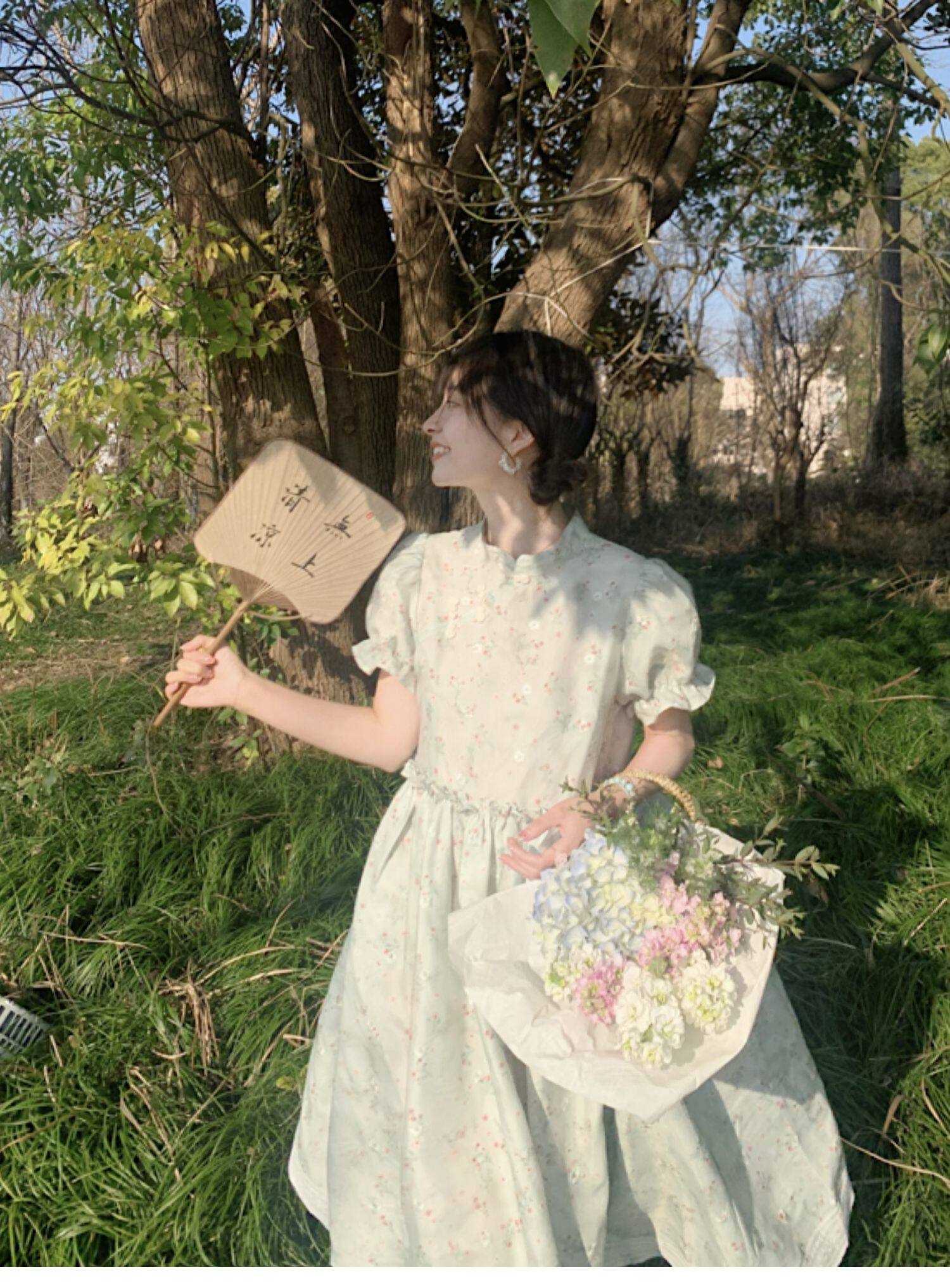Летнее ципао, платье, цветочный принт, китайский стиль