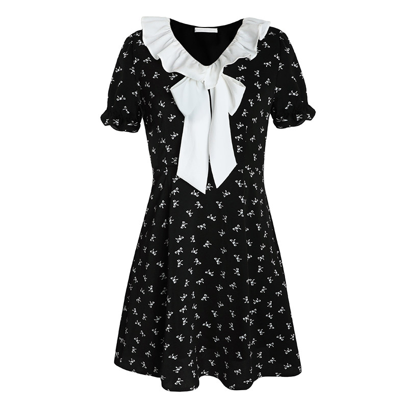 Короткое платье, французский стиль, изысканный стиль, подходит для подростков, короткий рукав, в цветочек