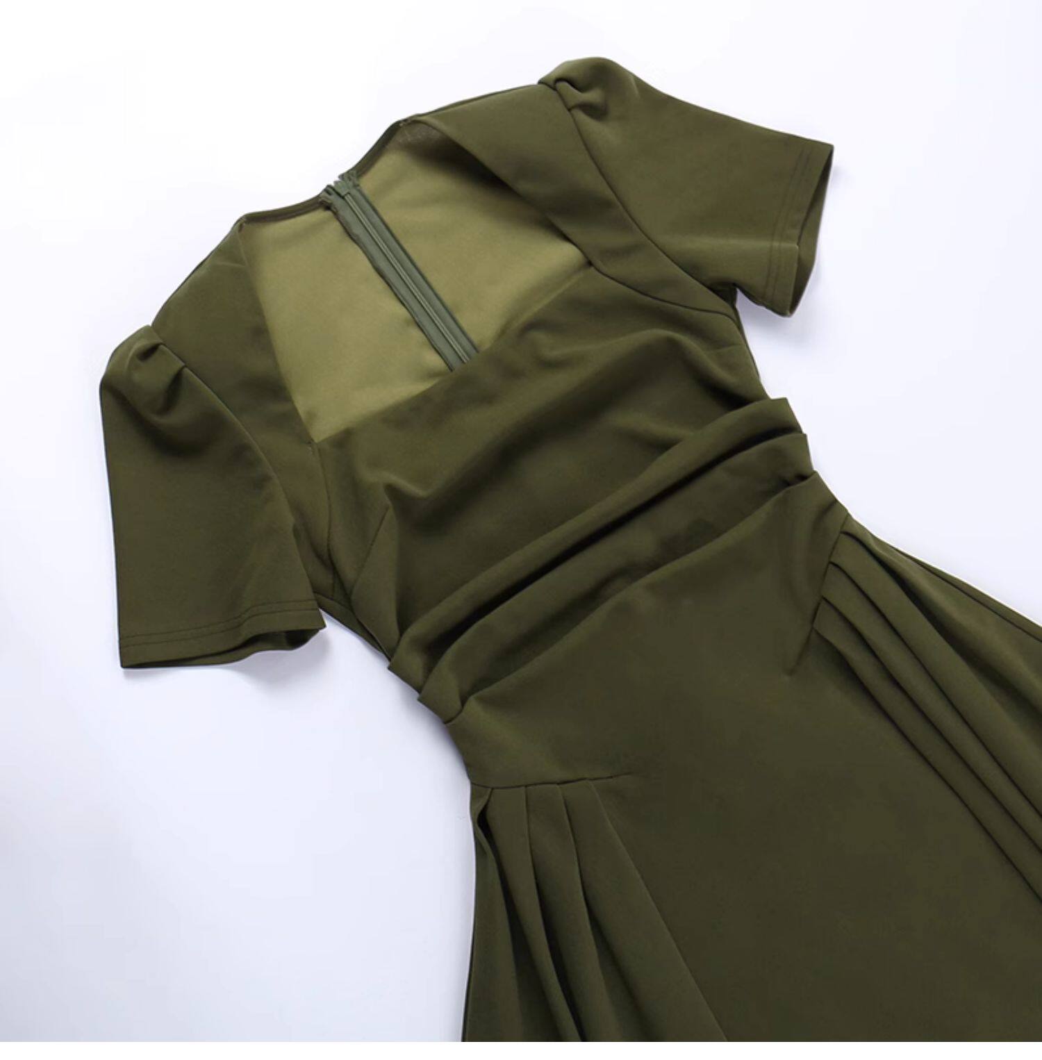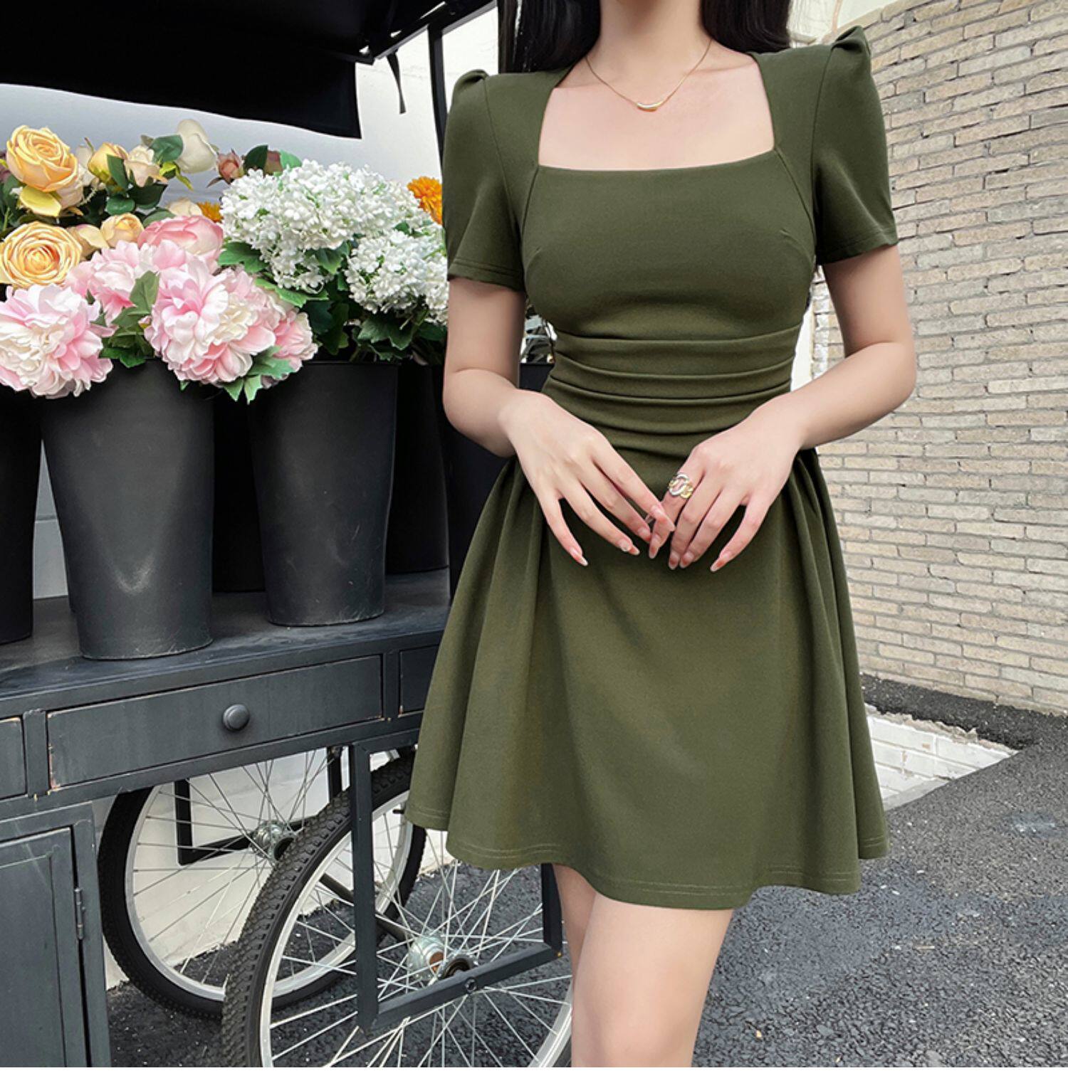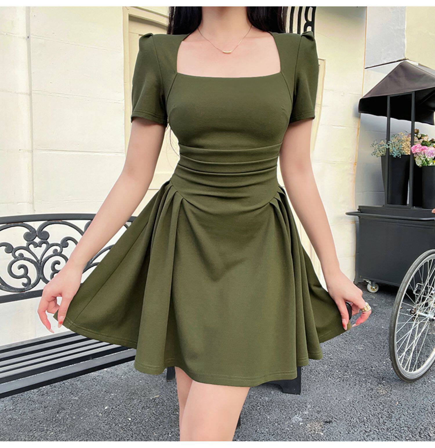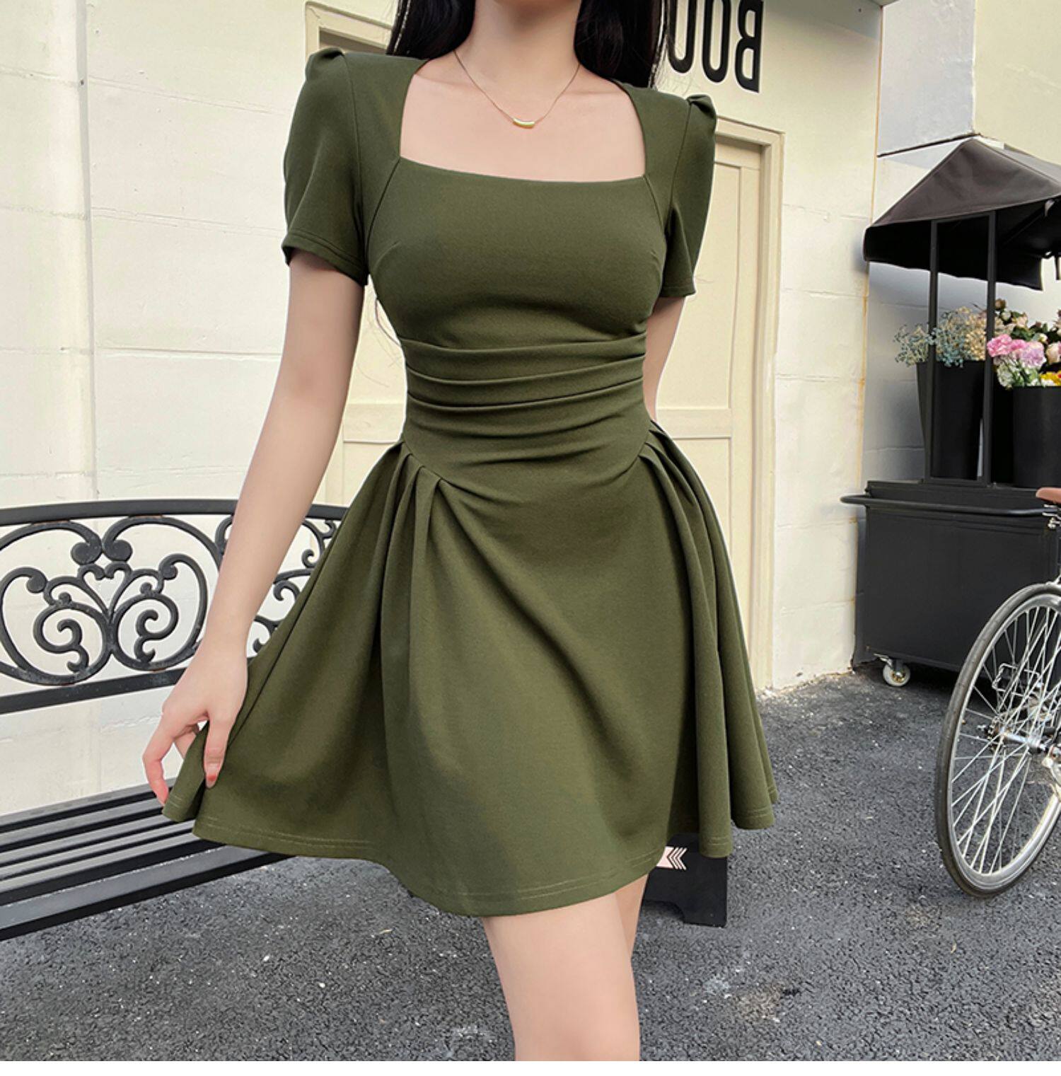Ретро платье, приталенный корсет, юбка, французский стиль, квадратный вырез, короткий рукав, облегающий крой