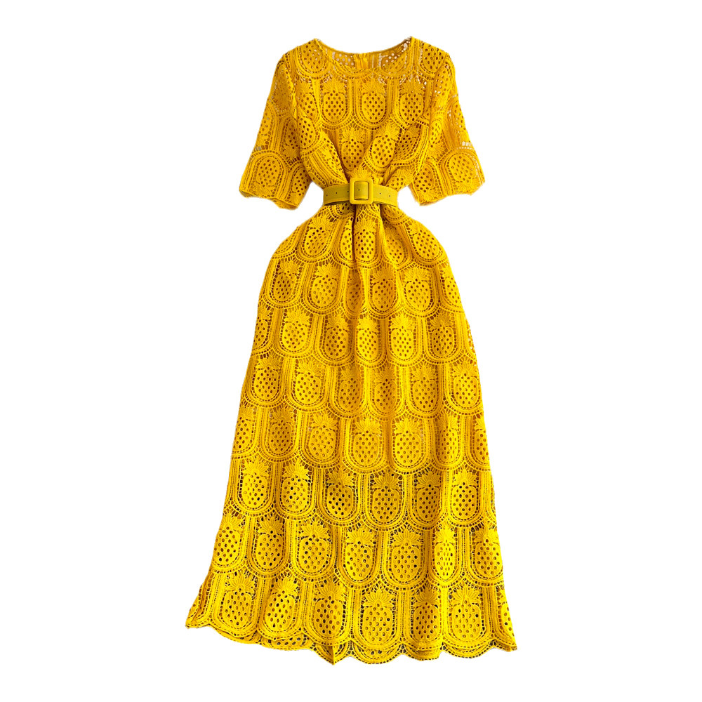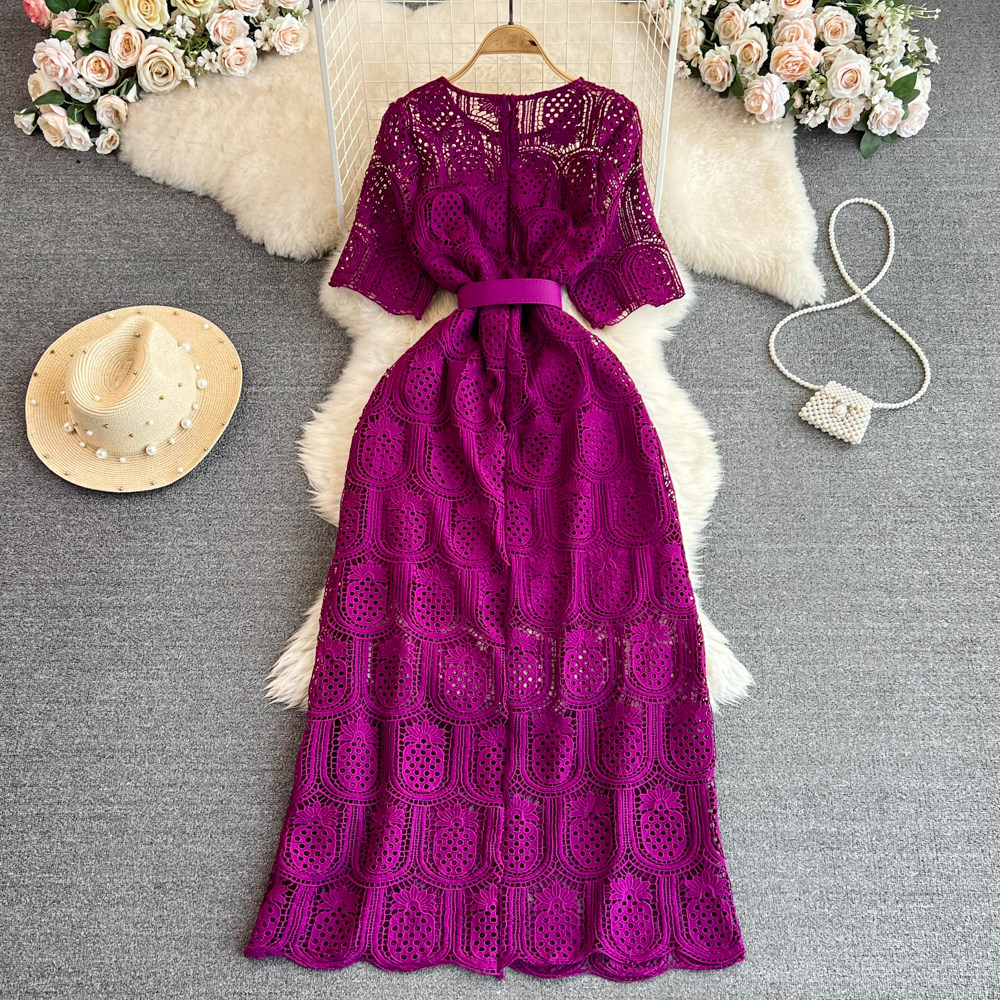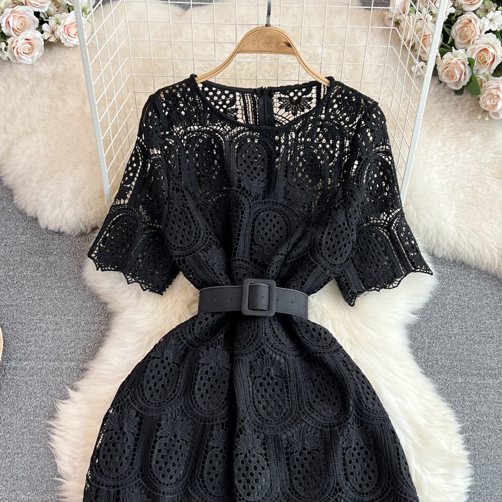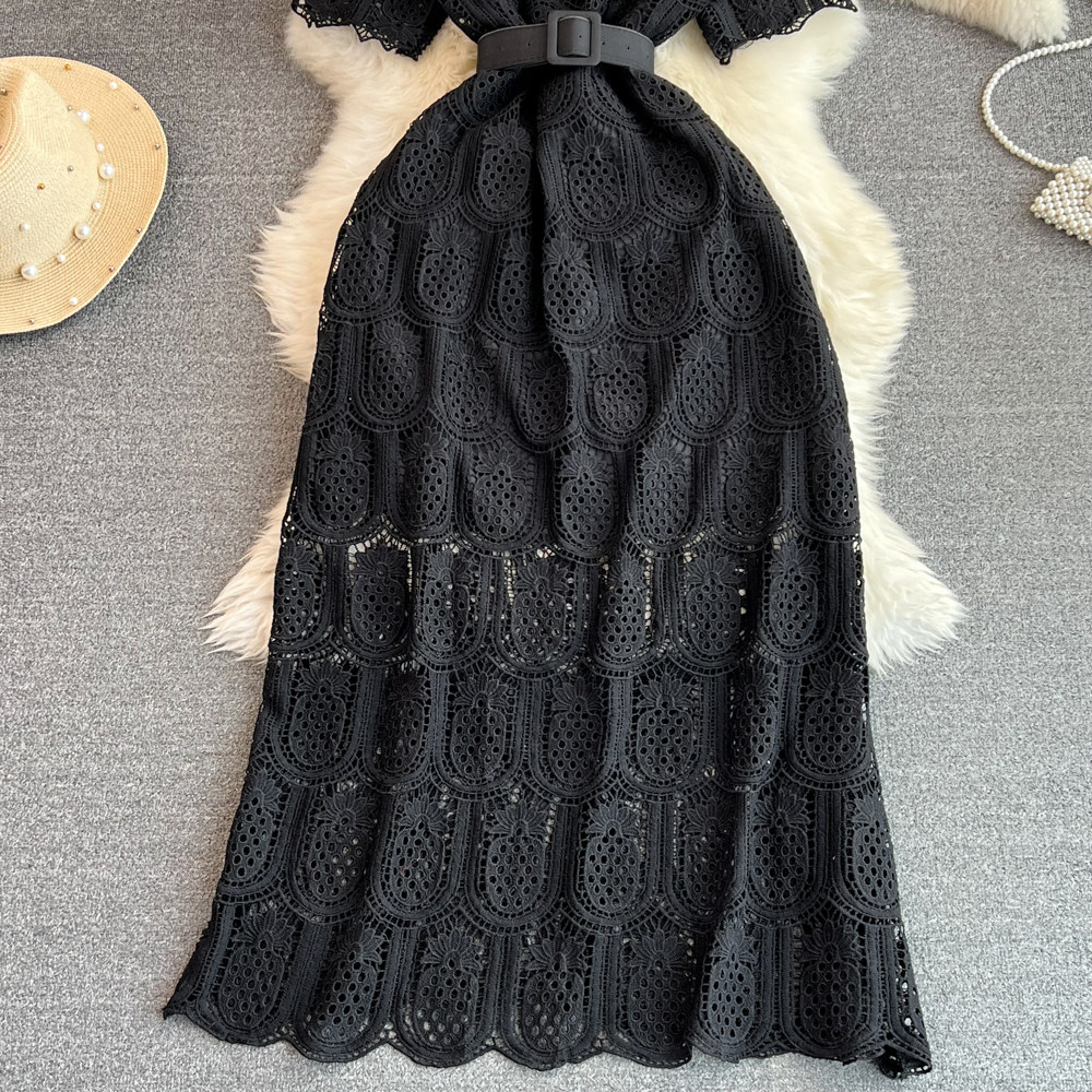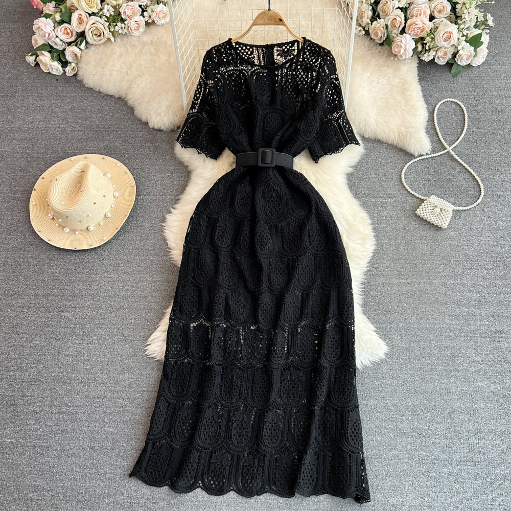 Летний ретро приталенный корсет с круглым воротником, кружевное элегантное платье, длинная юбка, изысканный стиль, короткий рукав