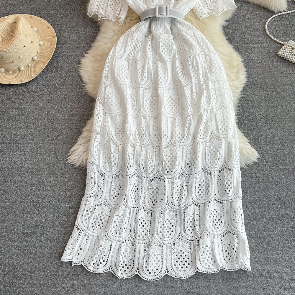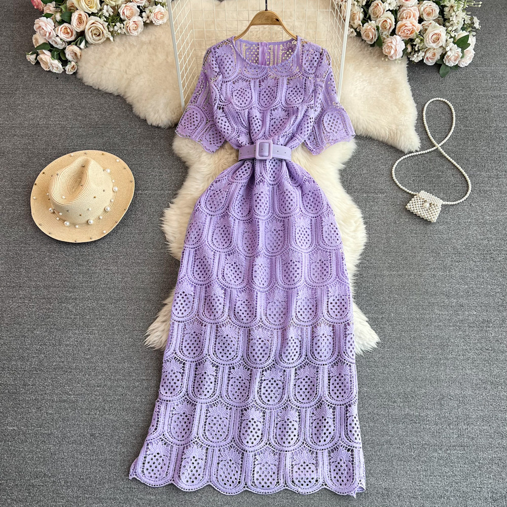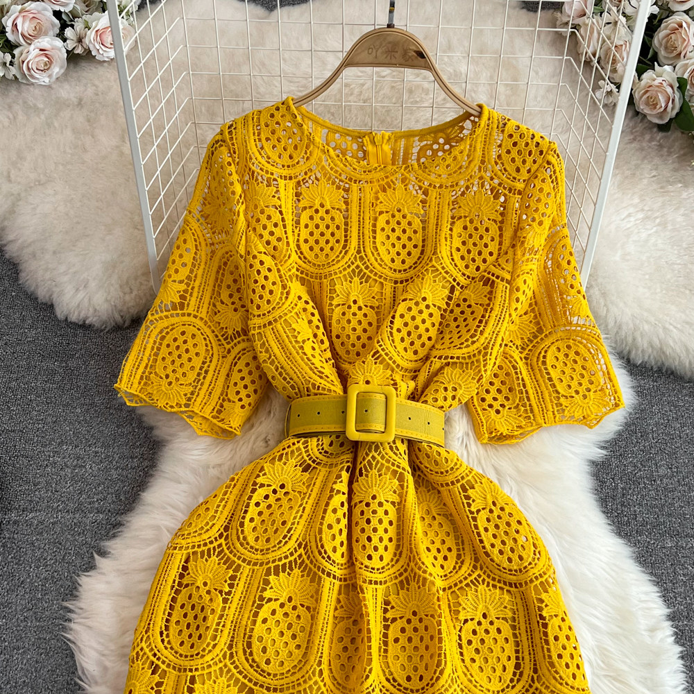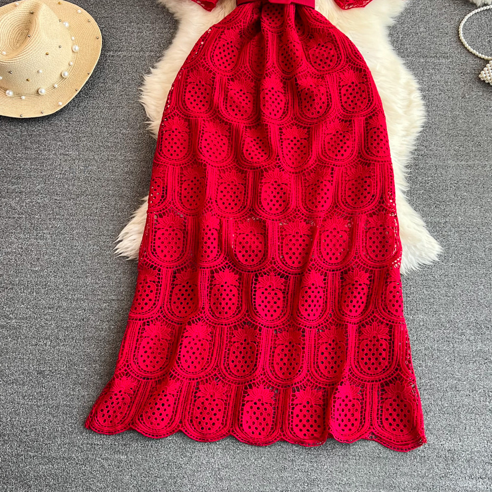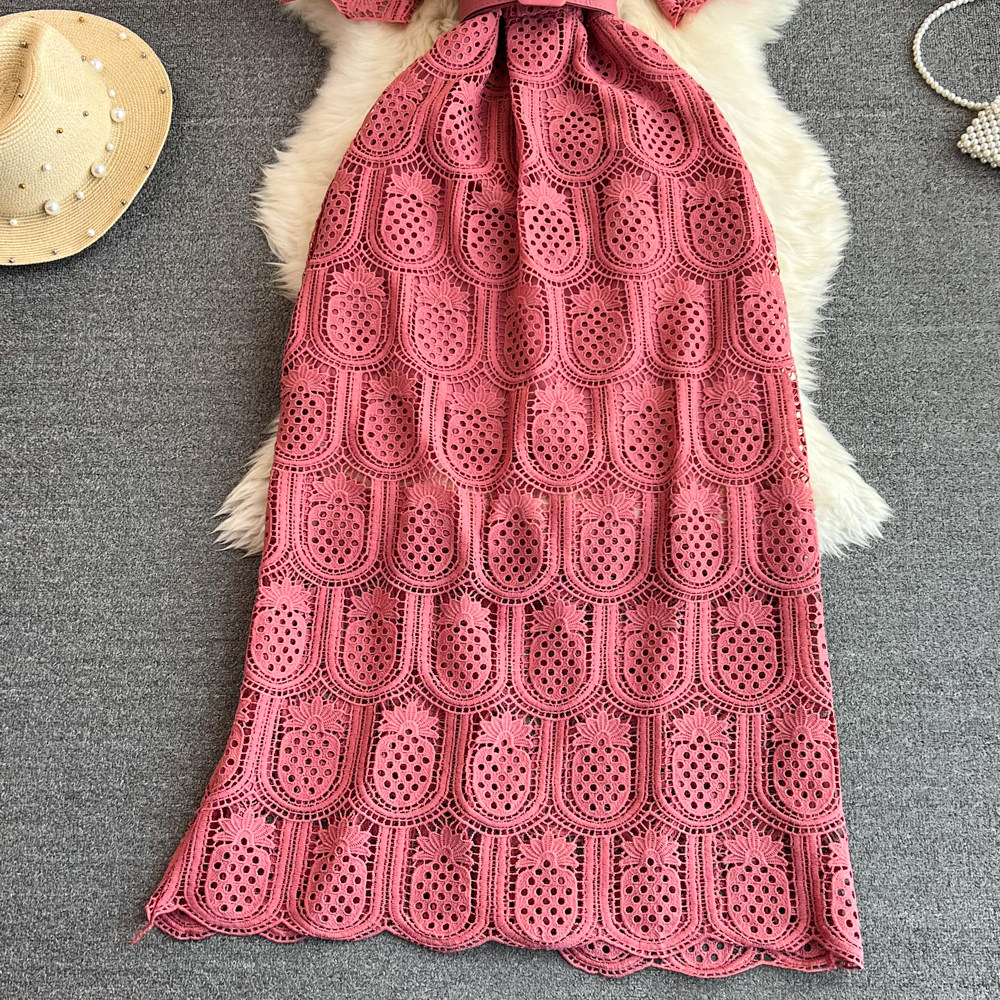 Летний ретро приталенный корсет с круглым воротником, кружевное элегантное платье, длинная юбка, изысканный стиль, короткий рукав